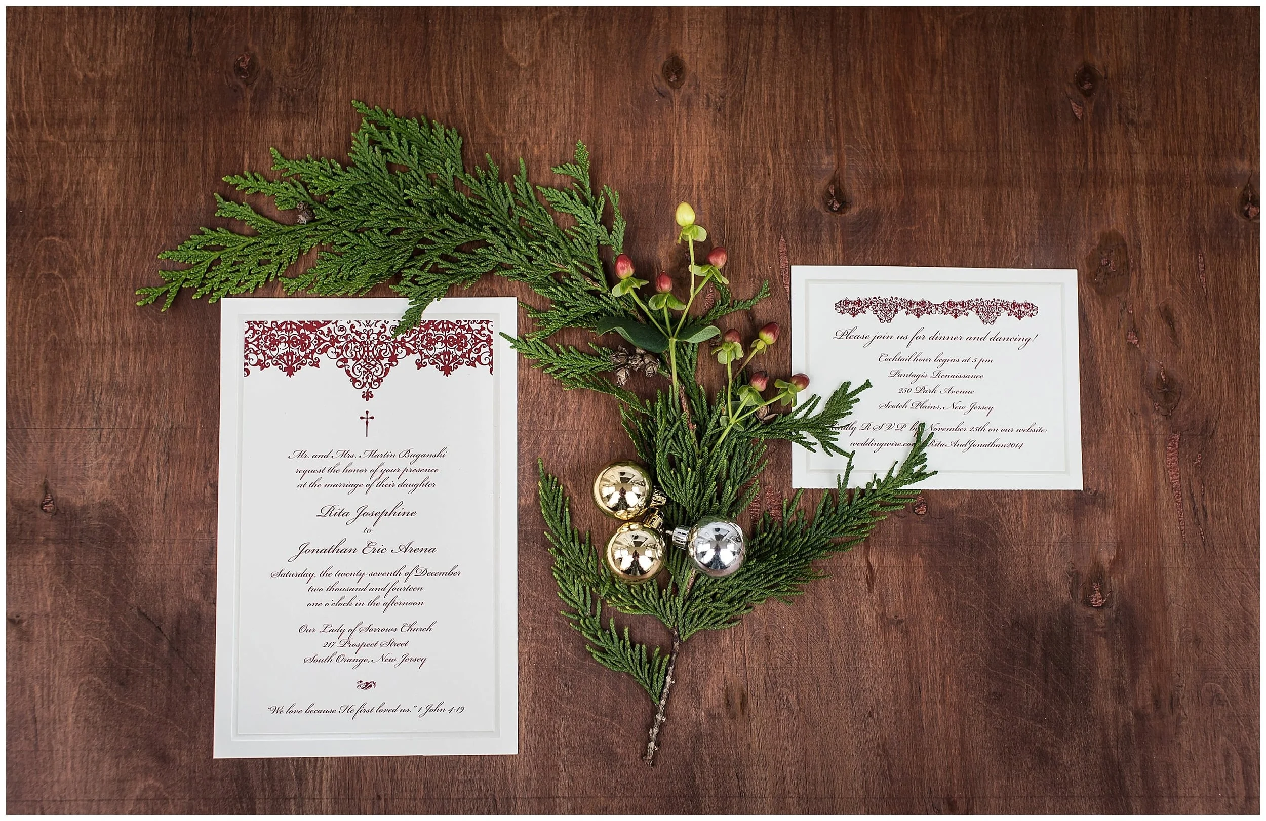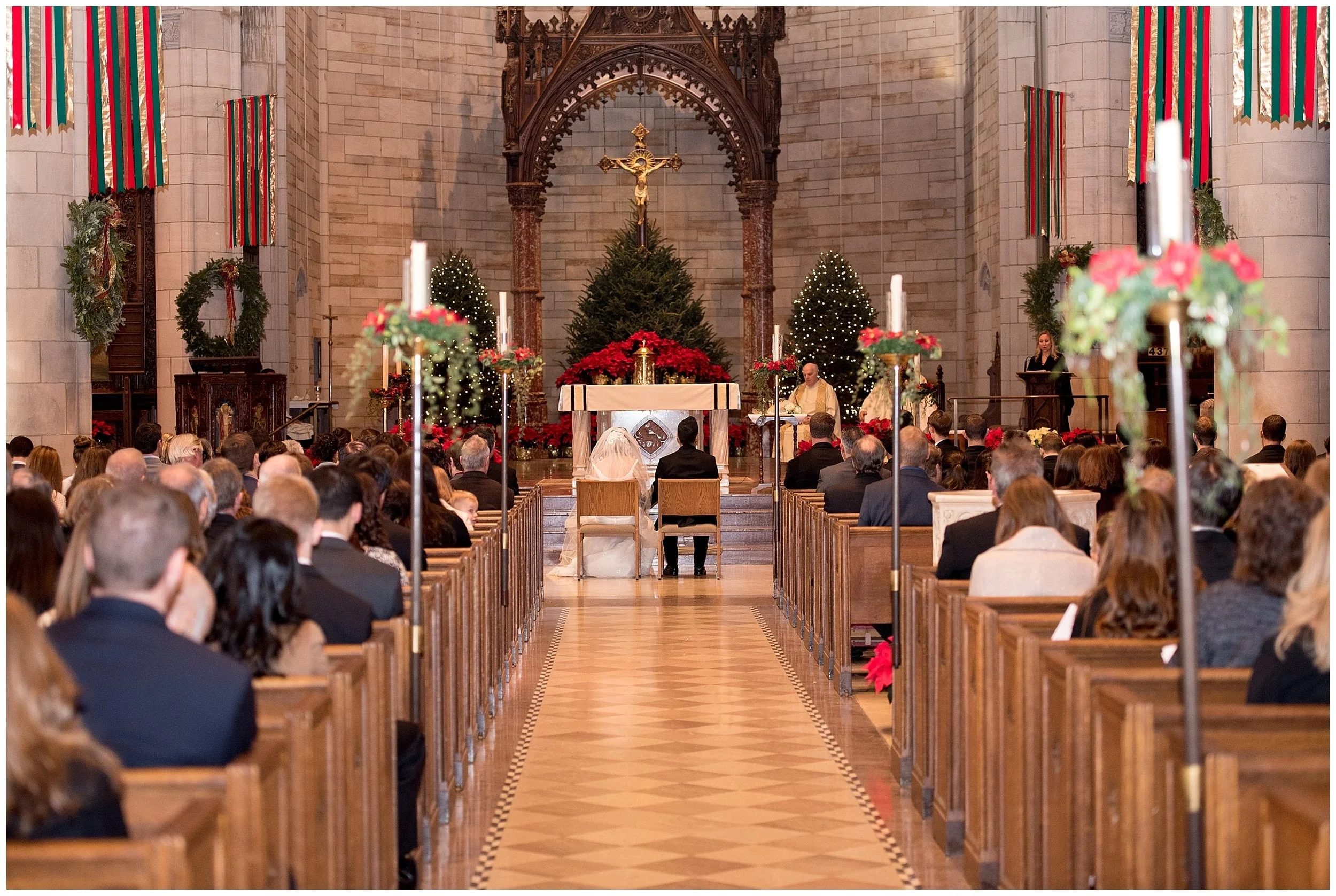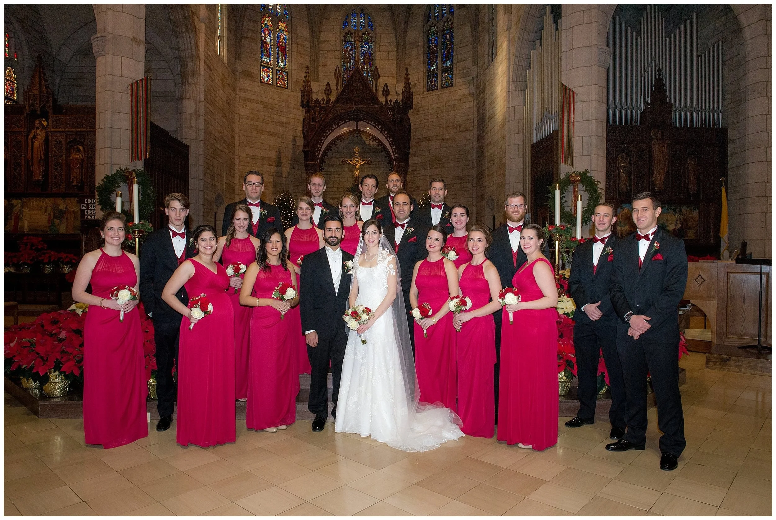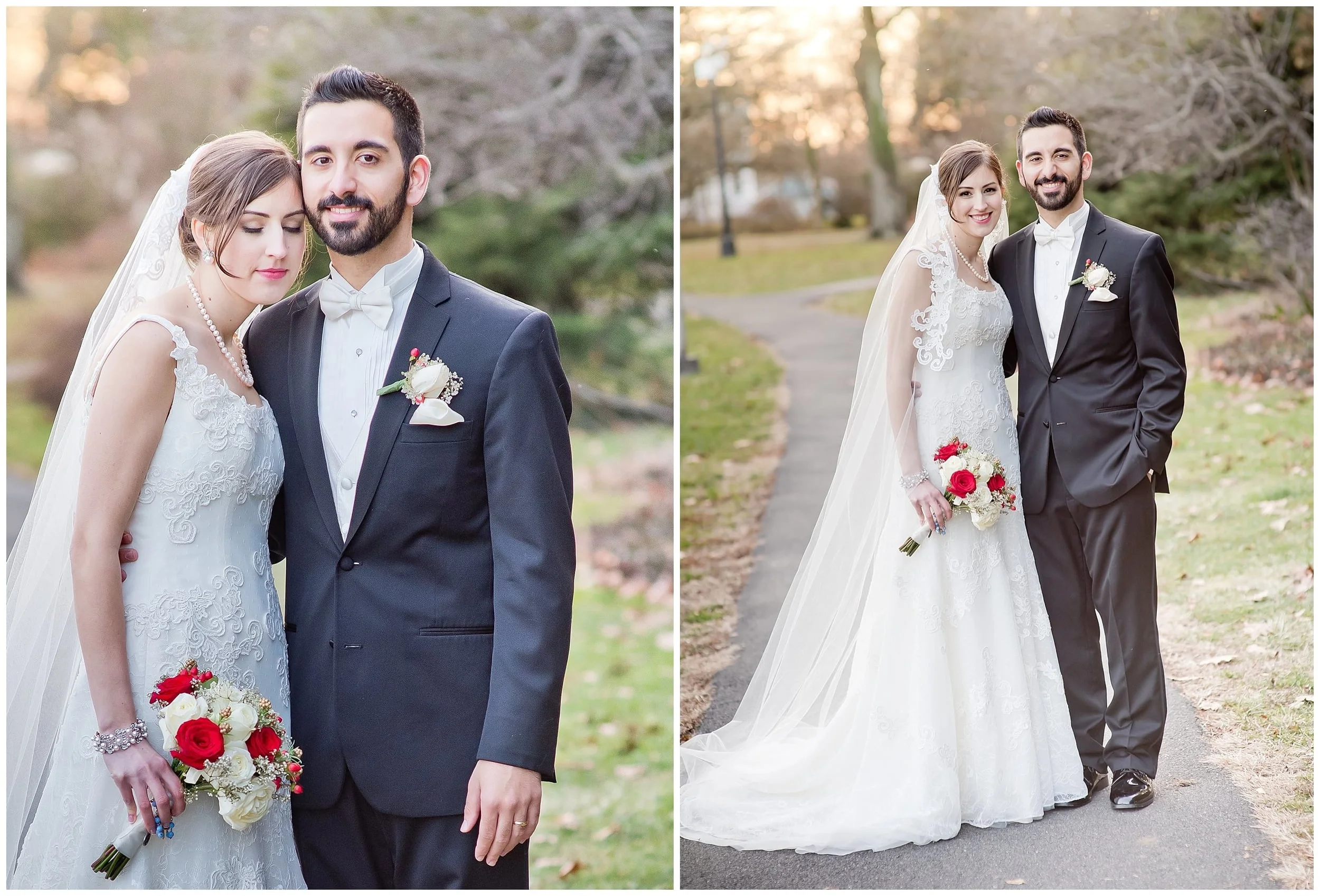 Their beautiful marriage took place at Our Lady of Sorrows Catholic Church. It was a beautiful mass matched by the most amazing church I had ever been in adorned for christmas with the most beautiful scenery done in reds and greens. From there we were able to do all of our photo sessions outdoors at a park in South Orange, New Jersey. It was a balmy 55 degrees last December 27th for their wedding day. It was truly glorious.