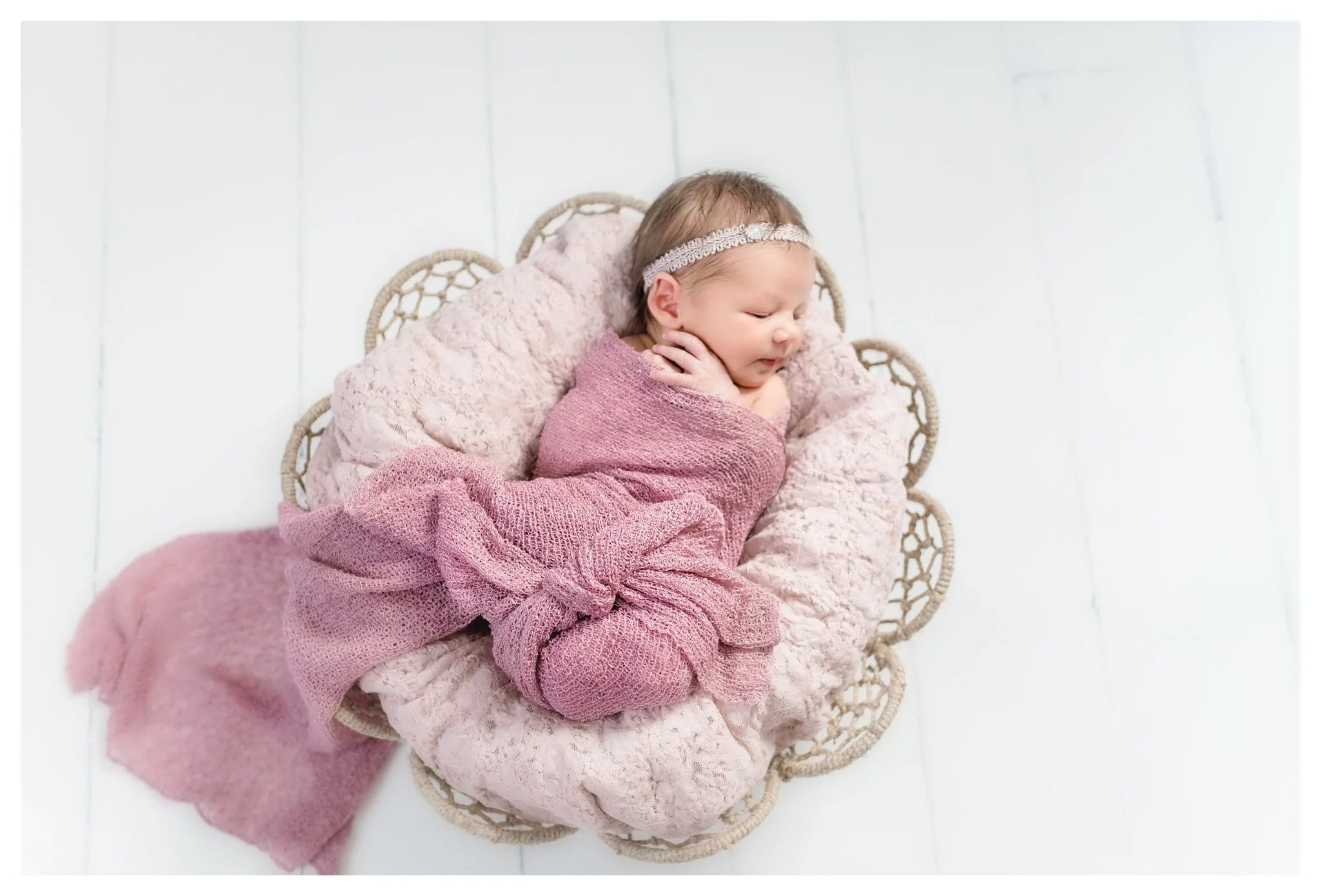 Well this little beauty was all of seven days old when she arrived with her mom and dad in the studio. I have had the pleasure of knowing Ashley and Chris for many years and it was so wonderful to capture these precious moments for them of their beautiful family. Hannah was around seven pounds and seven days old and that is really the ideal time to photograph a newborn session.