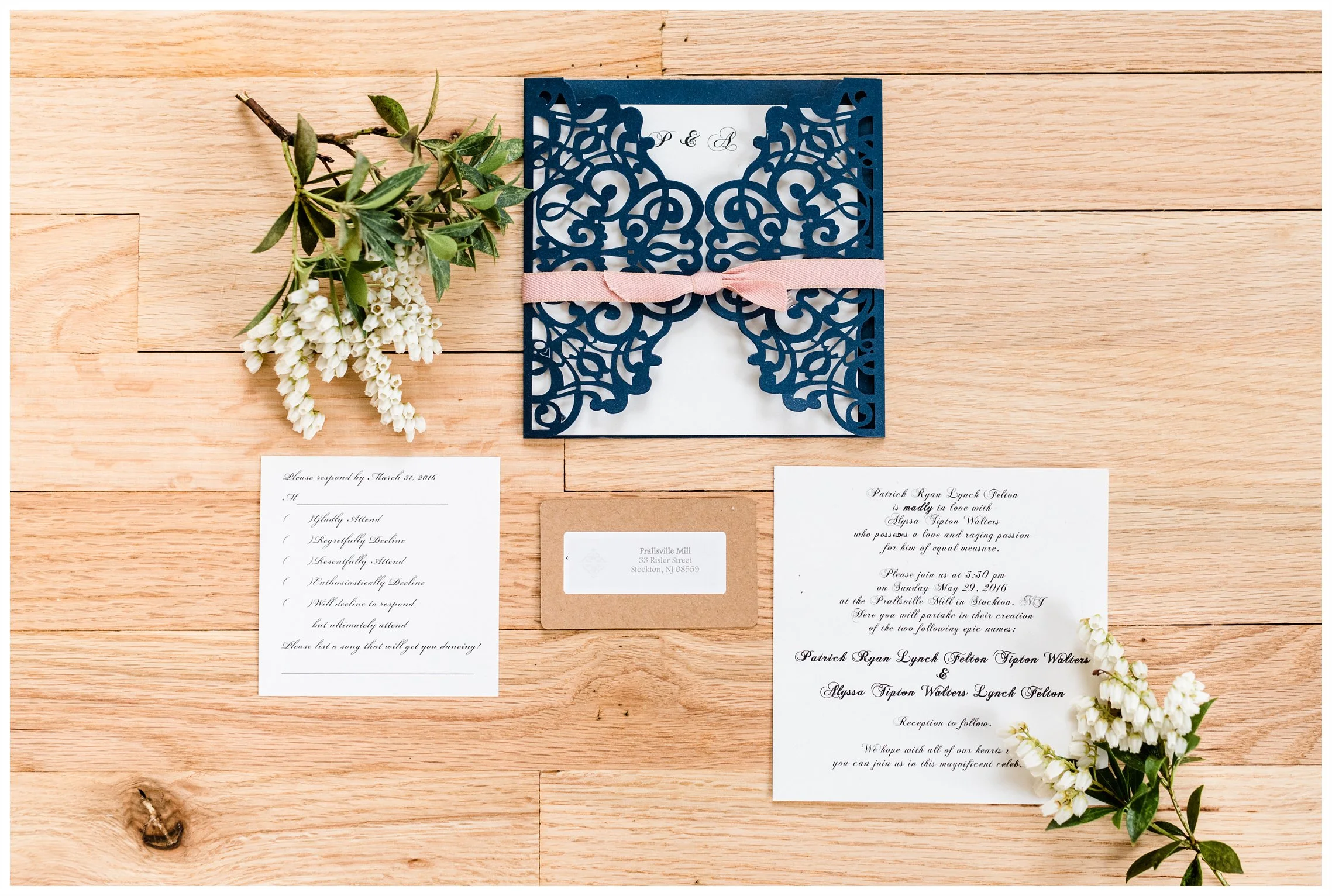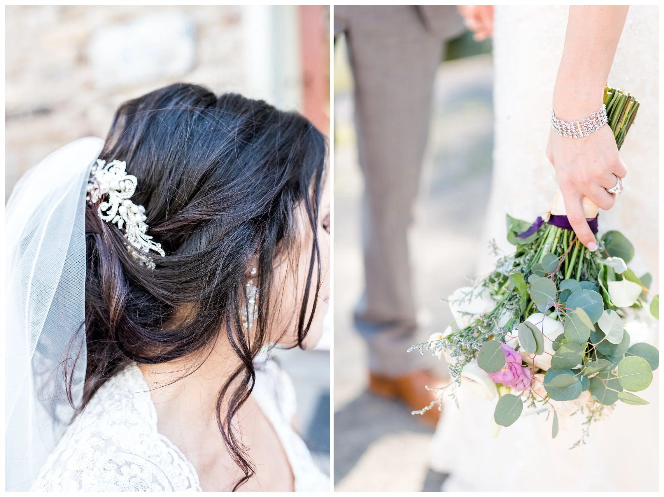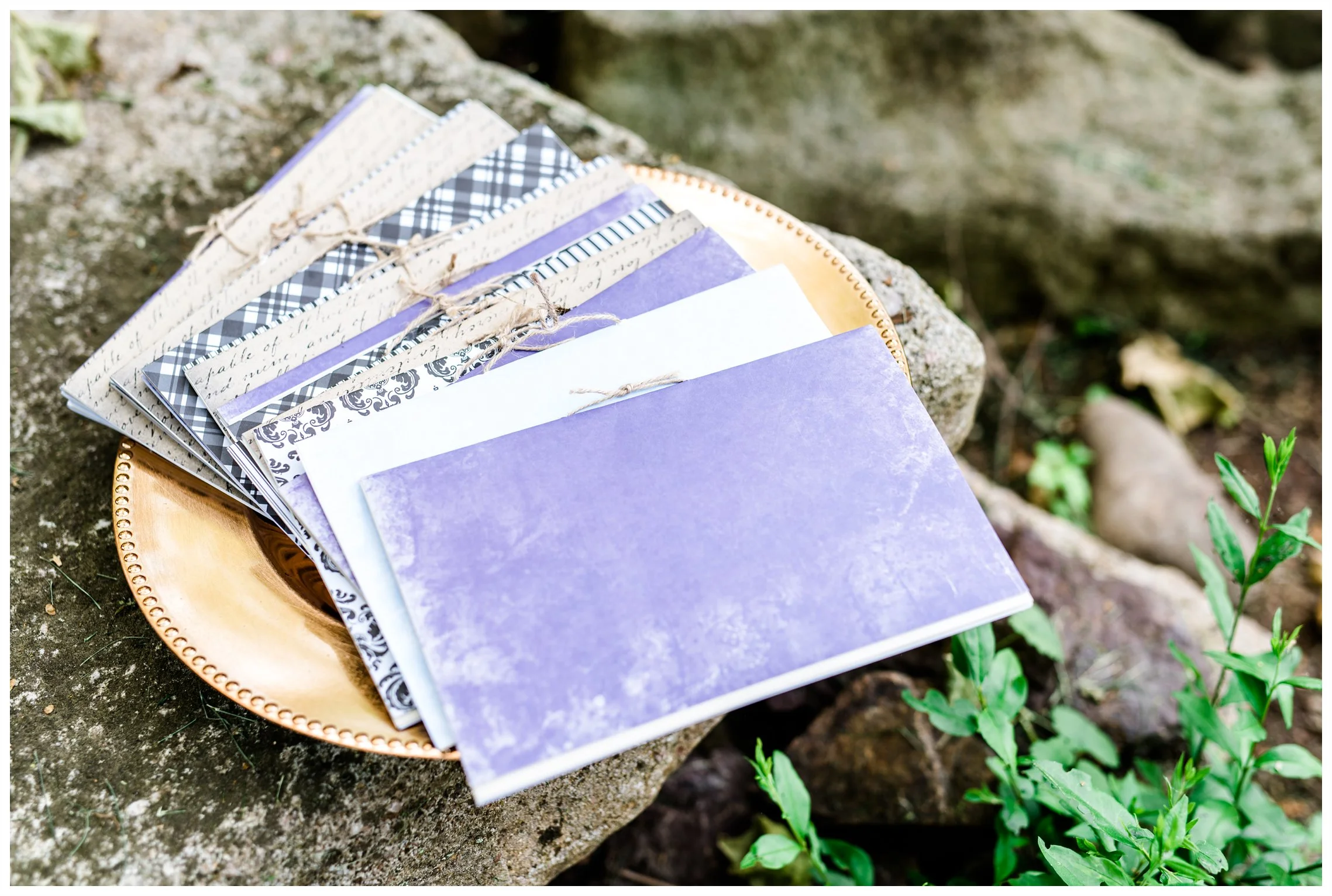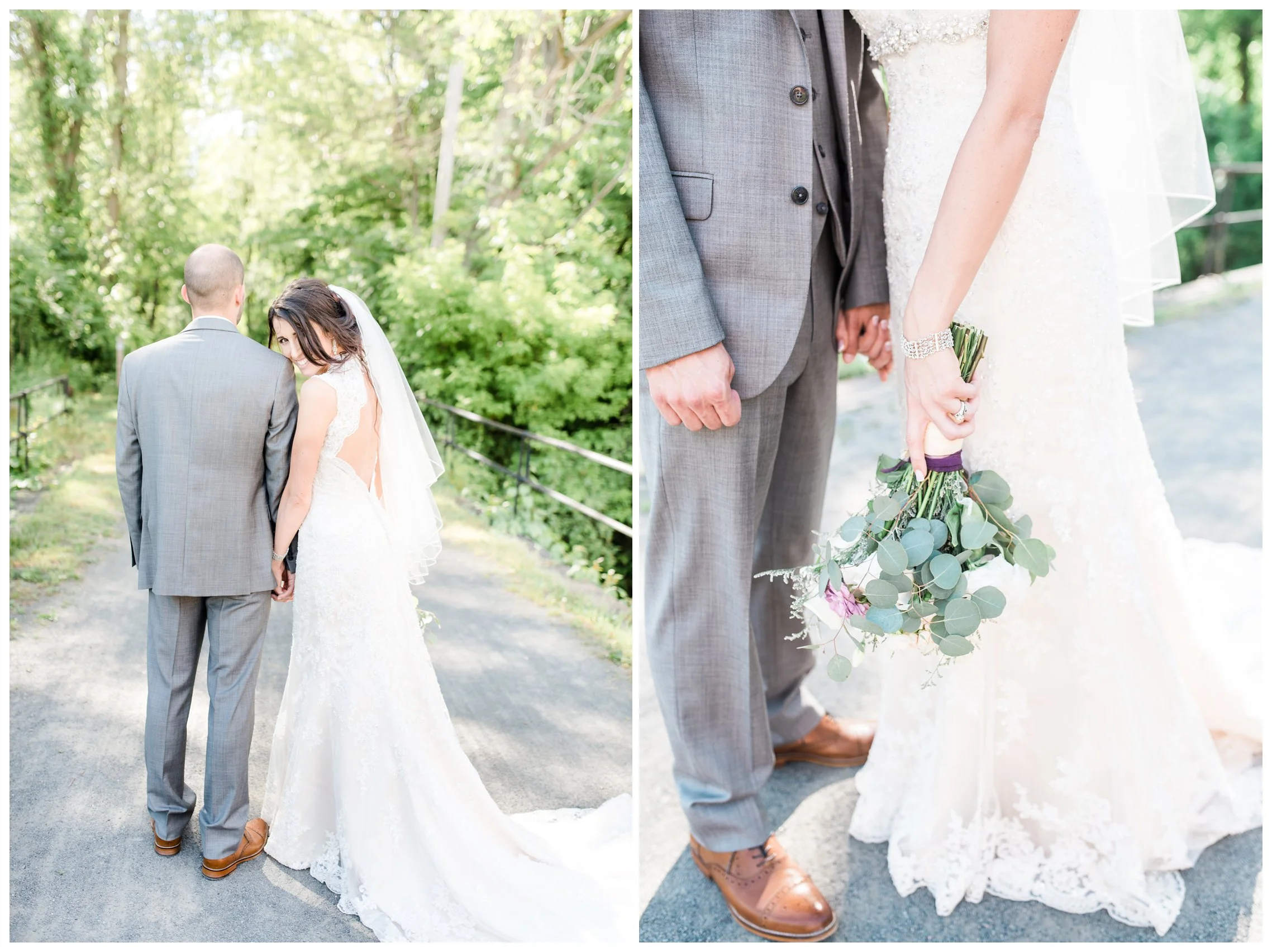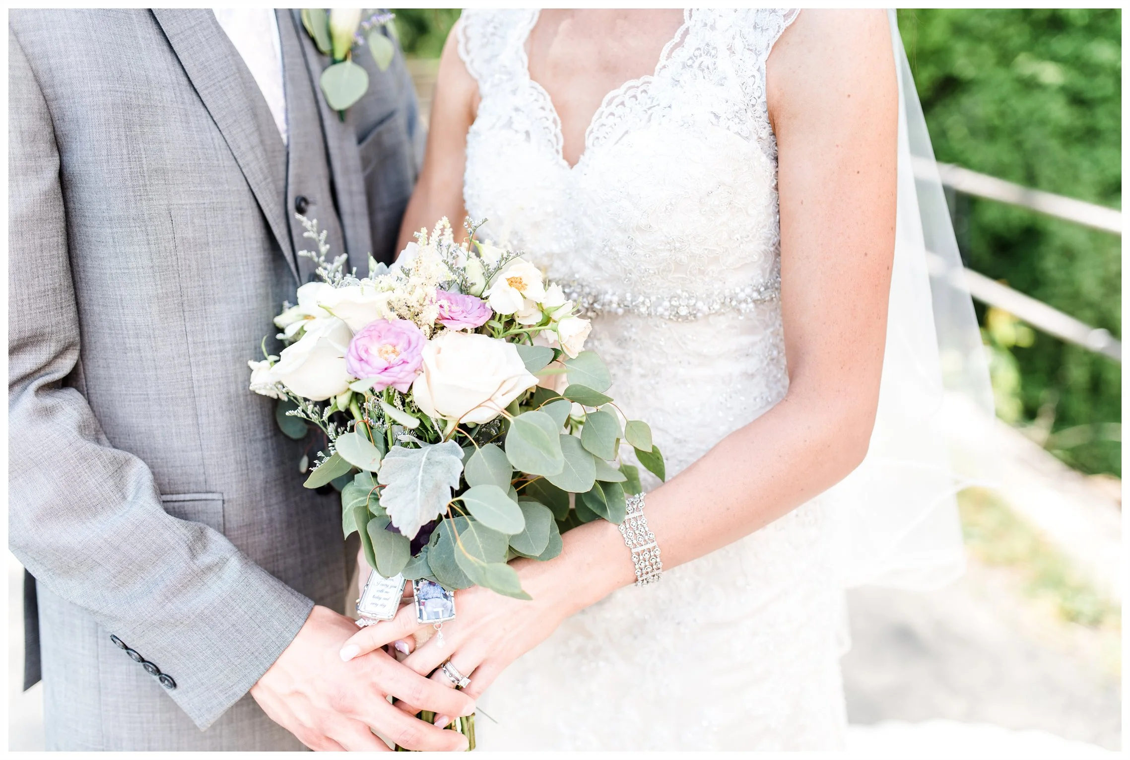 One of the first venues that they visited was the Prallesville Mill located in Stockton, New Jersey. The mill has so much history and is nestled along a beautiful river and upon seeing it, they knew it was right. So the planning commenced and they had so many talented friends and family members to really contribute to making this day so special. Alyssa’s taste was mixed with some pretty lacey things such as her beautiful wedding gown by Maggie Sottero. The florals were by far my favorite all handmade by Donna Pratt, a close family friend. The programs for the ceremony were different shades of purple, pink and black and were handmade by Alyssa.