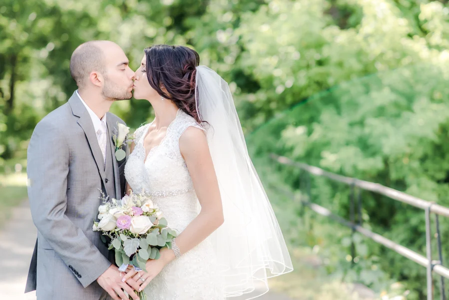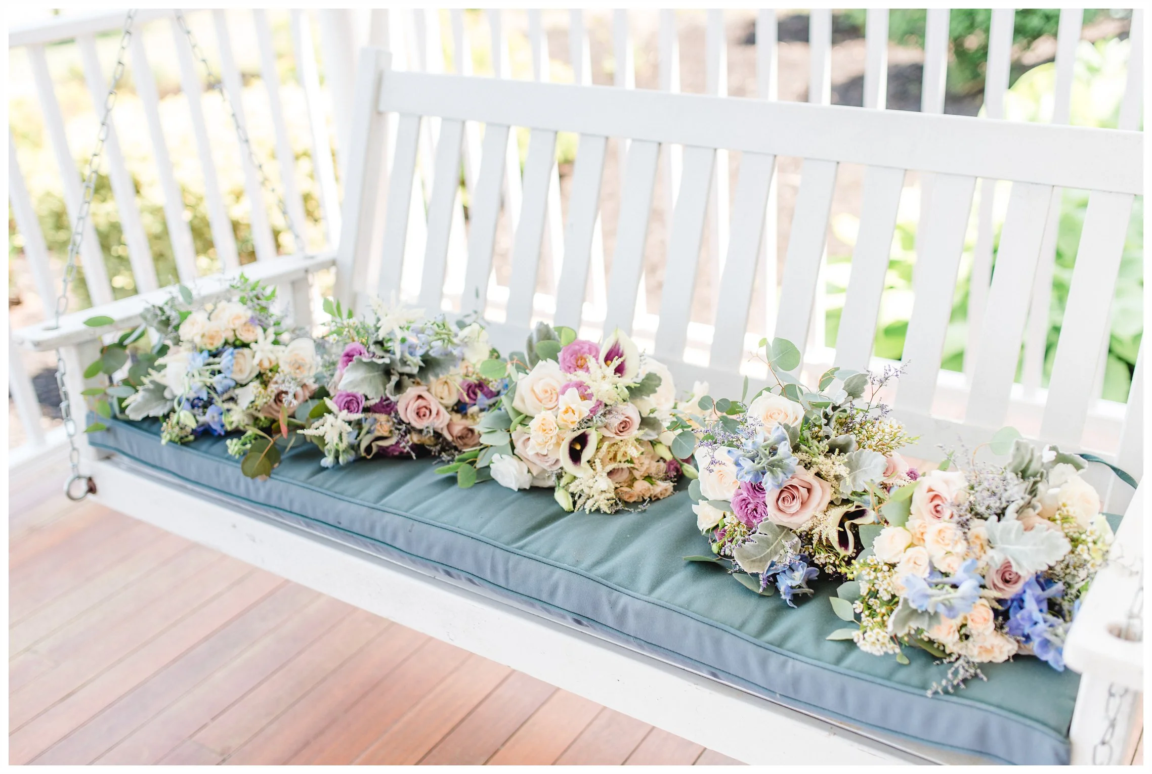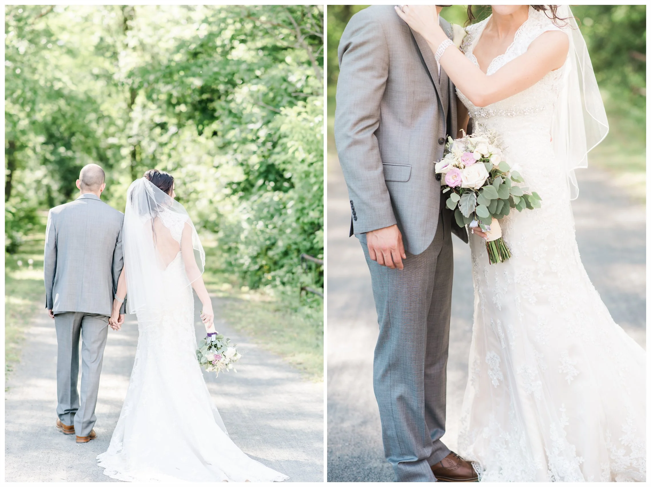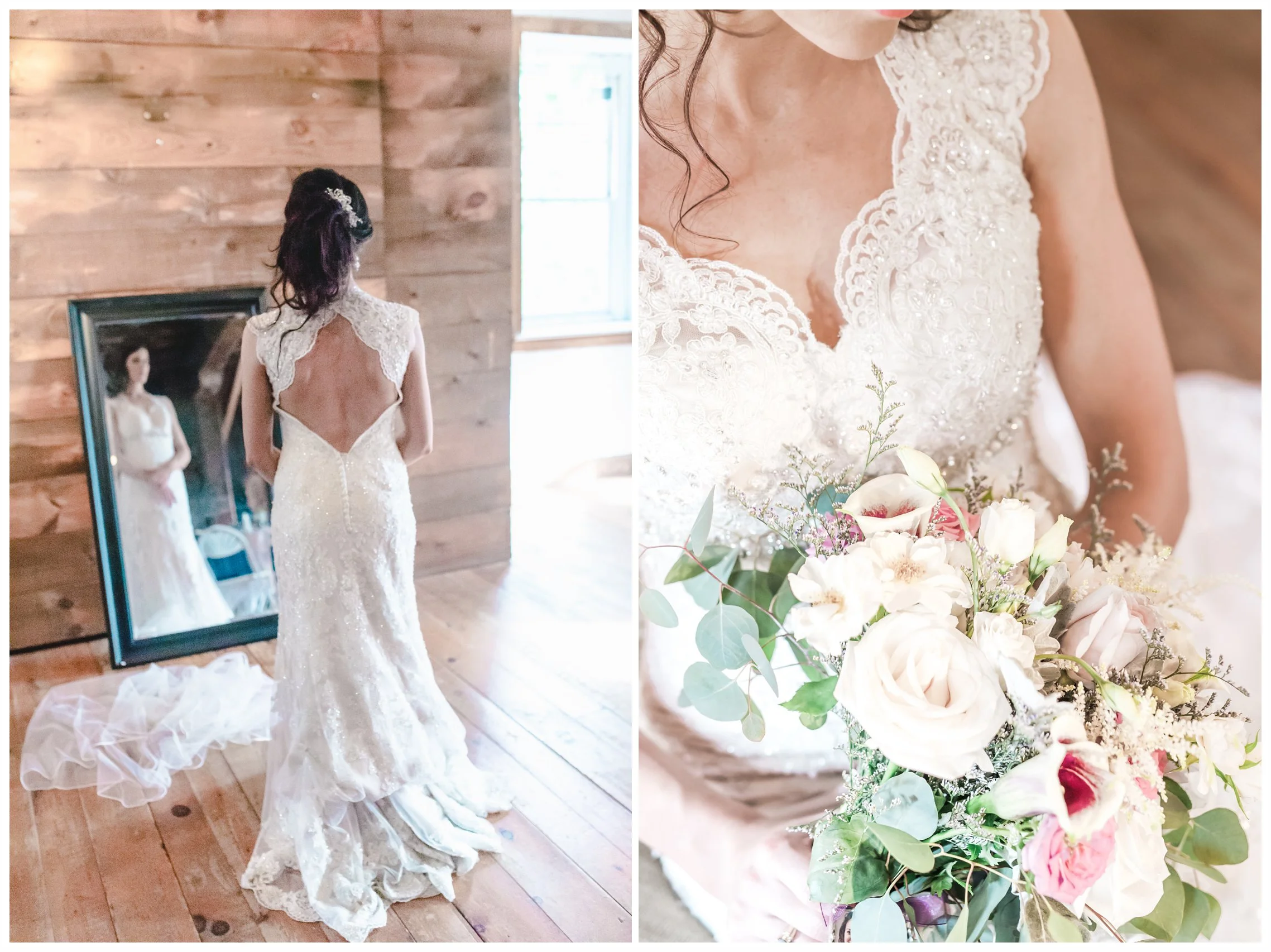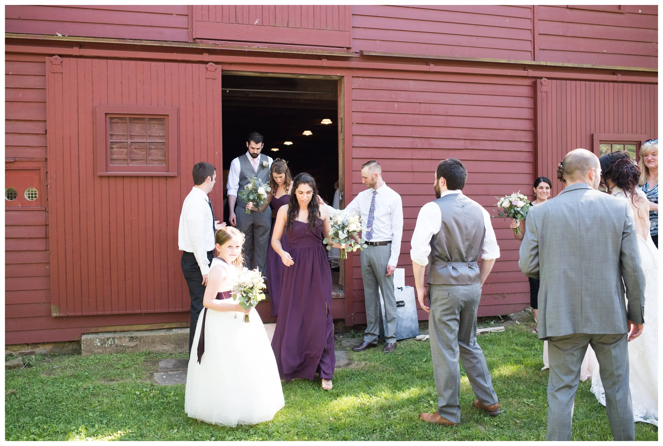 One of the first venues that they visited was the Prallesville Mill located in Stockton, New Jersey. The mill has so much history and is nestled along a beautiful river and upon seeing it, they knew it was right. So the planning commenced and they had so many talented friends and family members to really contribute to making this day so special. Alyssa’s taste was mixed with some pretty lacey things such as her beautiful wedding gown by Maggie Sottero. The florals were by far my favorite all handmade by Donna Pratt, a close family friend. The programs for the ceremony were different shades of purple, pink and black and were handmade by Alyssa.