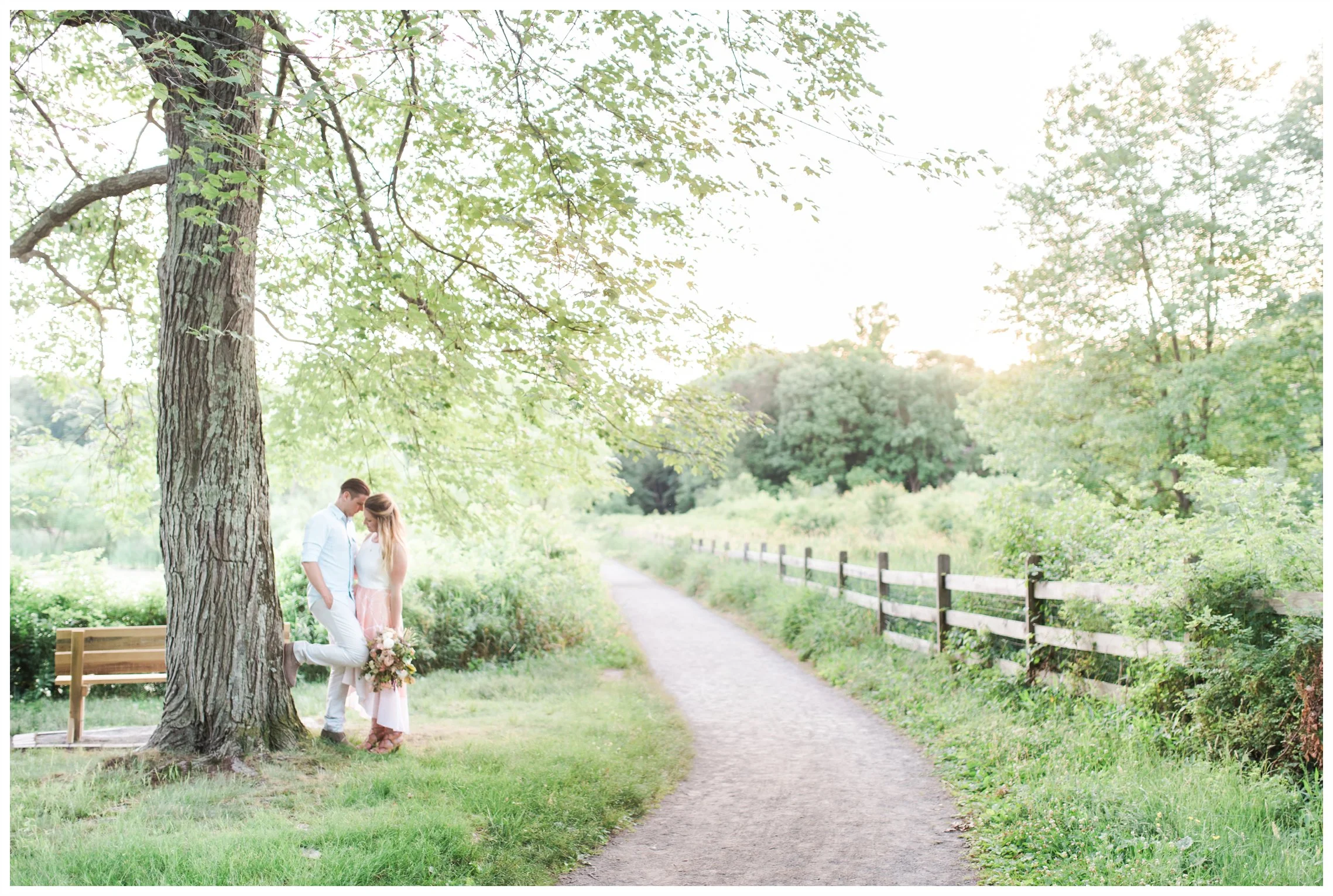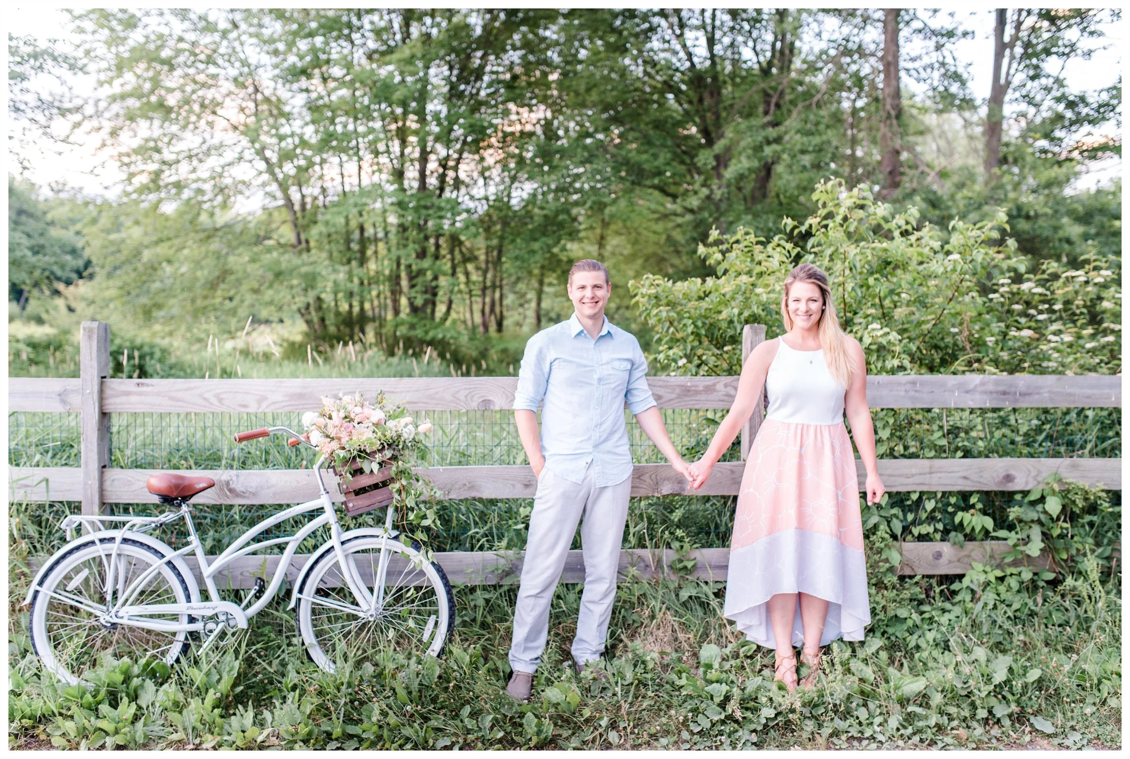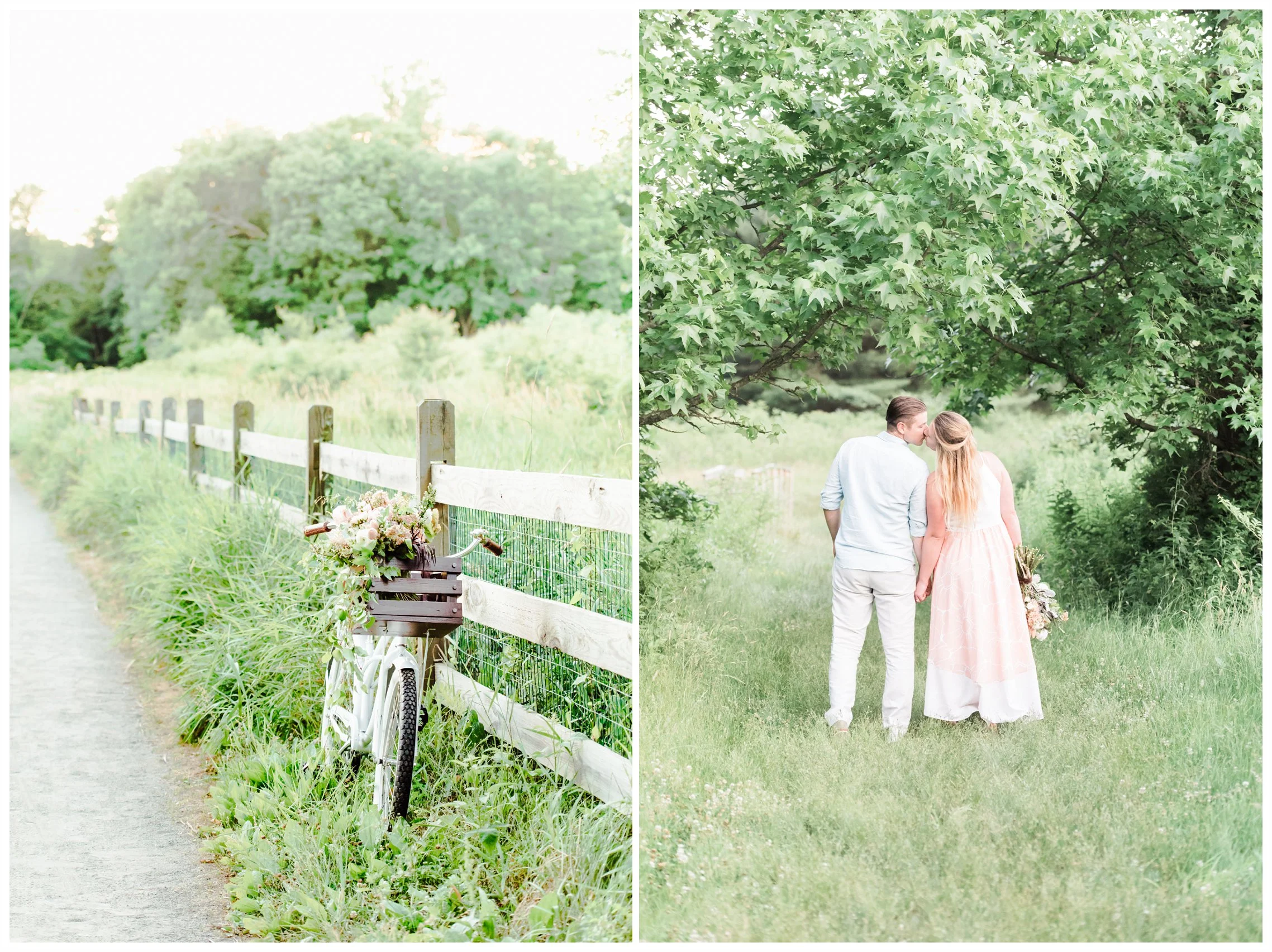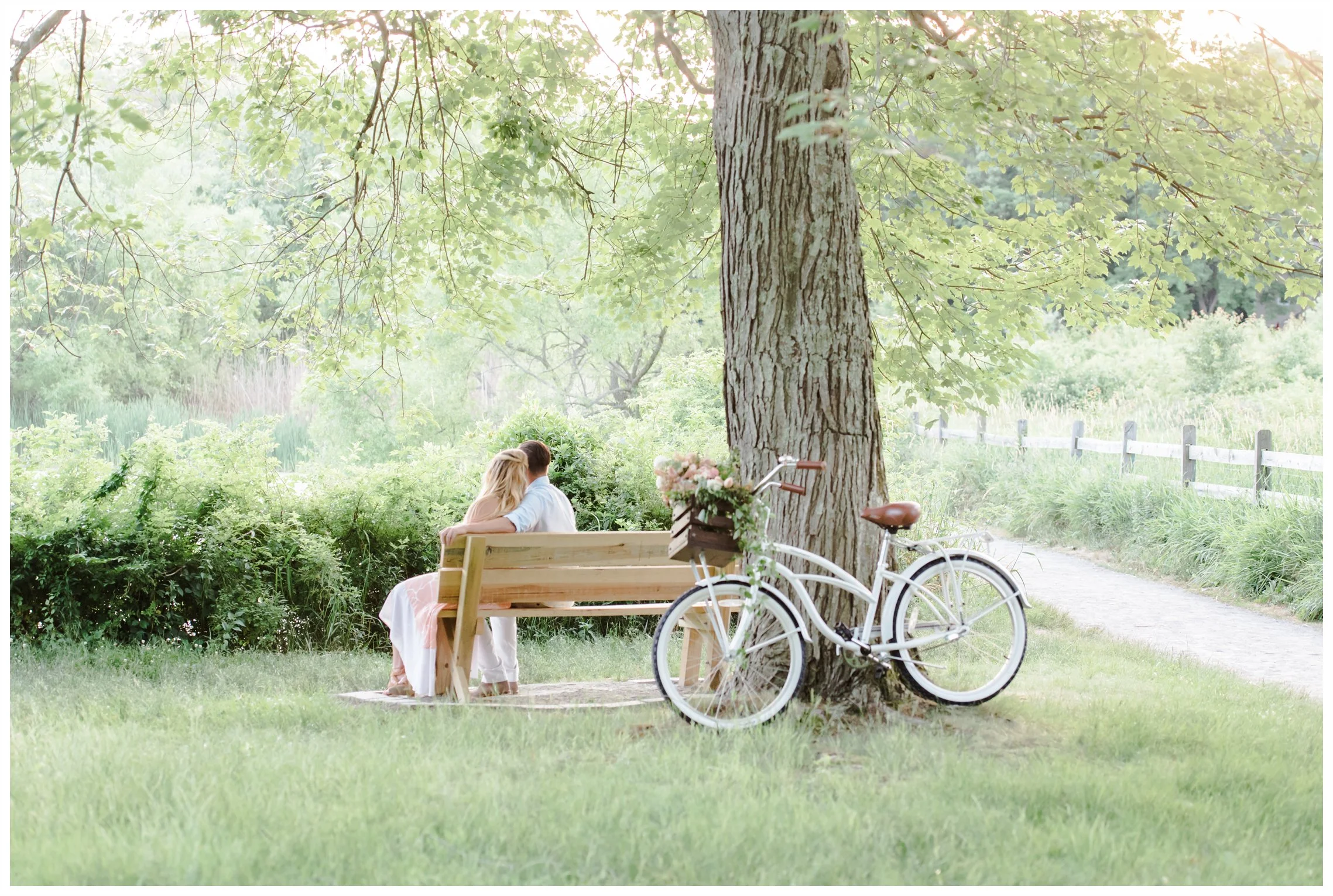 When we started to plan an engagement session I asked them what was one thing that stands out and is really special that either Tim did or Susie did during their years together and they both came out with the bicycle!   We all decided to just do it someplace that had lots of beauty but also not full of people. There is a beautiful lake in Loantaka Park located in Chatham NJ along with trails and fences and beautiful trees.  Once I showed them some photographs of the park they were sure that that was the place!