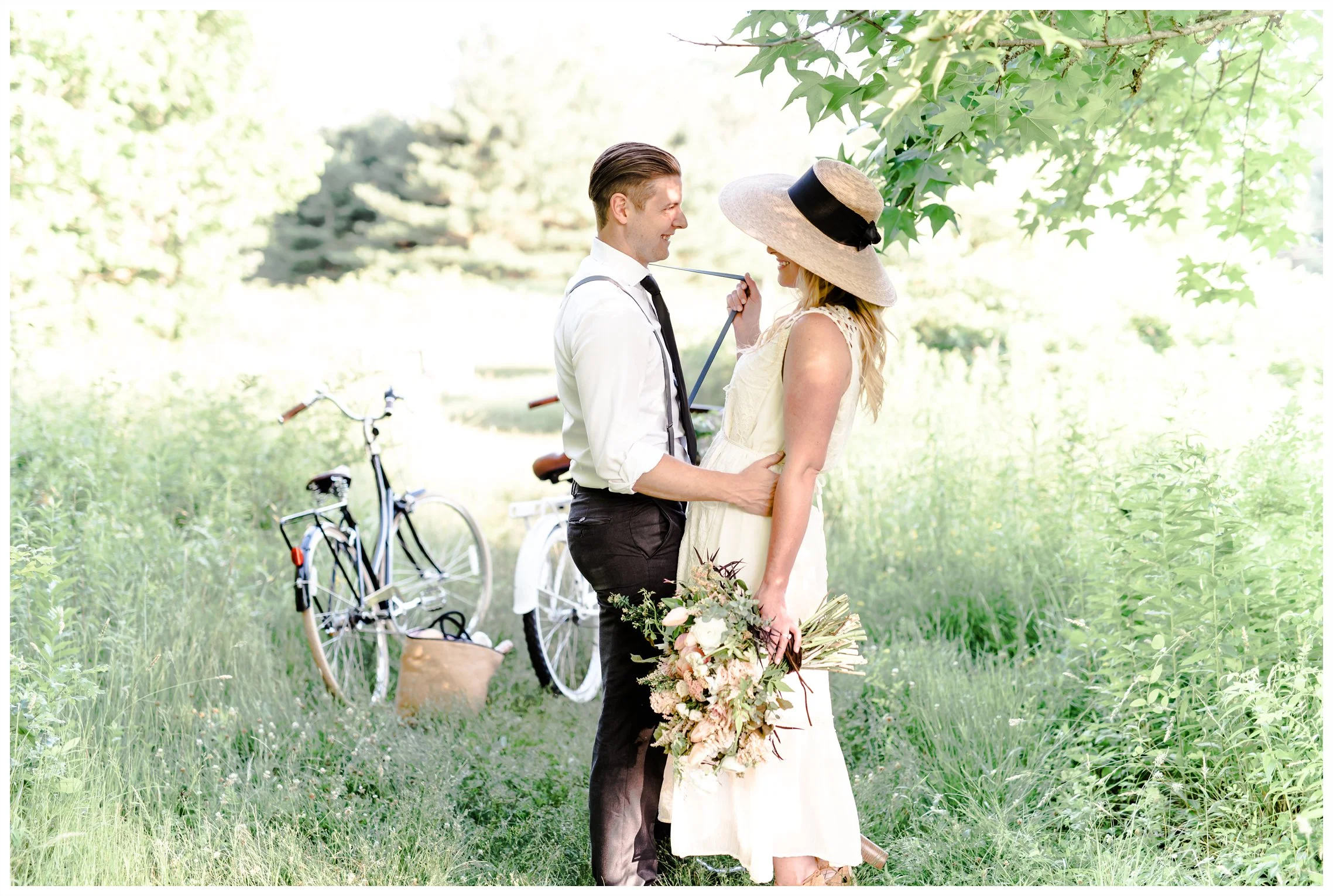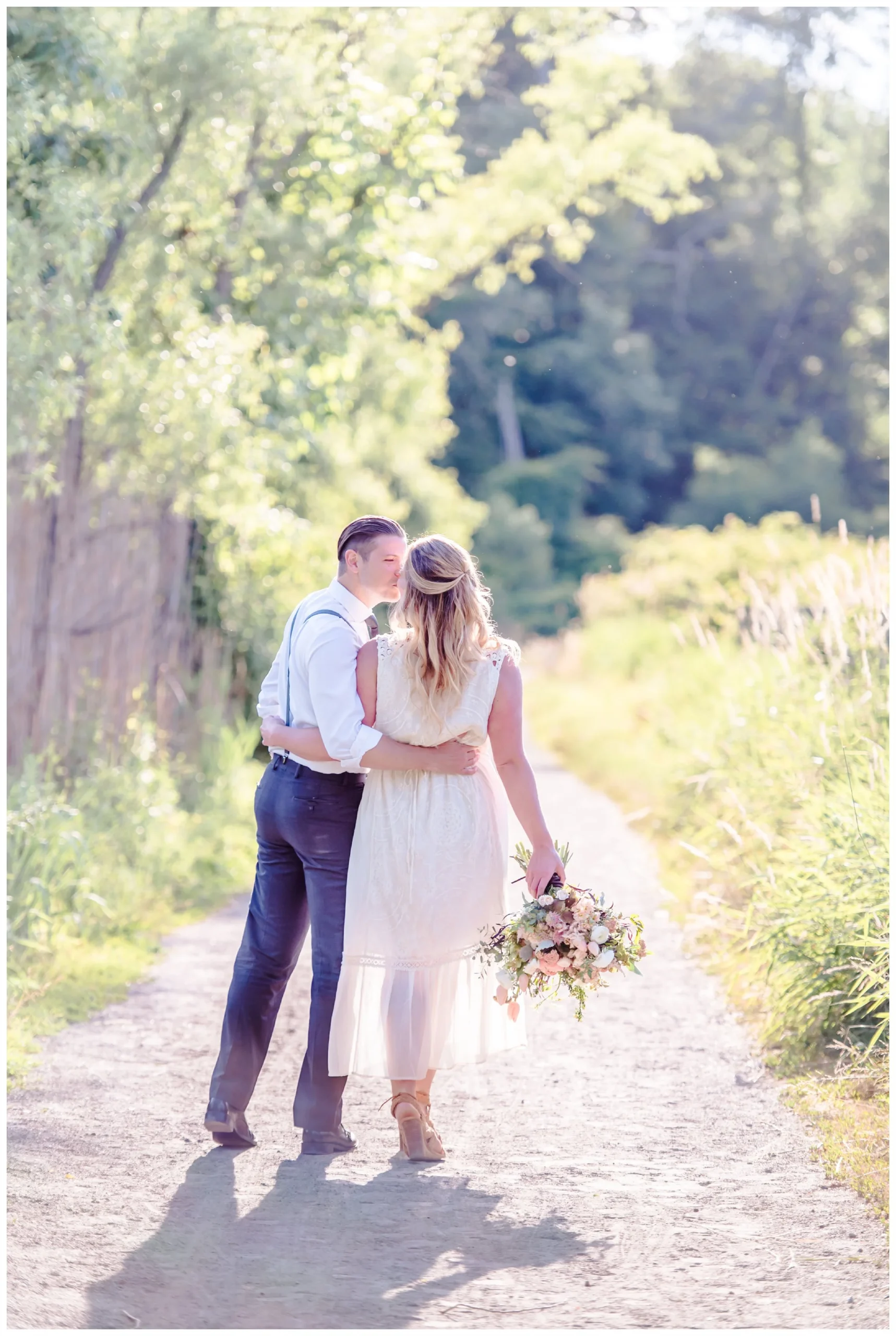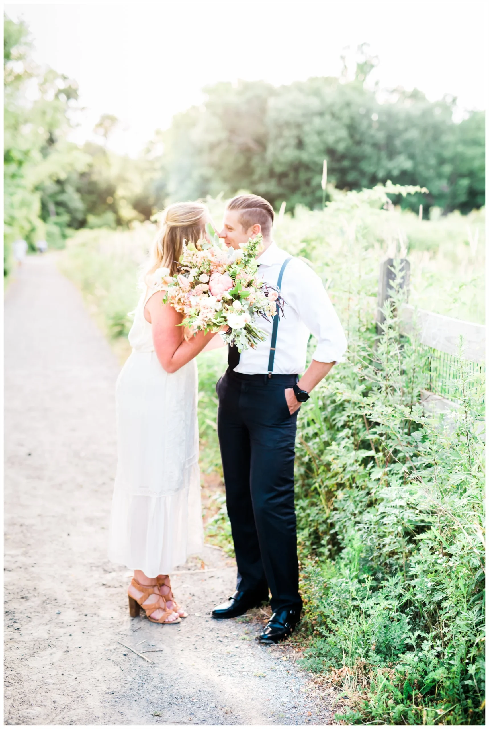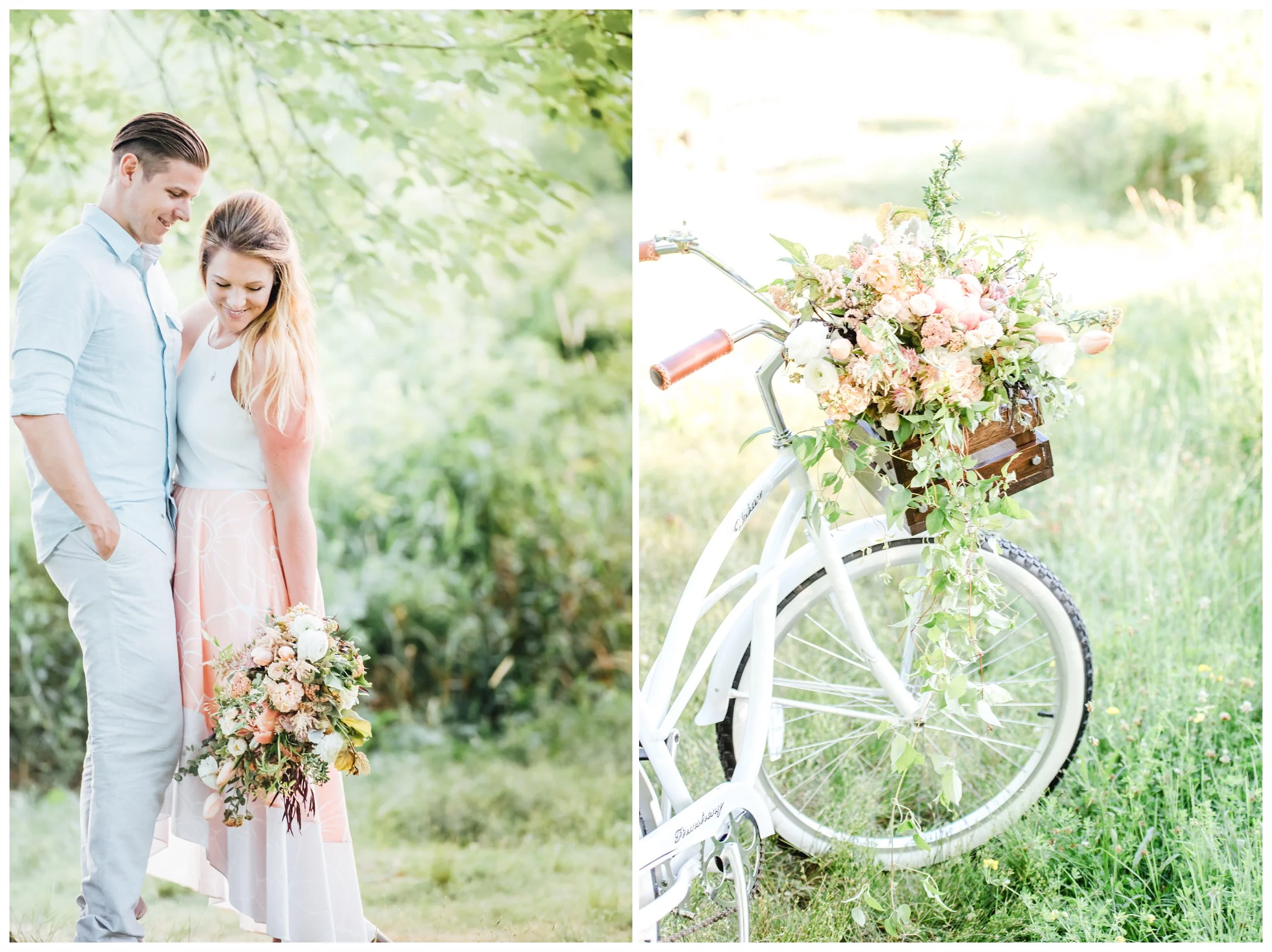When we started to plan an engagement session I asked them what was one thing that stands out and is really special that either Tim did or Susie did during their years together and they both came out with the bicycle!   We all decided to just do it someplace that had lots of beauty but also not full of people. There is a beautiful lake in Loantaka Park located in Chatham NJ along with trails and fences and beautiful trees.  Once I showed them some photographs of the park they were sure that that was the place!