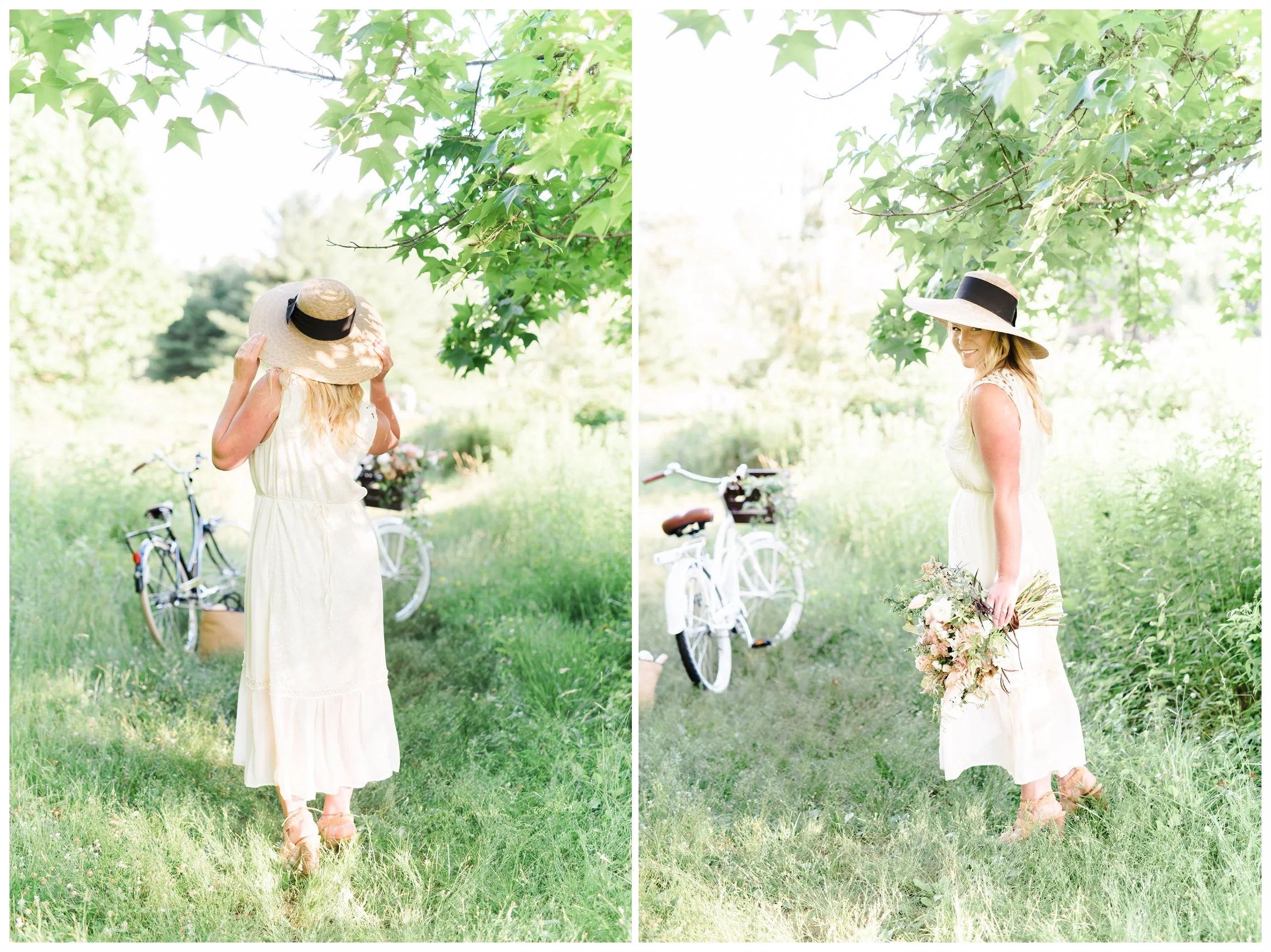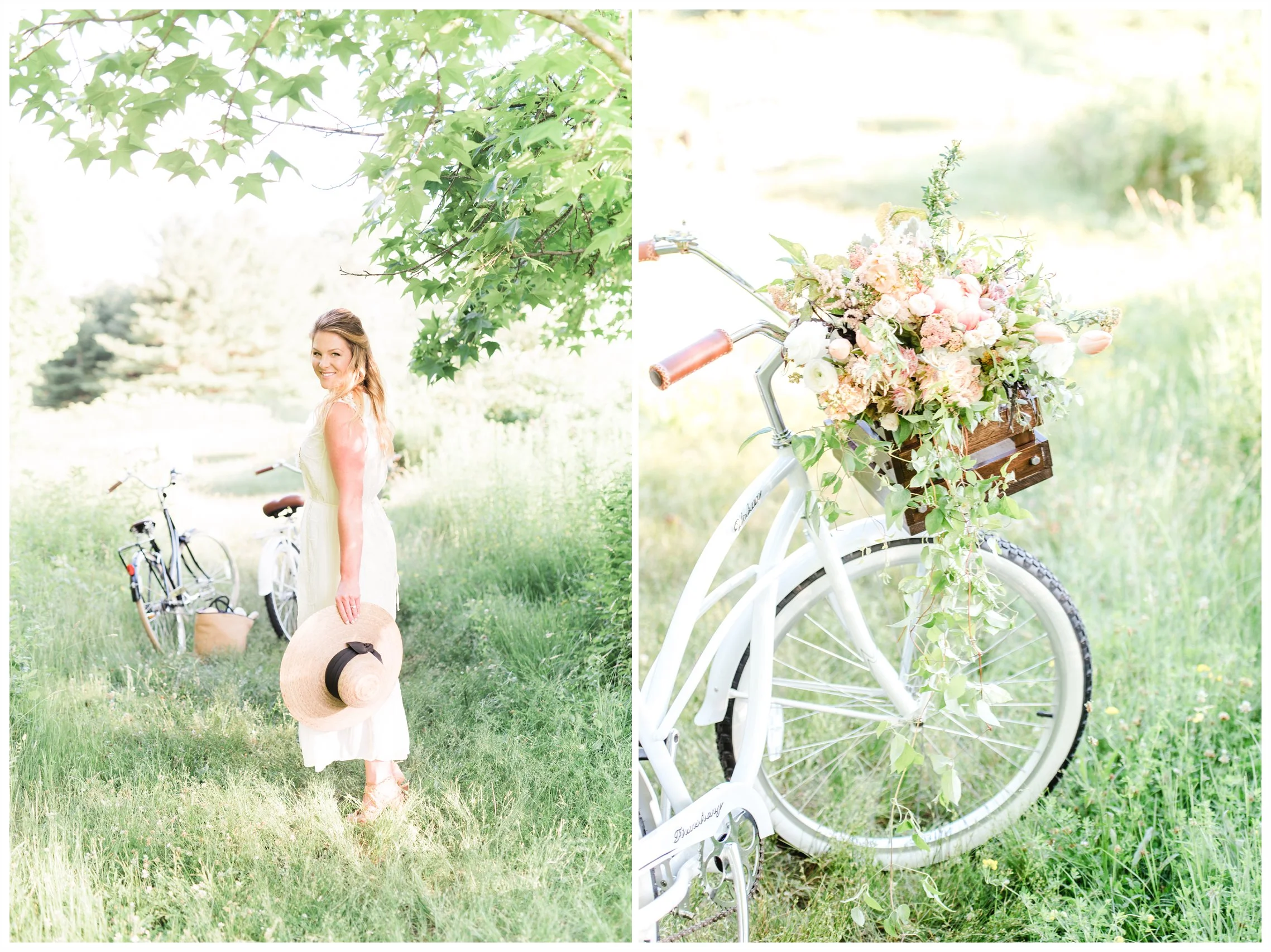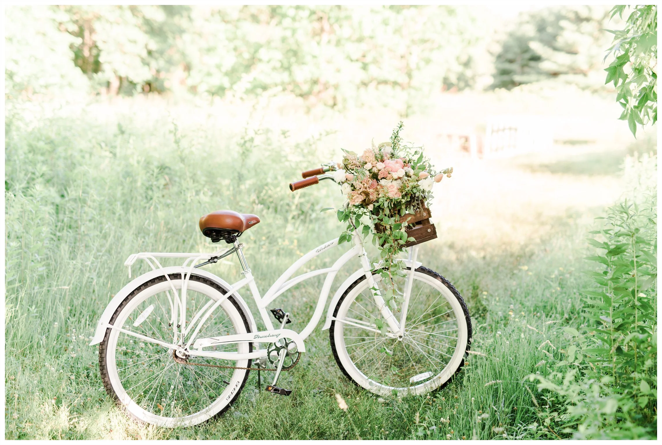 Now the story about the beautiful bicycle. After years of Susie imagining her dream bicycle, Tim decided to custom design and assembled her beautiful white cruiser.  He also hand-built the crate that sits at the front of her bicycle and burned a personal inscription on the bottom.