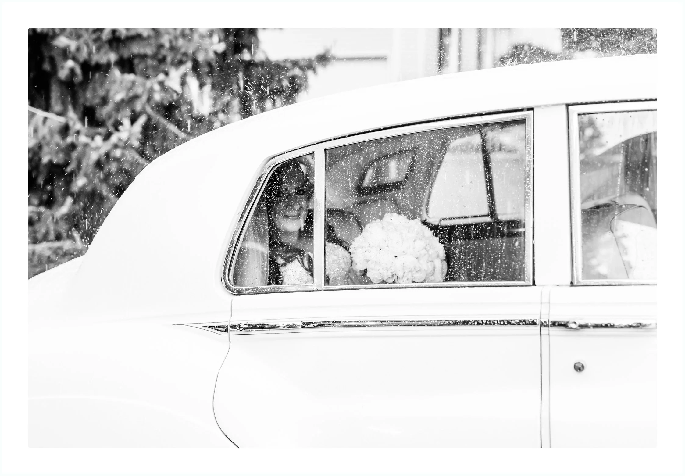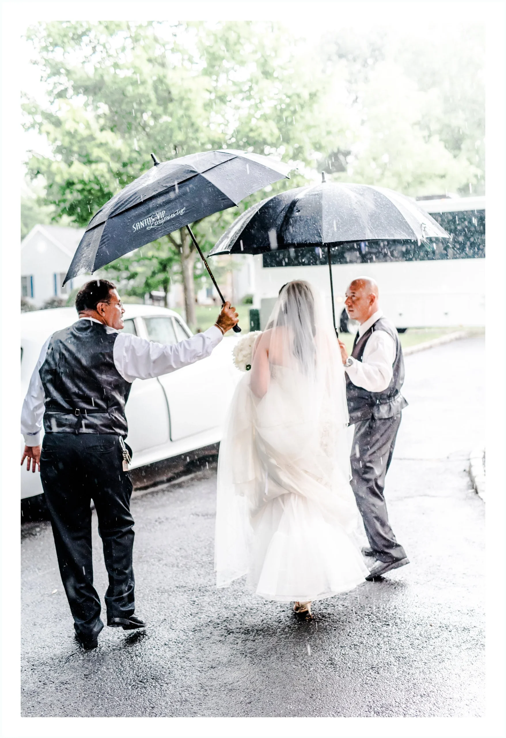 The bridesmaids were so gracious and helpful in every way possible. There was the forecast of rain was coming so we had to make our way out to the yard for some shots before it downpoured. And it did! Just as Katie was getting into the car the skies opened up. I have to say it was a bit tough keeping her dry, but we actually managed to get some sweet photos with the rain surrounding us.