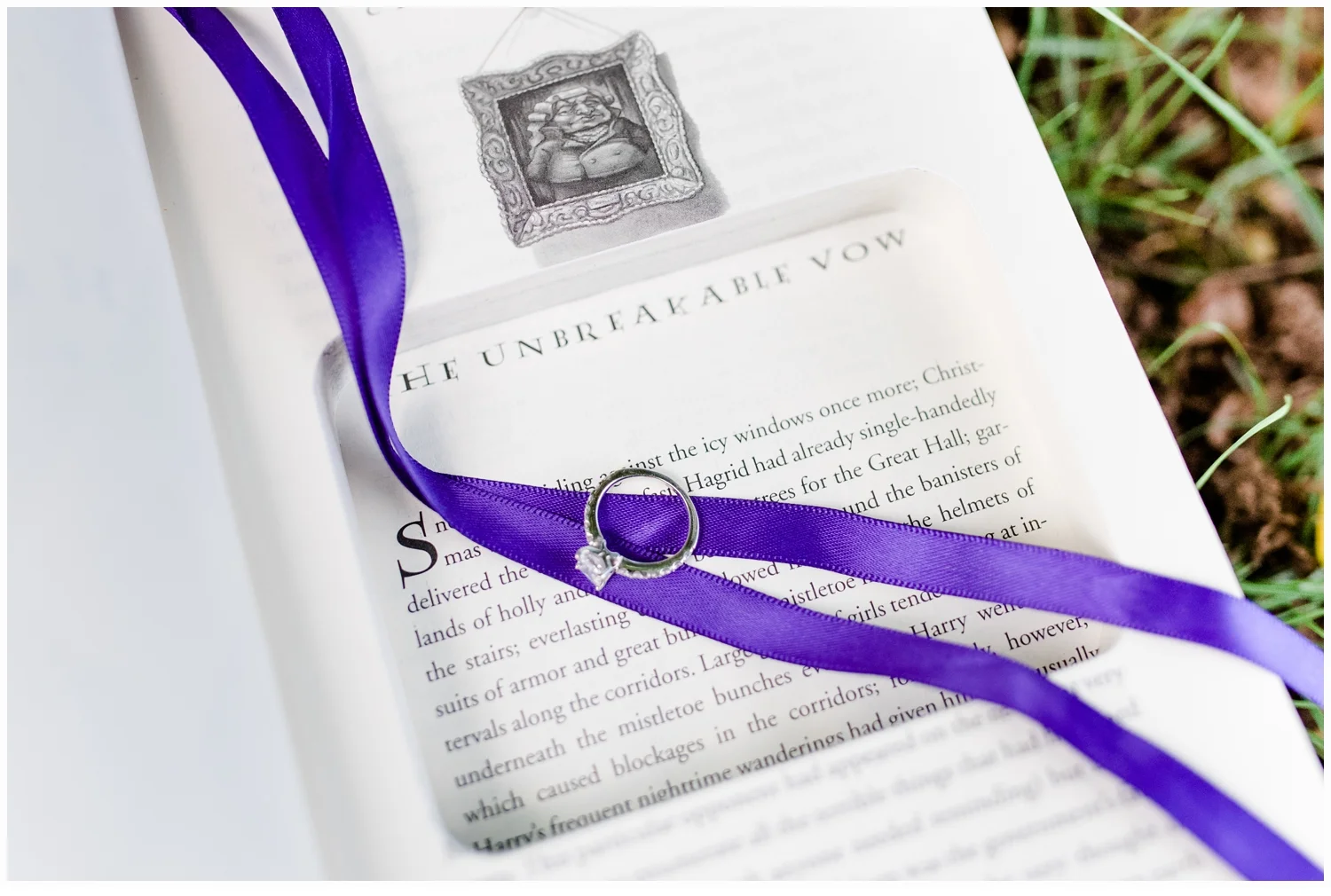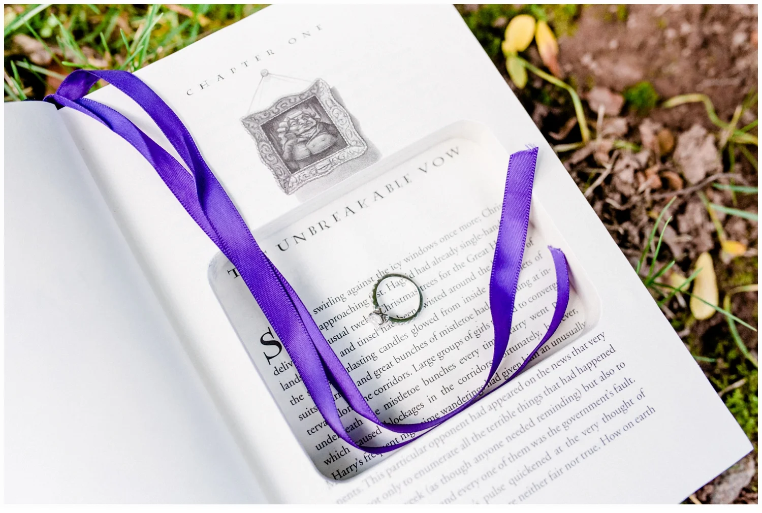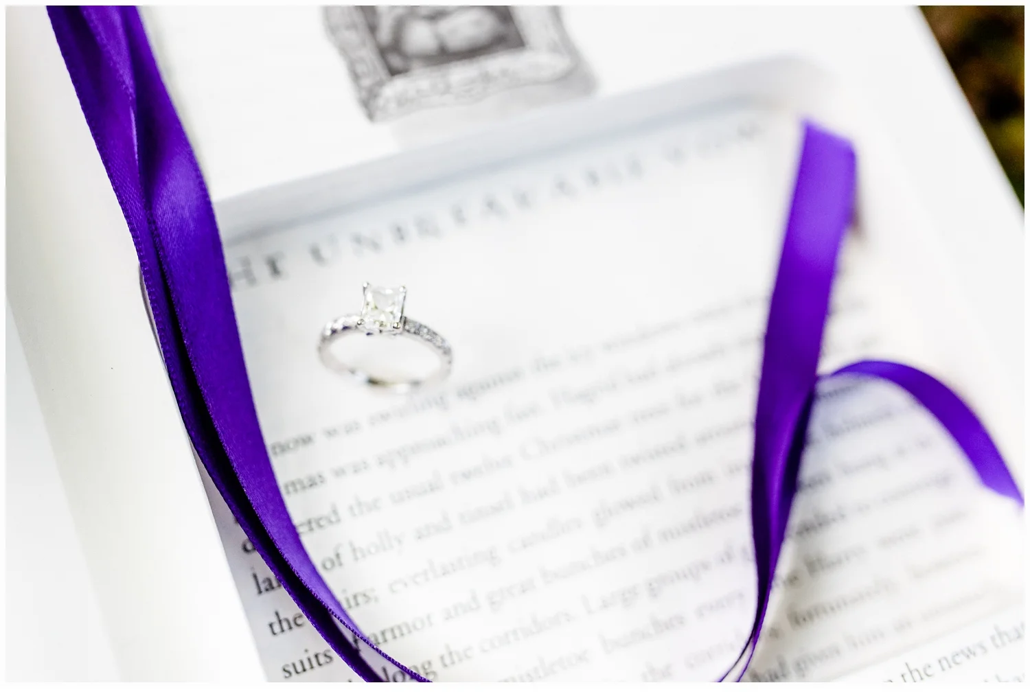 When Brit opened the book, there was a cut out in the book on the chapter called “the unbreakable vow” and an engagement ring tied with a beautiful purple ribbon inside. At this moment, Jon dropped to one knee and proposed!
