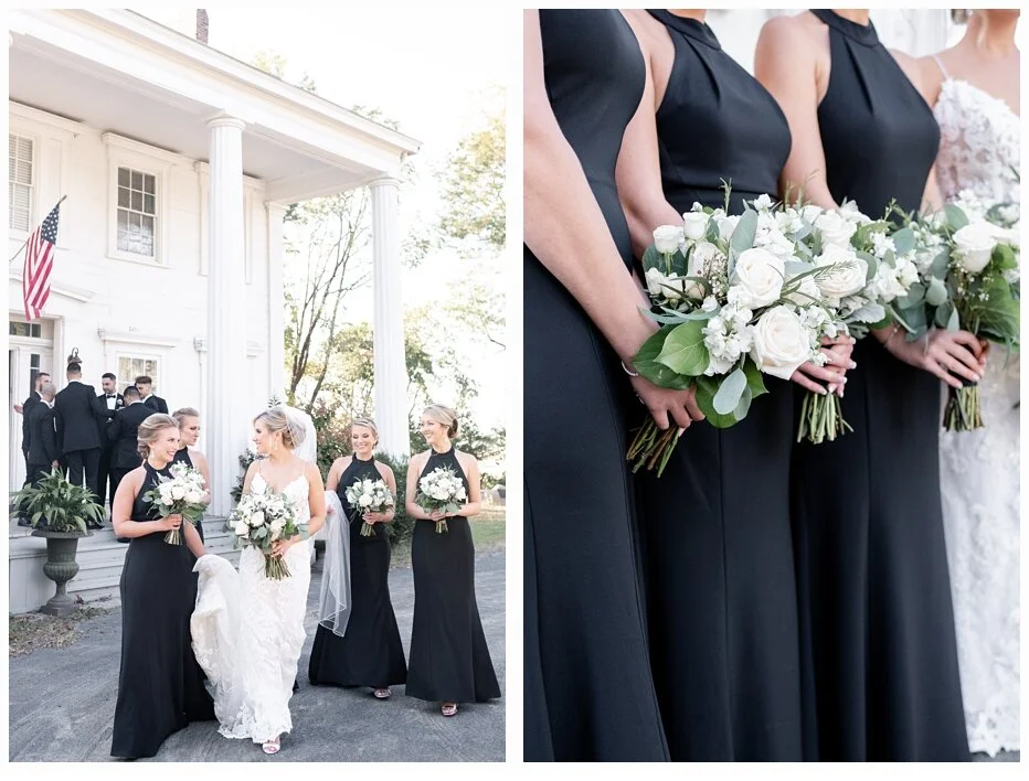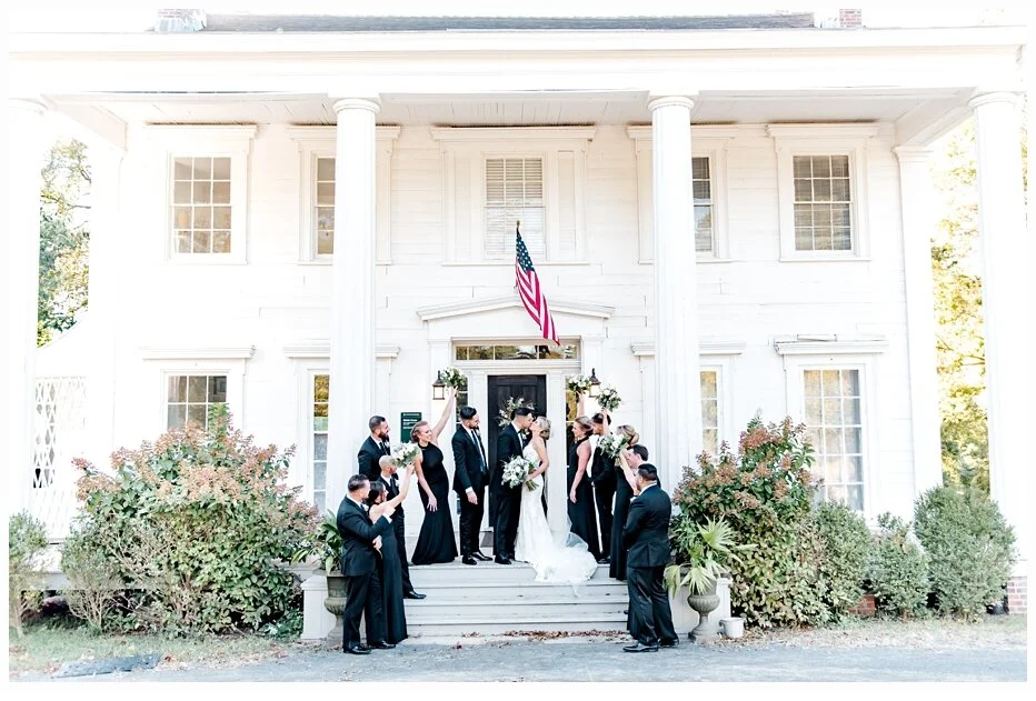 It was then time to find the perfect location for some bridal party fun and portraits. I found the most perfect little park where there was a beautiful historic old home that was the perfect backdrop for our very gorgeous black and white wedding!