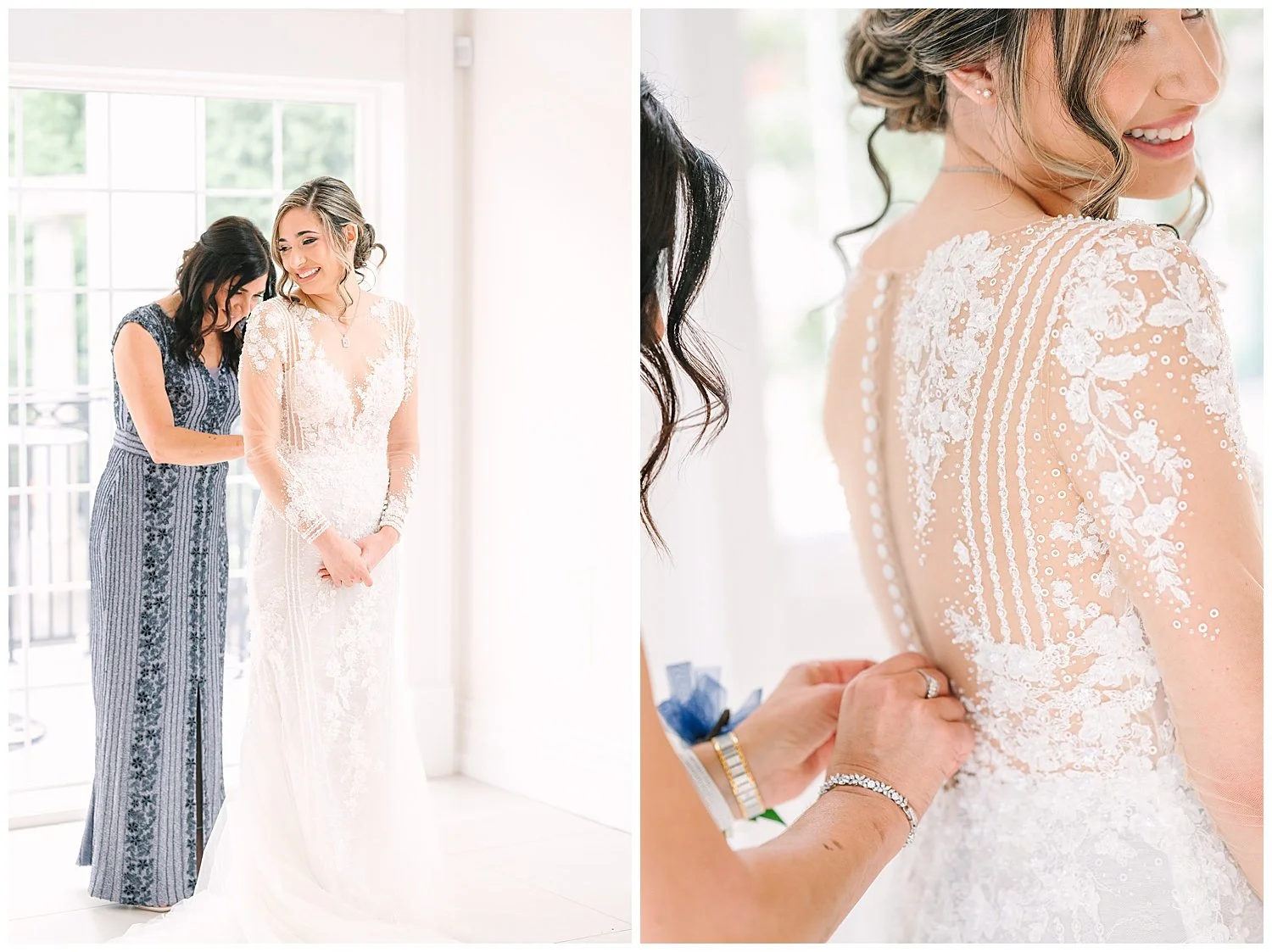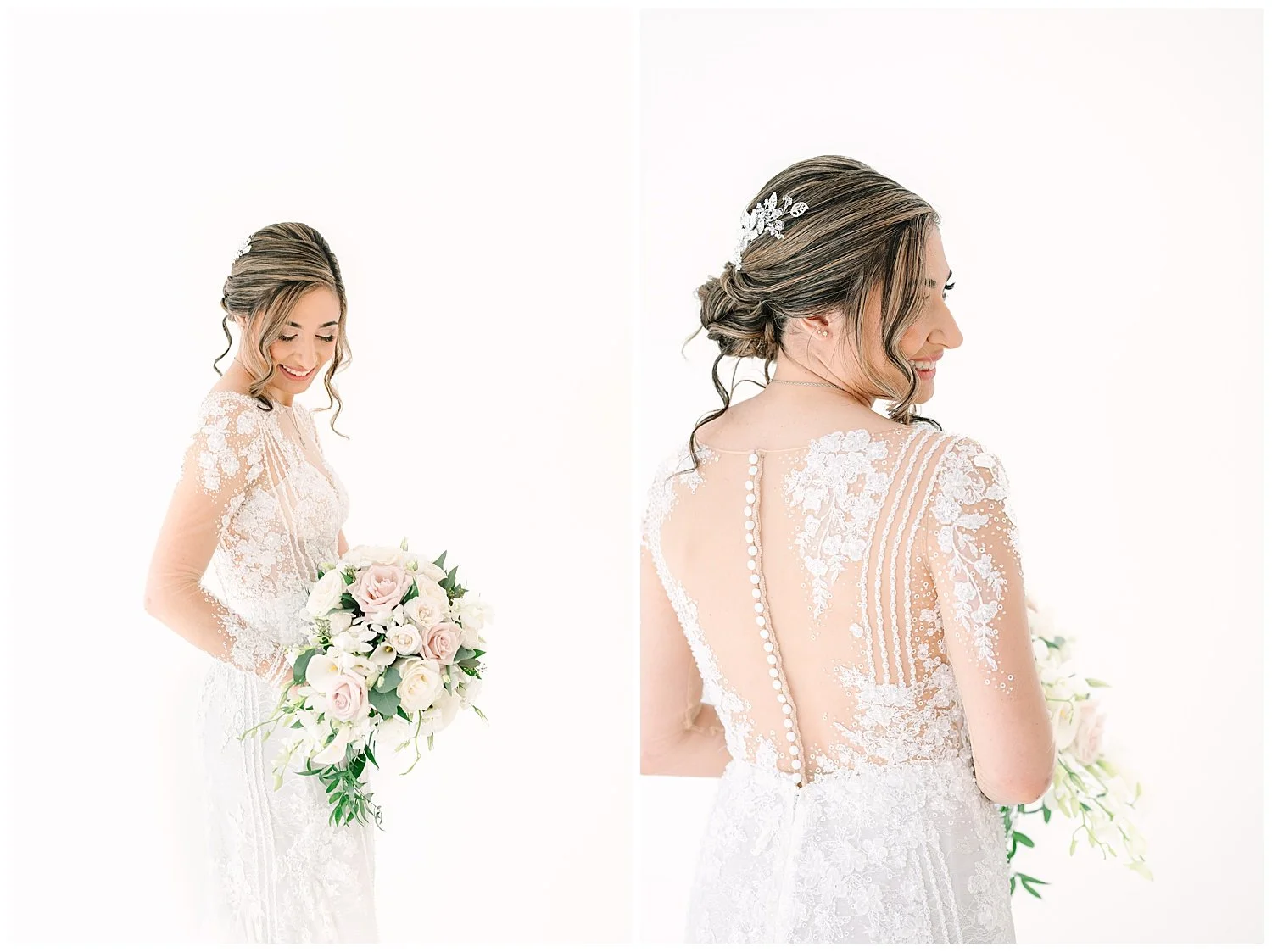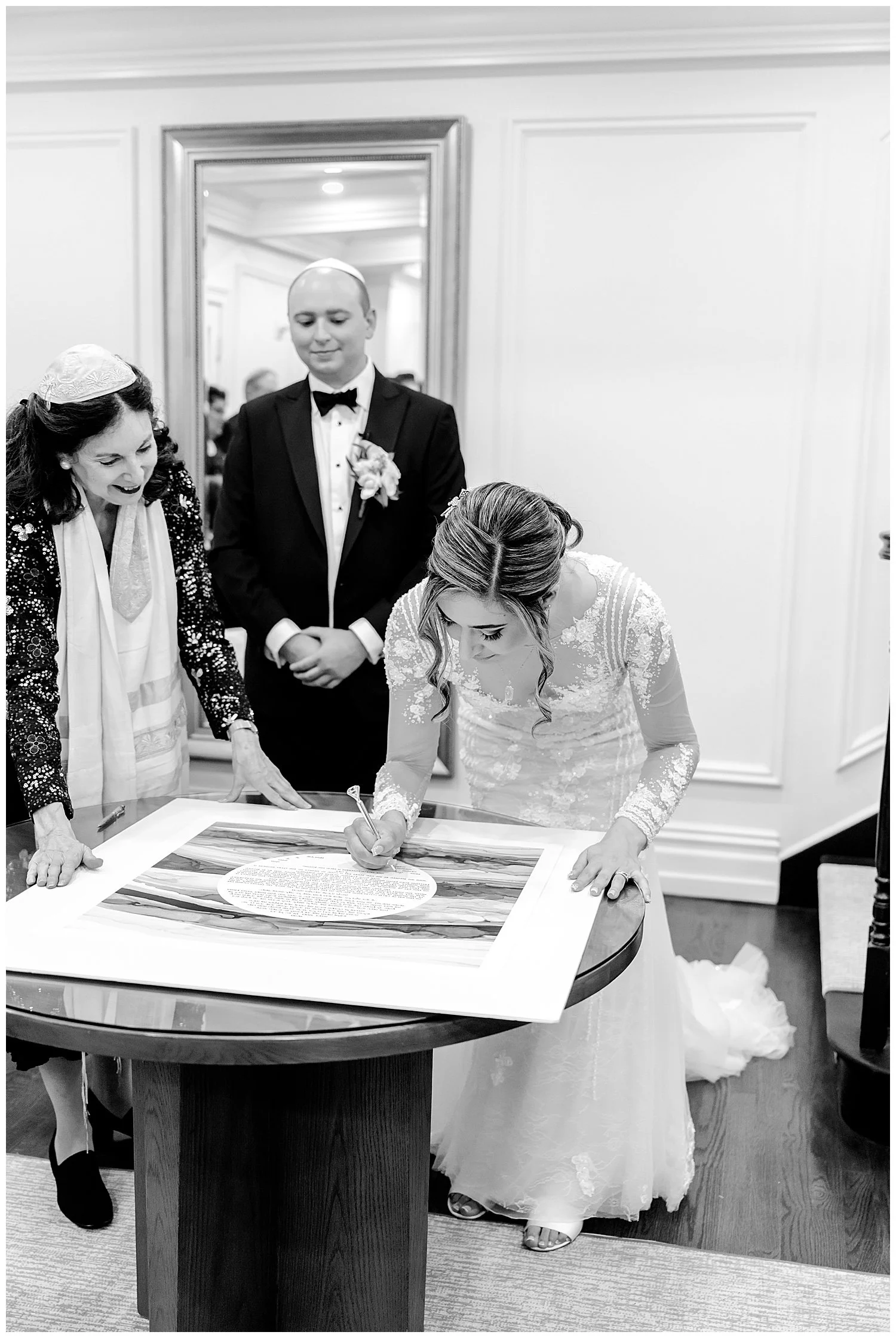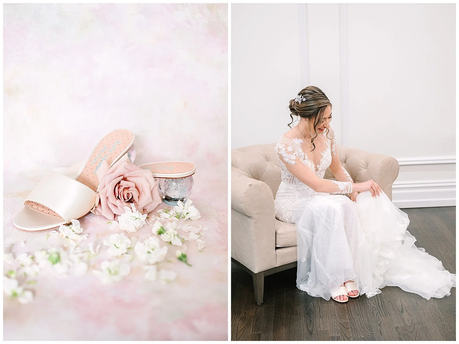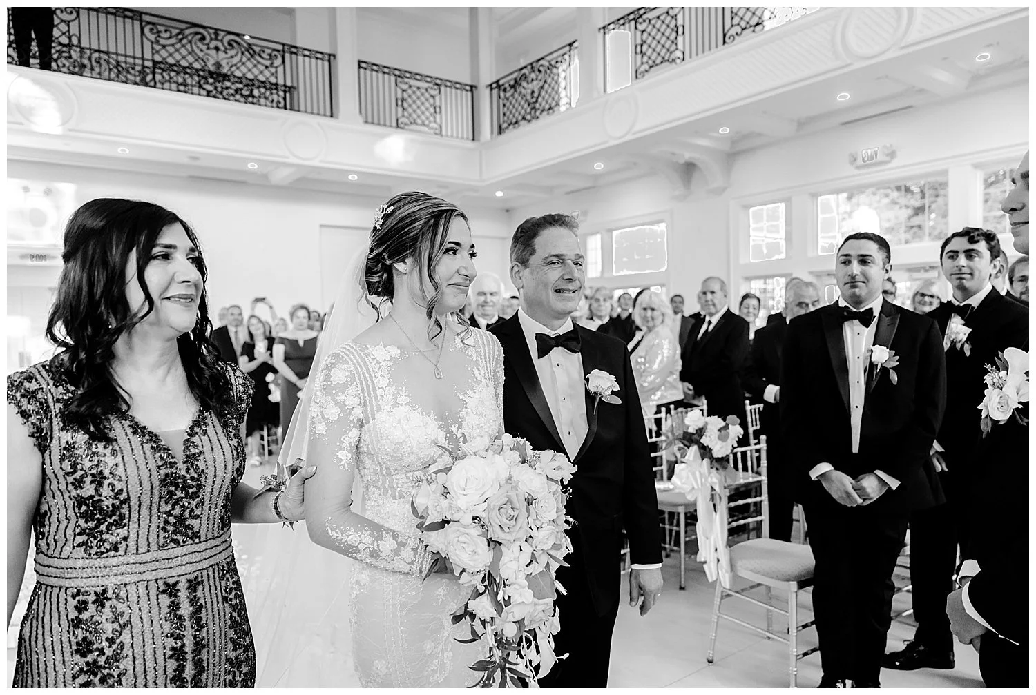 Emily and John’s ceremony was a testament to the beauty of blending cultures. They skillfully combined their Jewish and Catholic traditions, crafting a meaningful and inclusive celebration. The chuppah, adorned with soft peach florals and greenery, stood proudly at the altar, symbolizing the couple’s shared future under one roof. The ceremony incorporated the seven blessings of the Jewish tradition alongside Catholic prayers, uniting their families in a harmonious and heartfelt way.