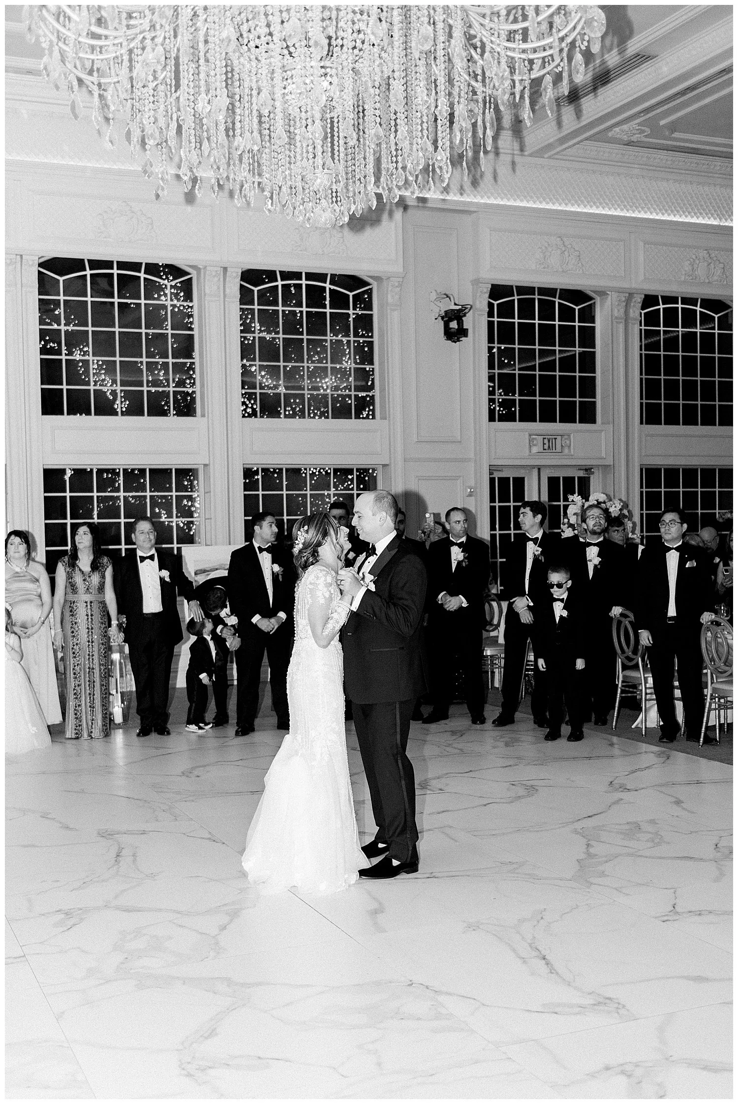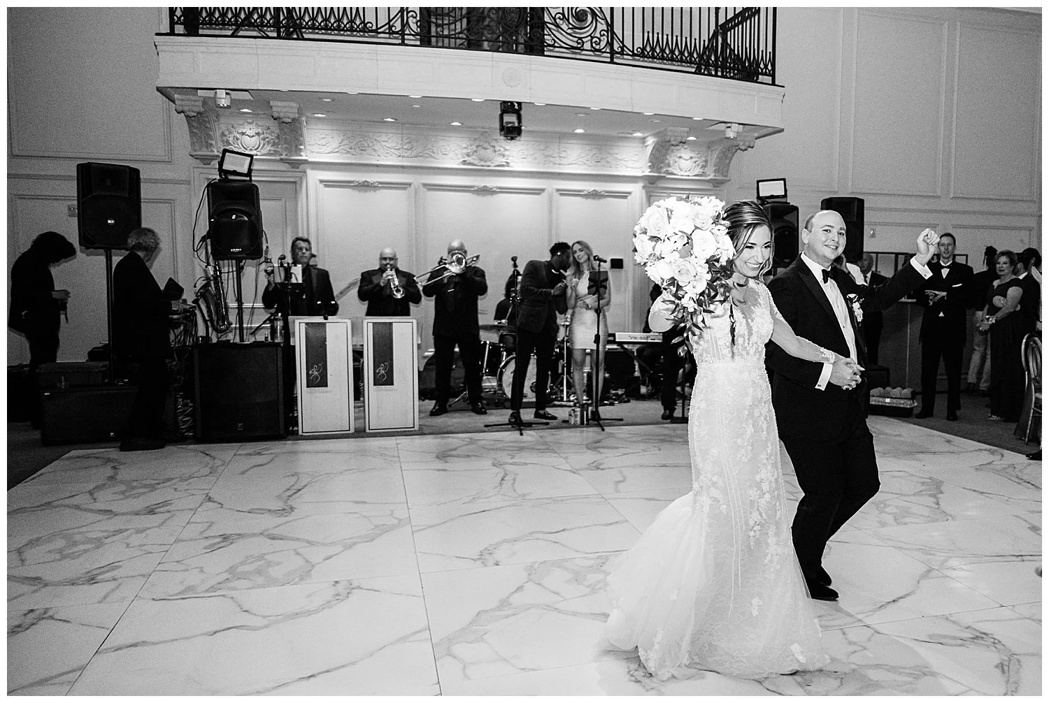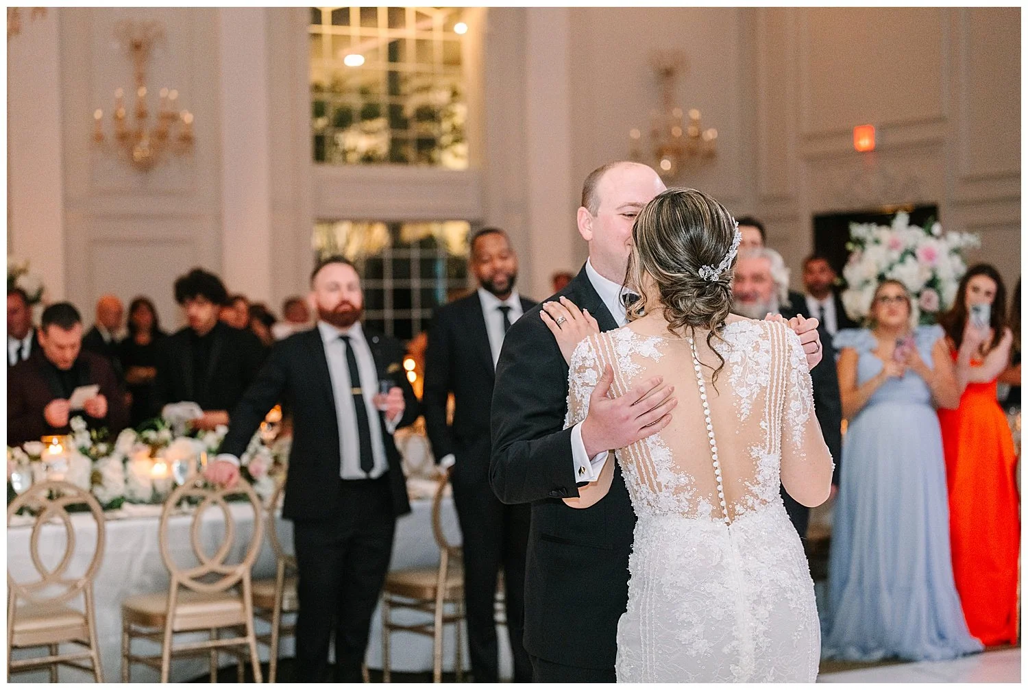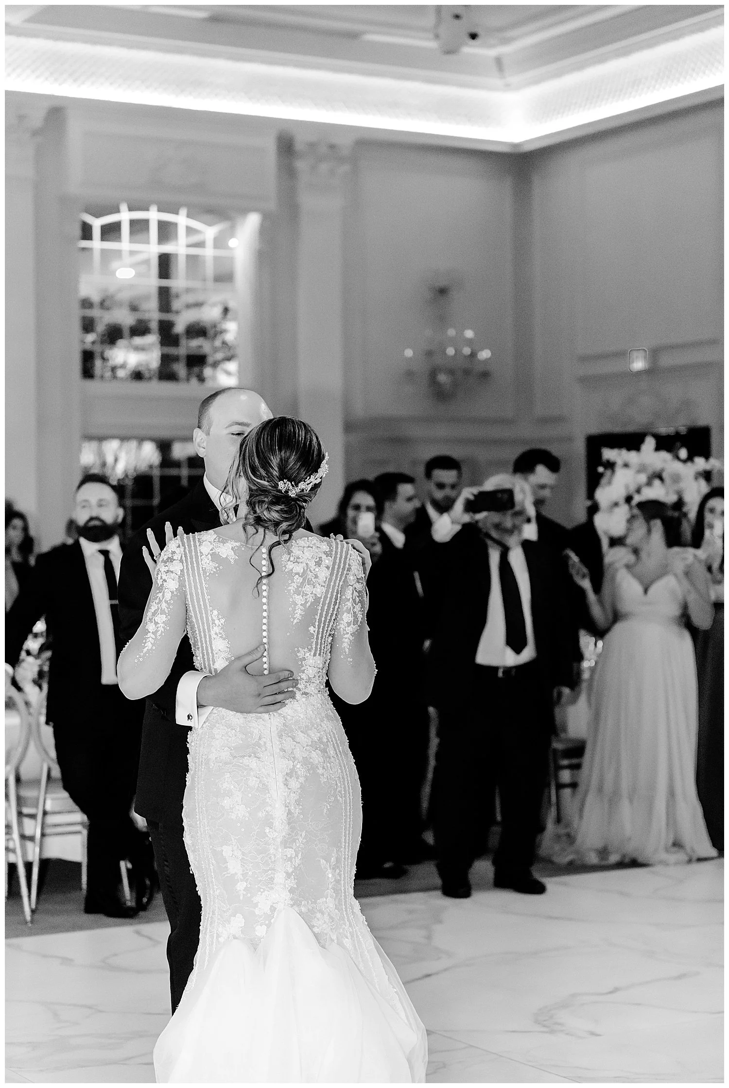 The couple’s classic peachy theme carried into the reception decor, where soft blush linens, candlelit centerpieces, and peach-toned floral arrangements created a sophisticated and warm ambiance. The ballroom at Florentine Gardens, known for its timeless elegance, provided the perfect setting for a black-tie affair. Guests dined under sparkling chandeliers, enjoying a menu carefully curated to reflect both of their heritages. The night ended with the couple’s sweet first dance, rounding out a day that was equal parts refined and personal.