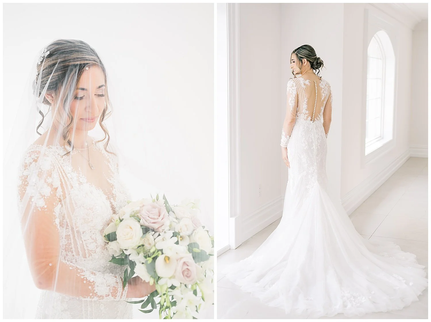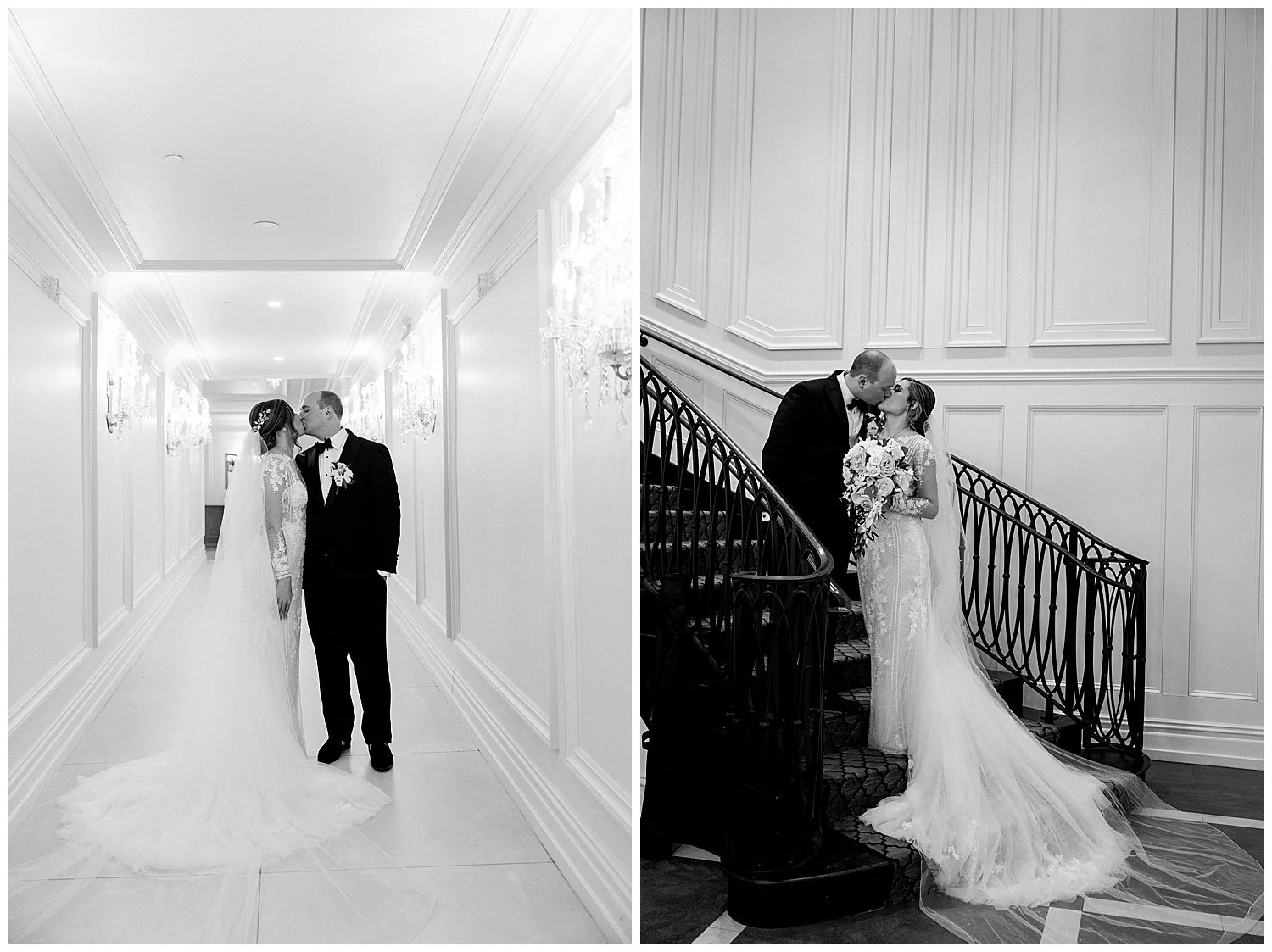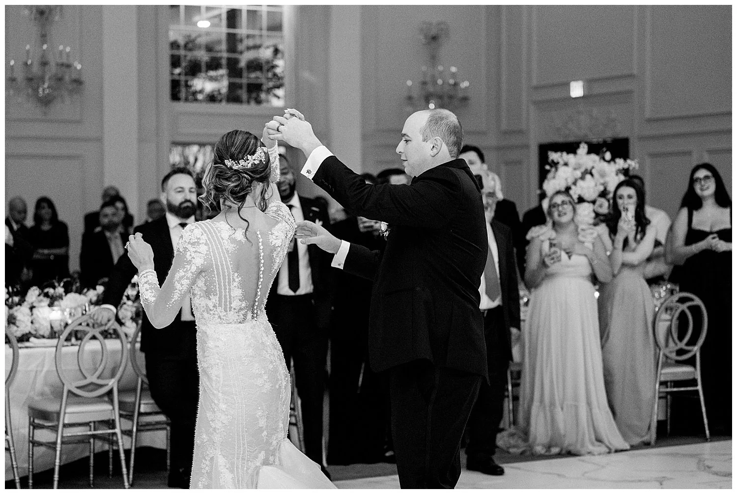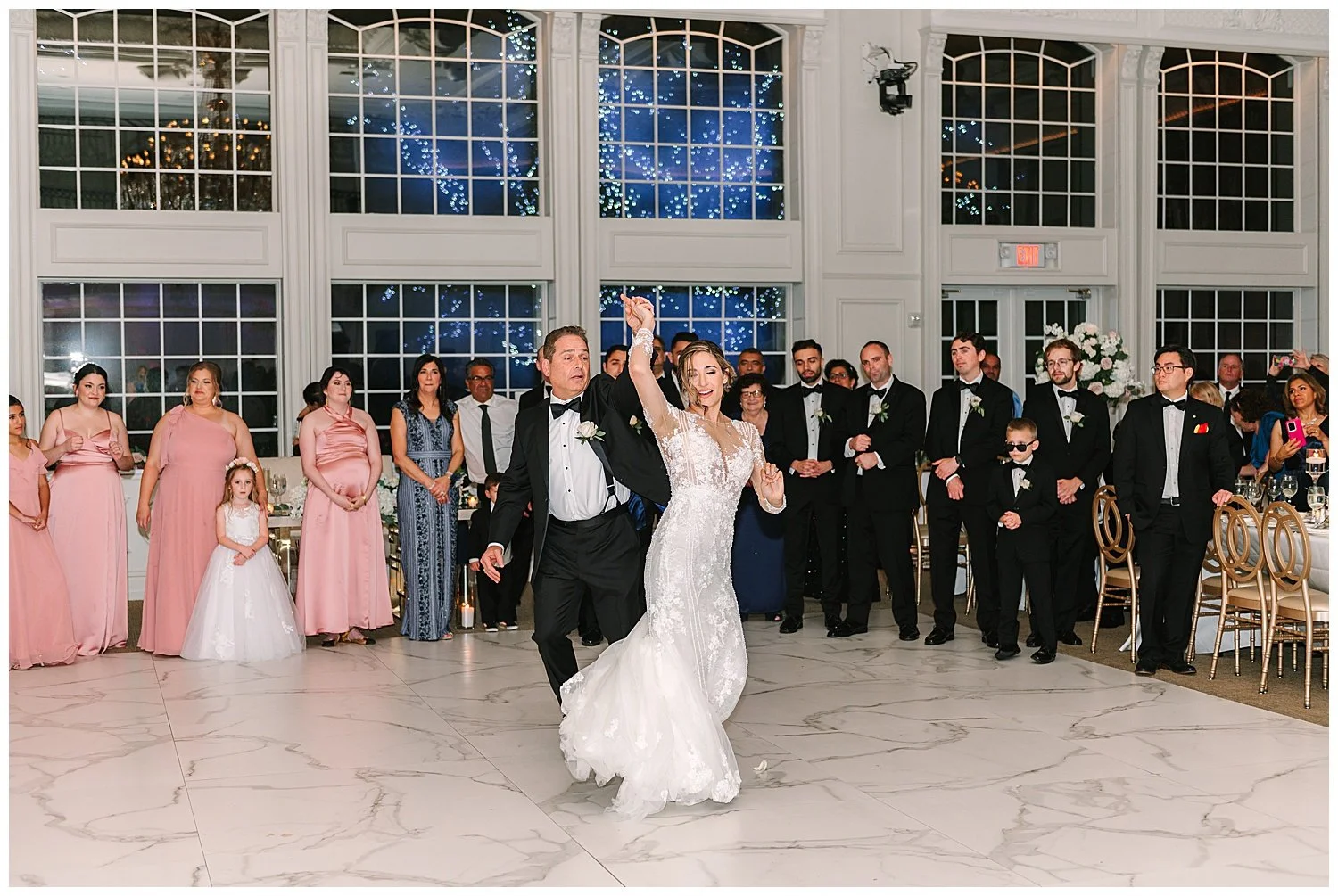 The couple’s classic peachy theme carried into the reception decor, where soft blush linens, candlelit centerpieces, and peach-toned floral arrangements created a sophisticated and warm ambiance. The ballroom at Florentine Gardens, known for its timeless elegance, provided the perfect setting for a black-tie affair. Guests dined under sparkling chandeliers, enjoying a menu carefully curated to reflect both of their heritages. The night ended with the couple’s sweet first dance, rounding out a day that was equal parts refined and personal.