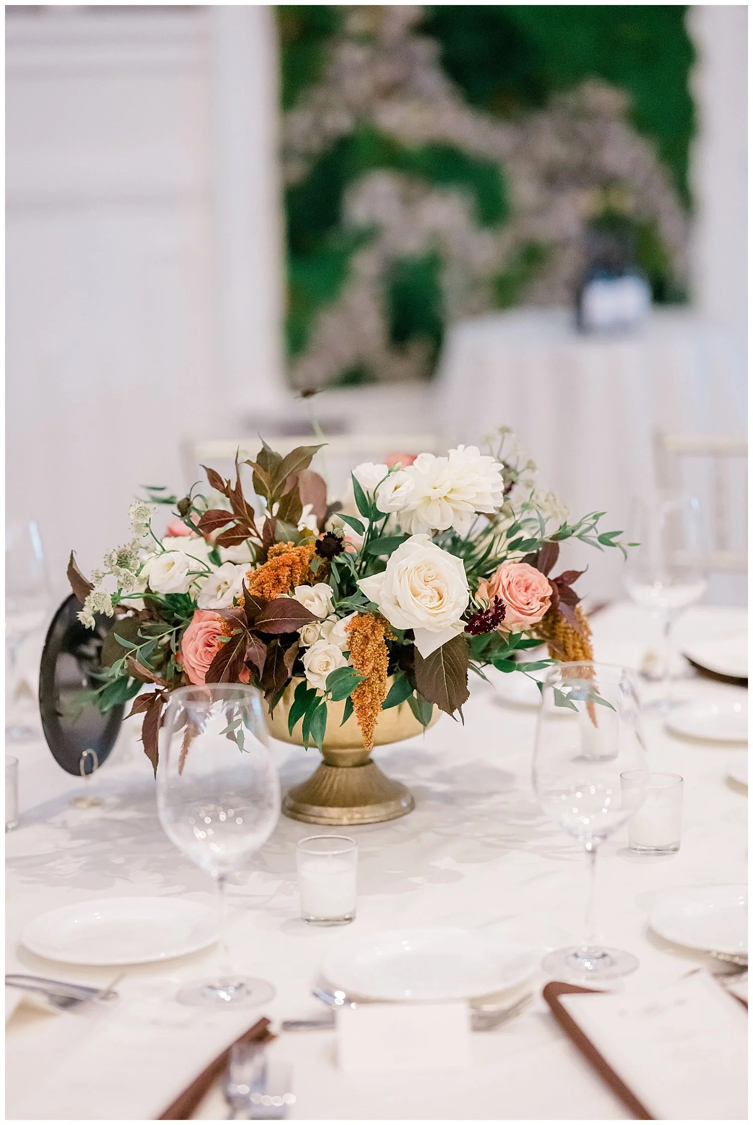 From the moment guests arrived, they were greeted by the serene, natural beauty of the venue, which complemented the rich, seasonal tones of the decor. The ambiance was one of timeless elegance, with florals and accents that mirrored the natural surroundings, setting the stage for a magical evening.