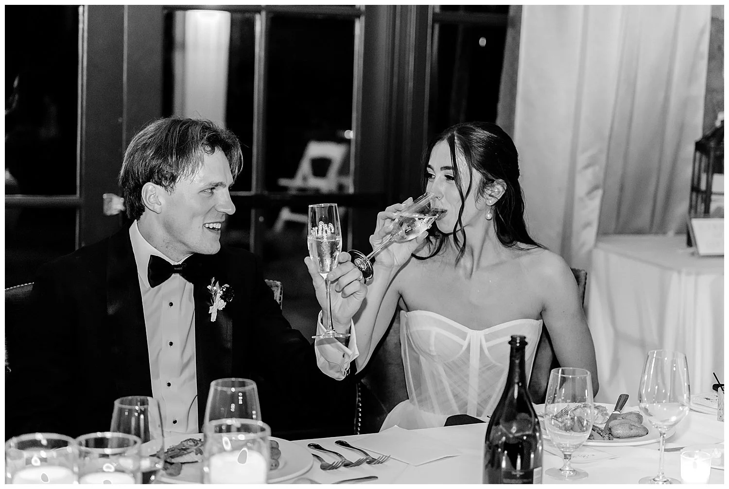Lizzie’s bridesmaids, dressed in shades that complemented the fall color scheme, were the life of the party, bringing joy and energy to every part of the celebration. And, in a fun twist, Lizzie stunned her guests by wearing not one, but two different gowns throughout the evening—both perfectly reflecting her elegant and chic style.