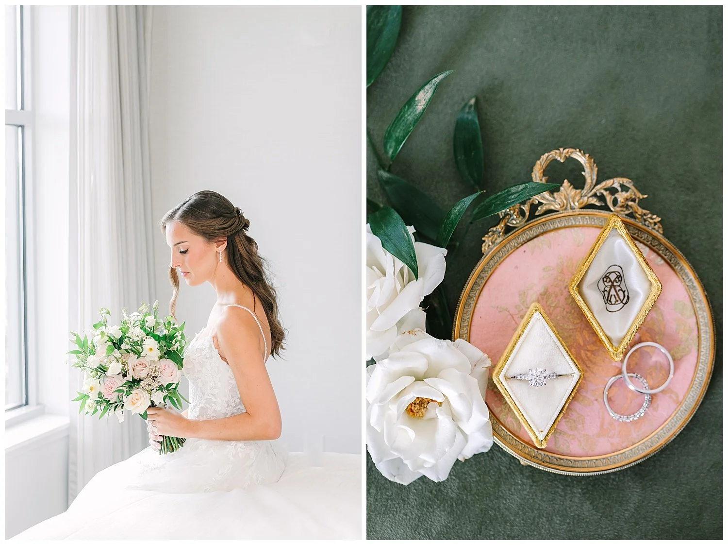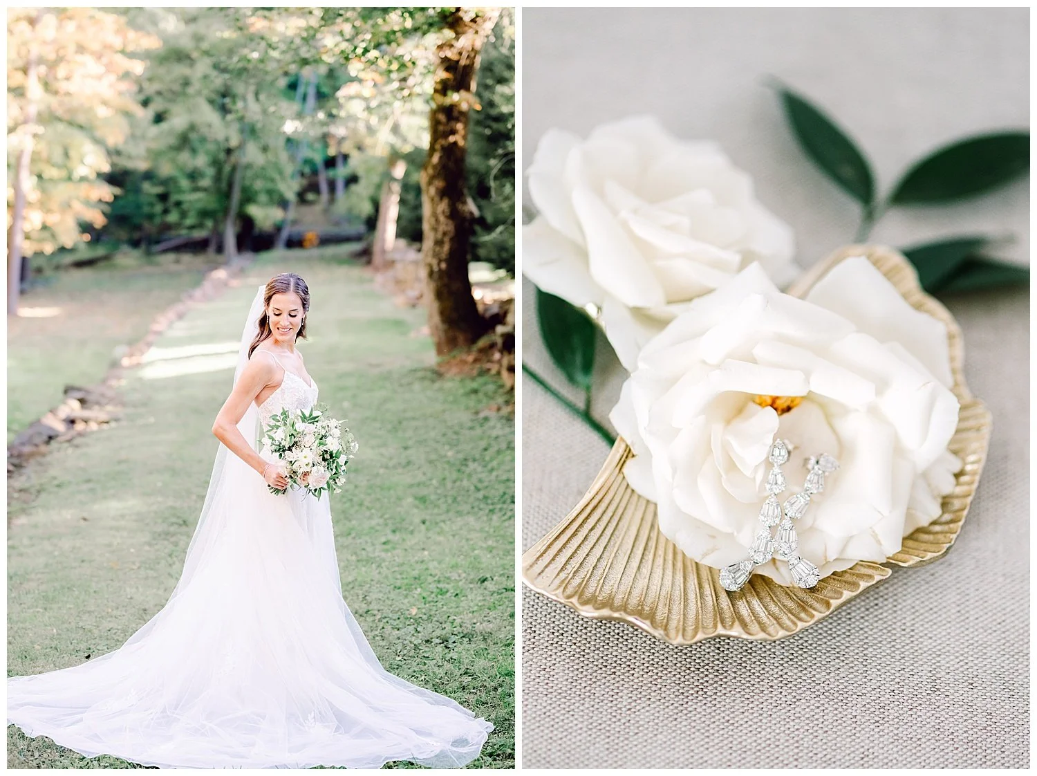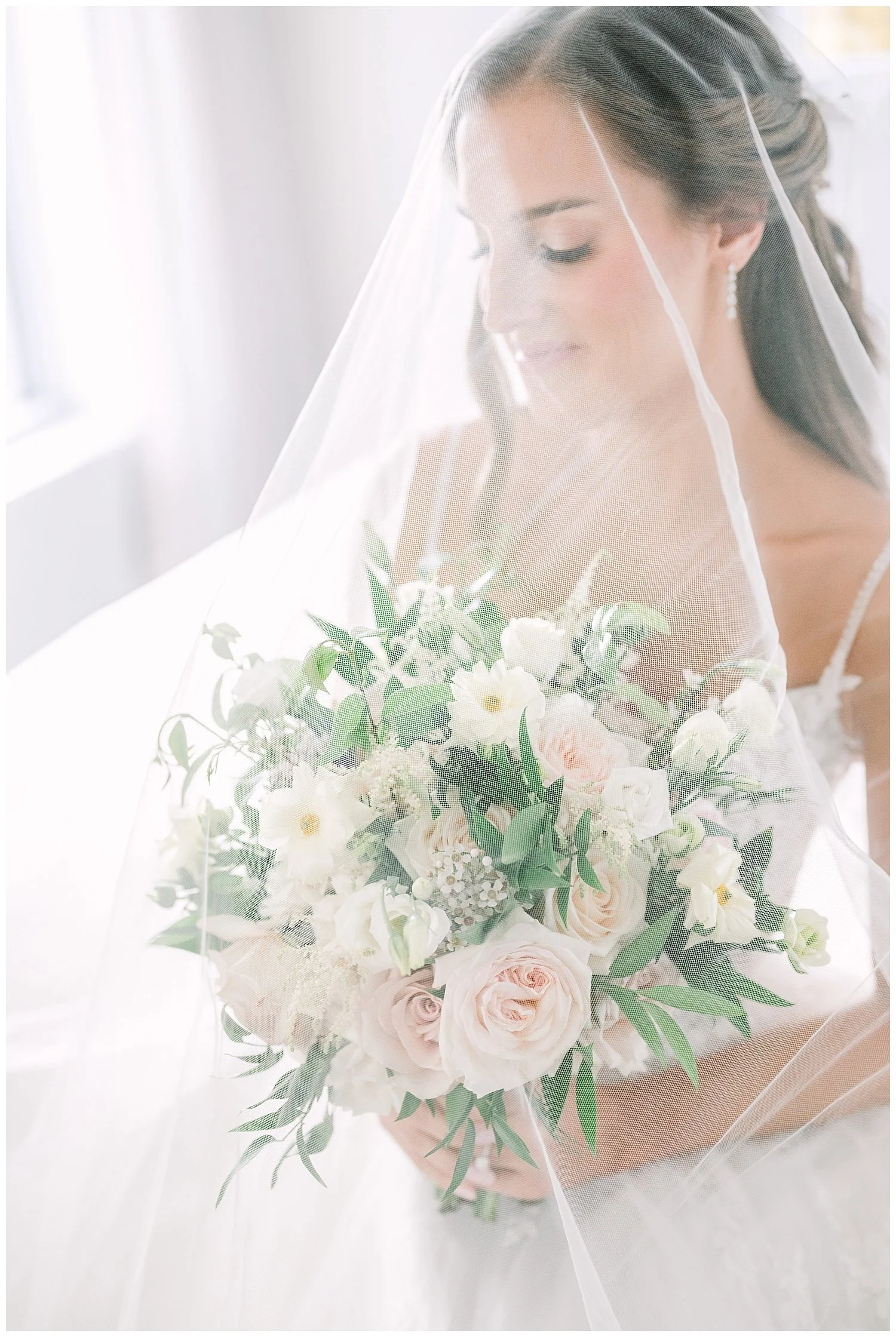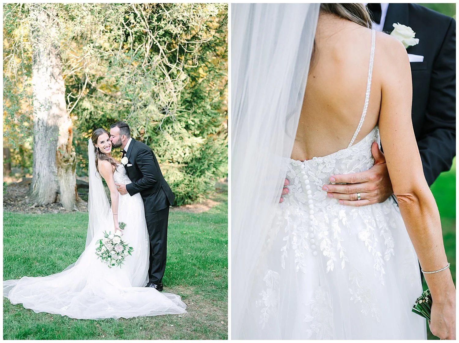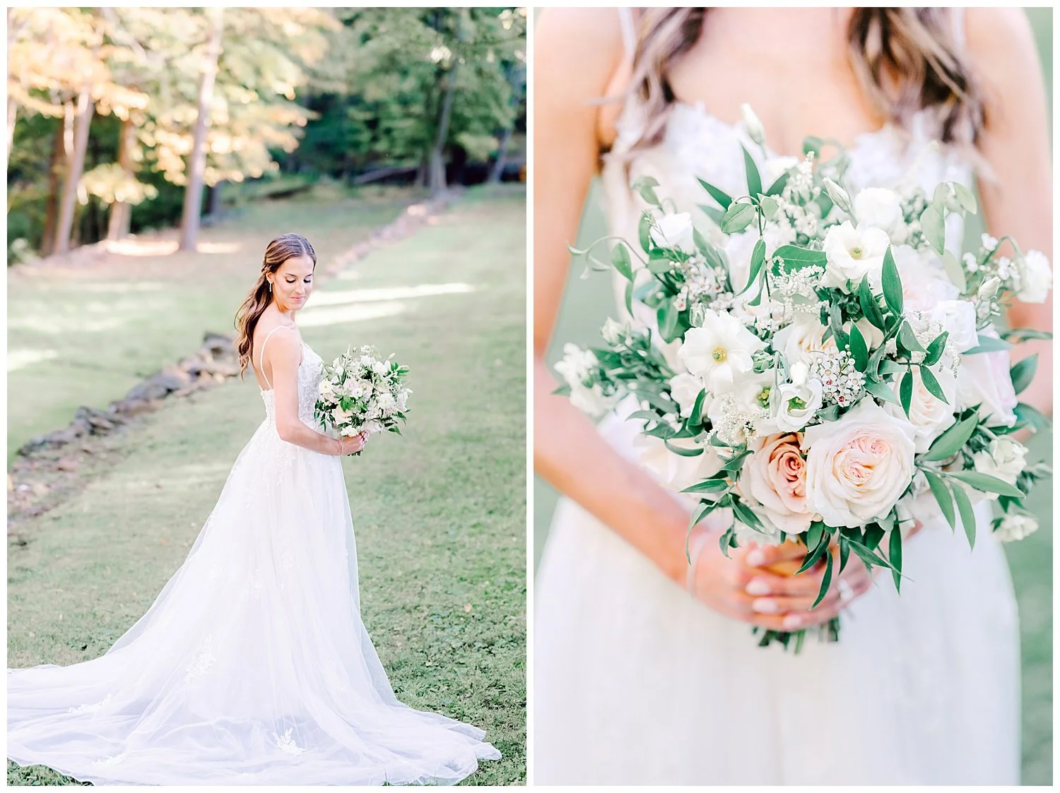 Chelsea and Jason envisioned an elegant yet cozy atmosphere, and their choice of a classic sage green and gold color palette brought their vision to life. Florals by A Touch of Elegance featured some pretty white roses and delicate greenery, while candlelit tables added a romantic glow to the reception space.
