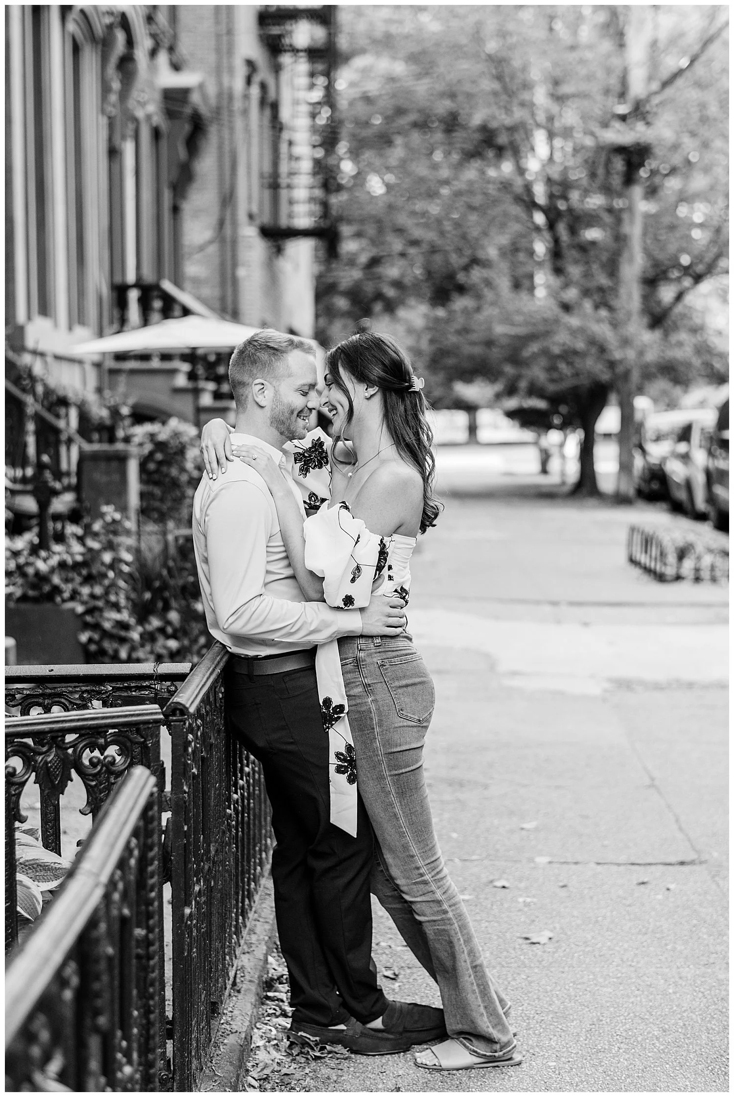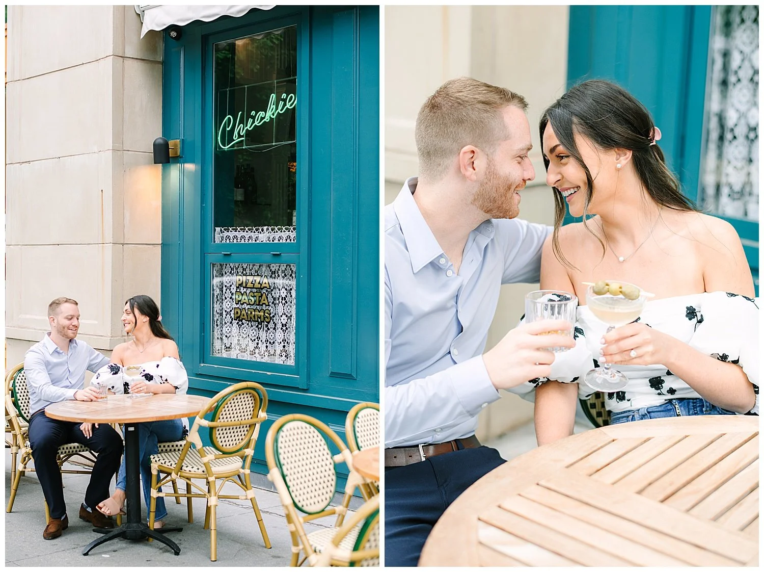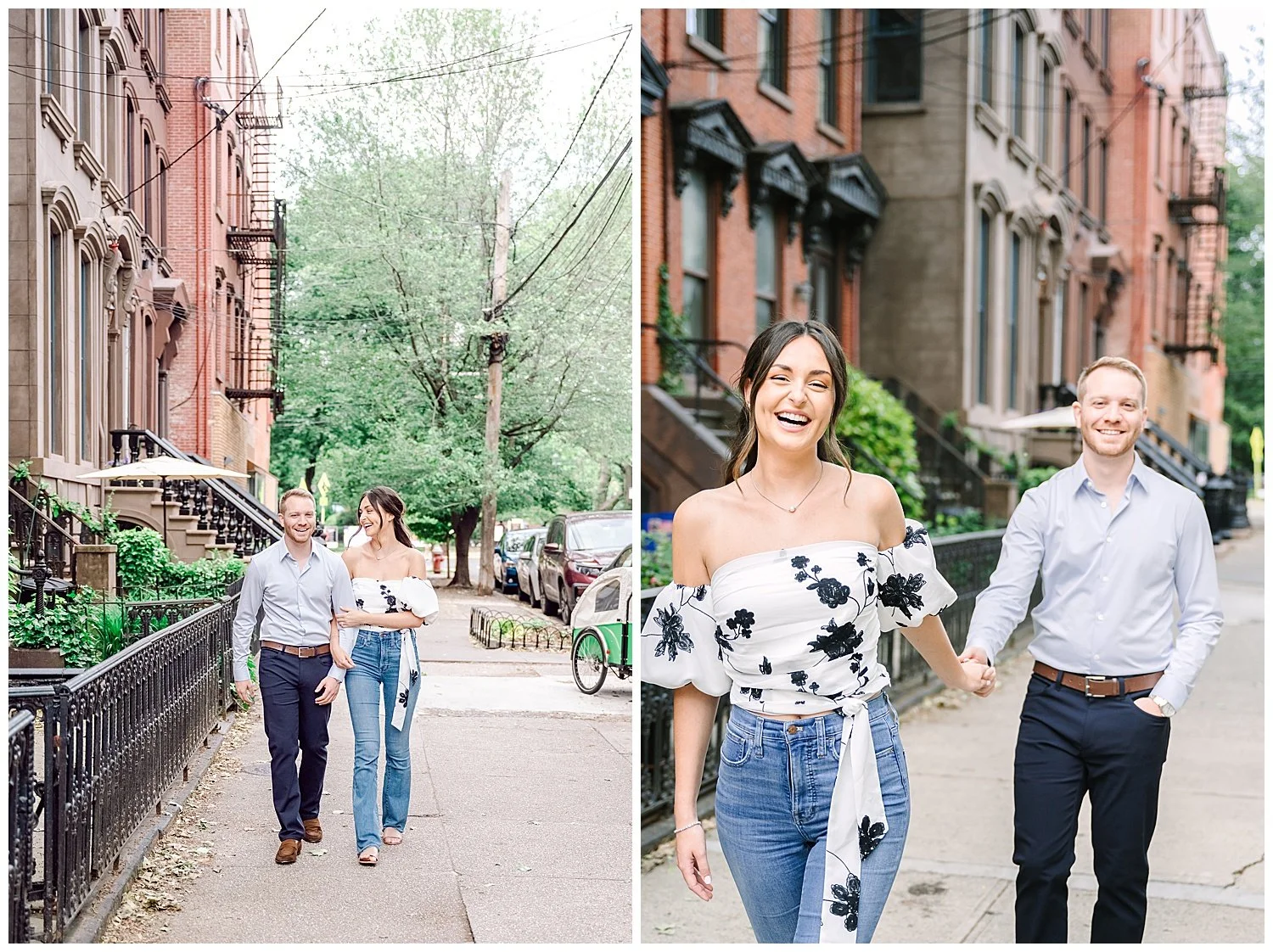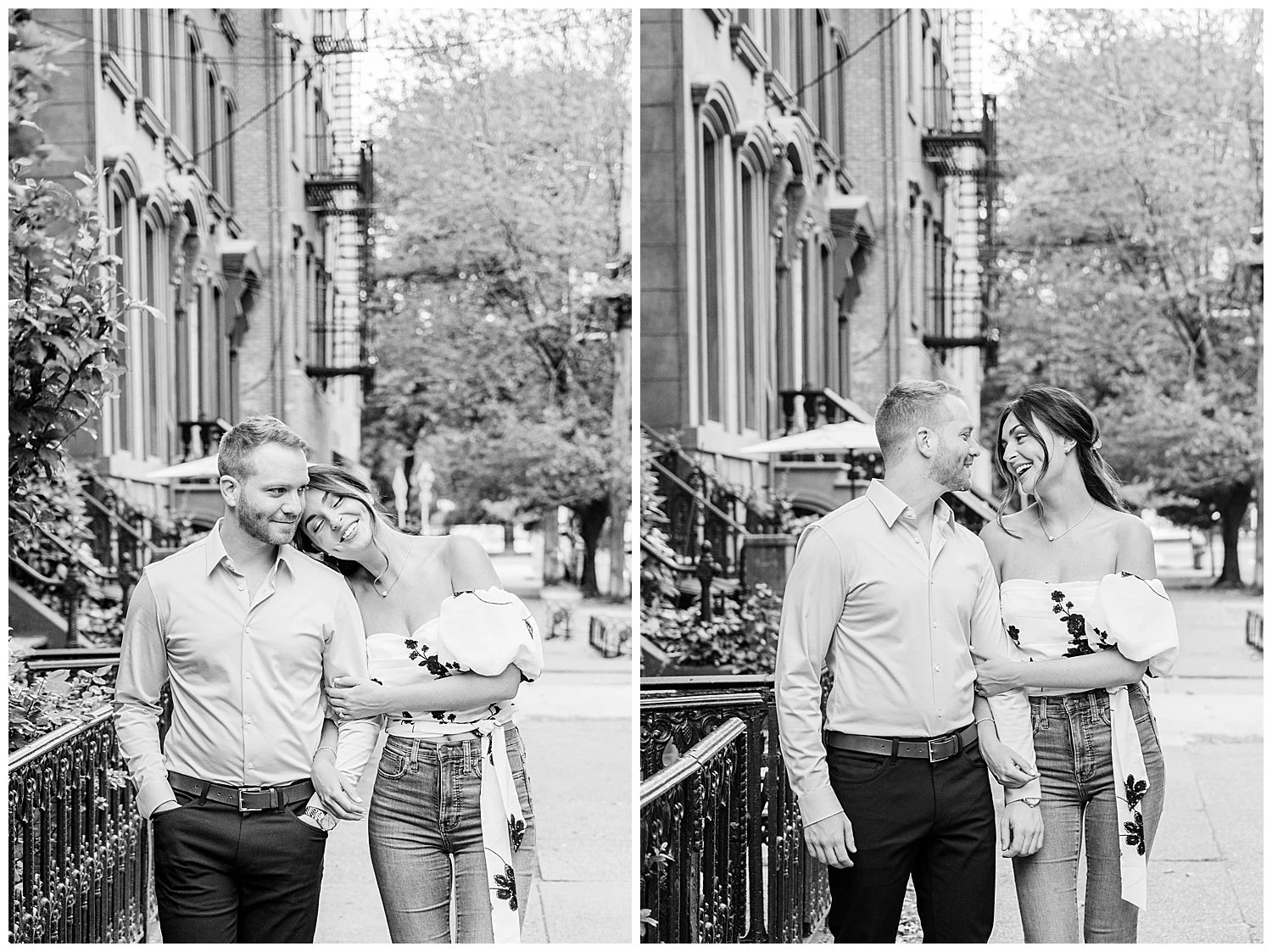 When I first discussed their engagement session, they immediately knew it had to be in Jersey City, enjoying their favorite places to be. We started off at Chickies which is this adorable restaurant and bar. We then found multiple locations to enjoy just walking and roaming around Jersey City. We of course had to go back to where the proposal happened. We had perfect weather and they were all smiles and made it so easy for me to capture their love!