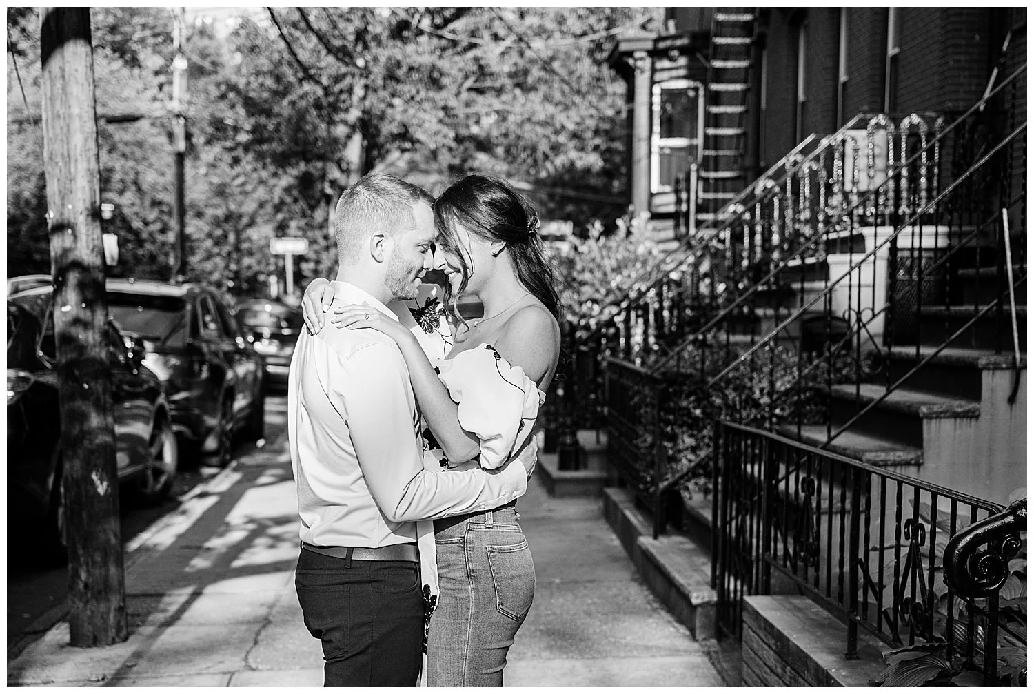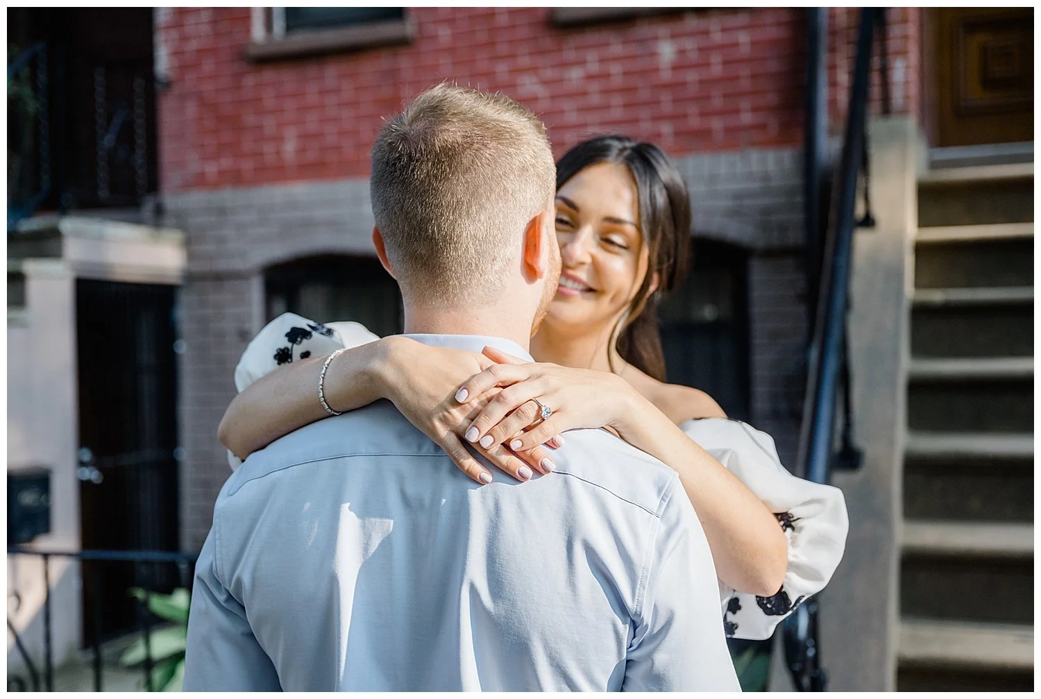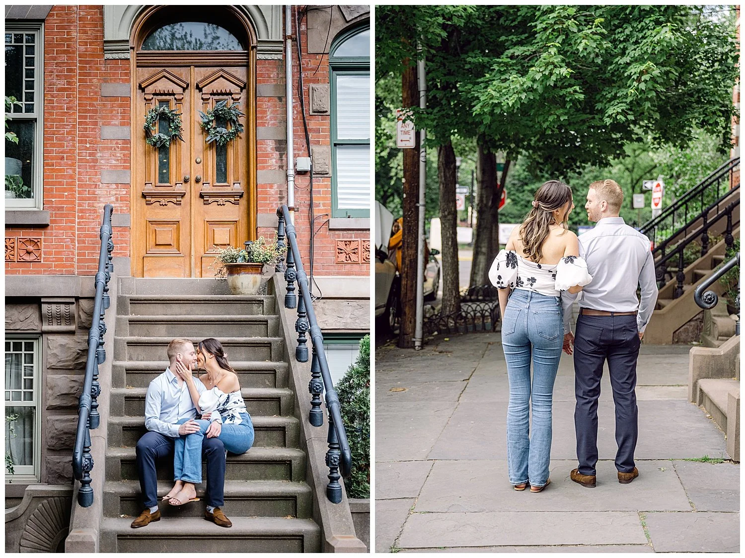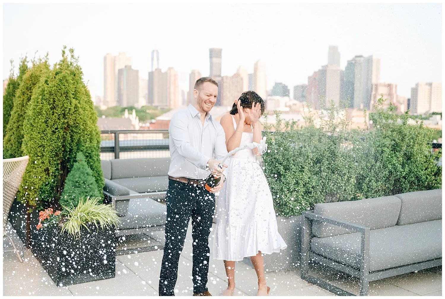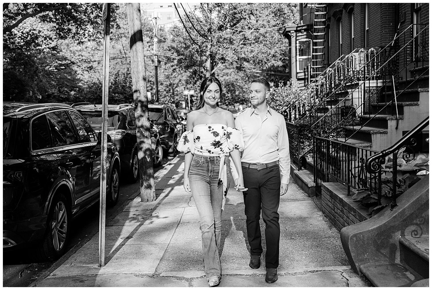 When I first discussed their engagement session, they immediately knew it had to be in Jersey City, enjoying their favorite places to be. We started off at Chickies which is this adorable restaurant and bar. We then found multiple locations to enjoy just walking and roaming around Jersey City. We of course had to go back to where the proposal happened. We had perfect weather and they were all smiles and made it so easy for me to capture their love!