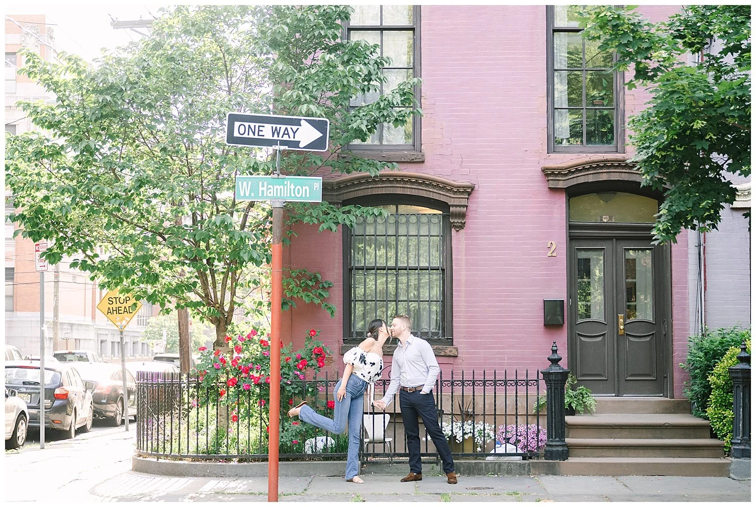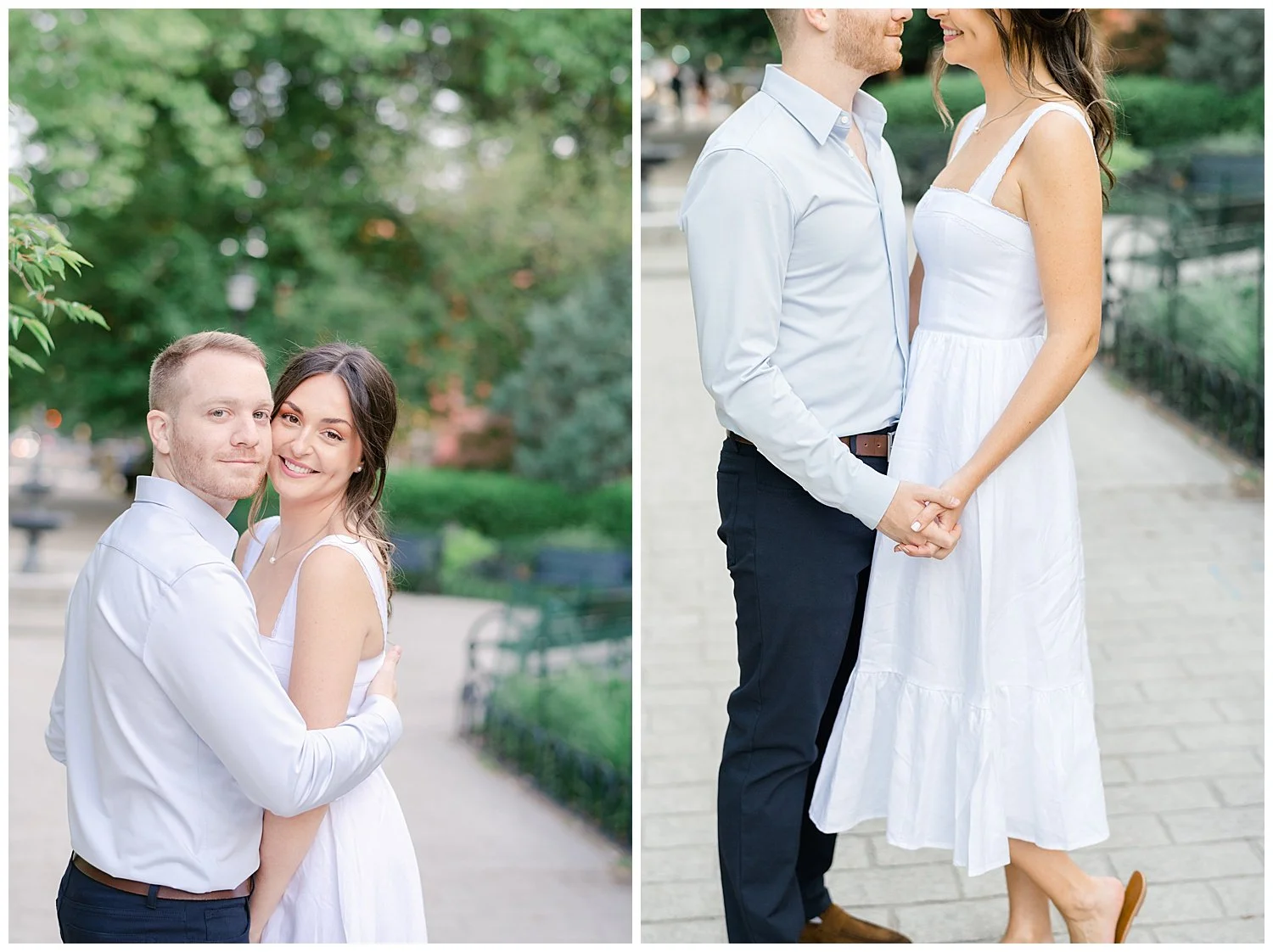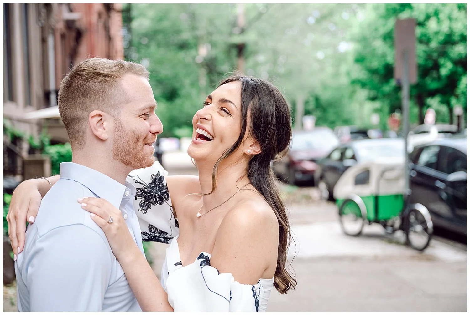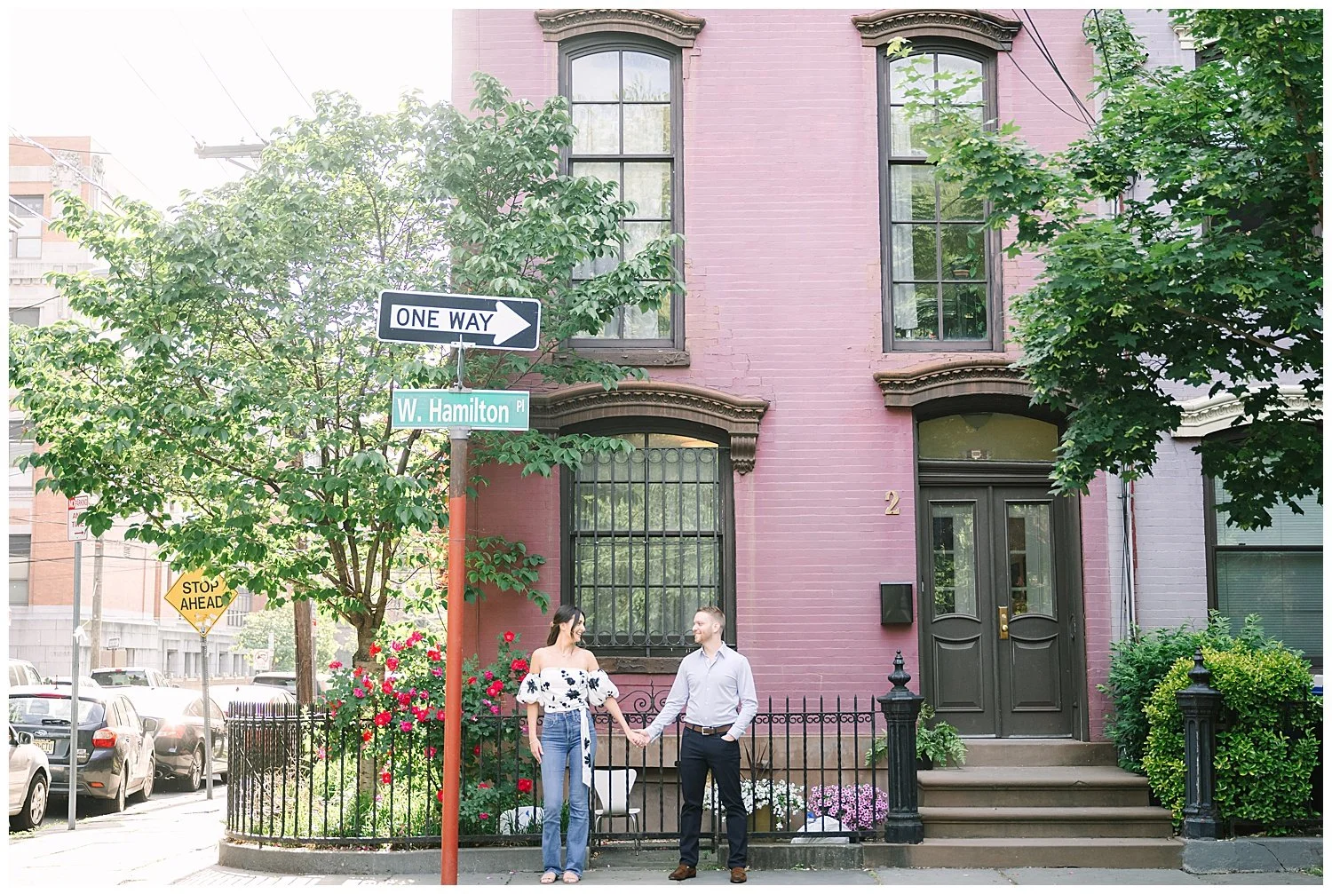When I first discussed their engagement session, they immediately knew it had to be in Jersey City, enjoying their favorite places to be. We started off at Chickies which is this adorable restaurant and bar. We then found multiple locations to enjoy just walking and roaming around Jersey City. We of course had to go back to where the proposal happened. We had perfect weather and they were all smiles and made it so easy for me to capture their love!