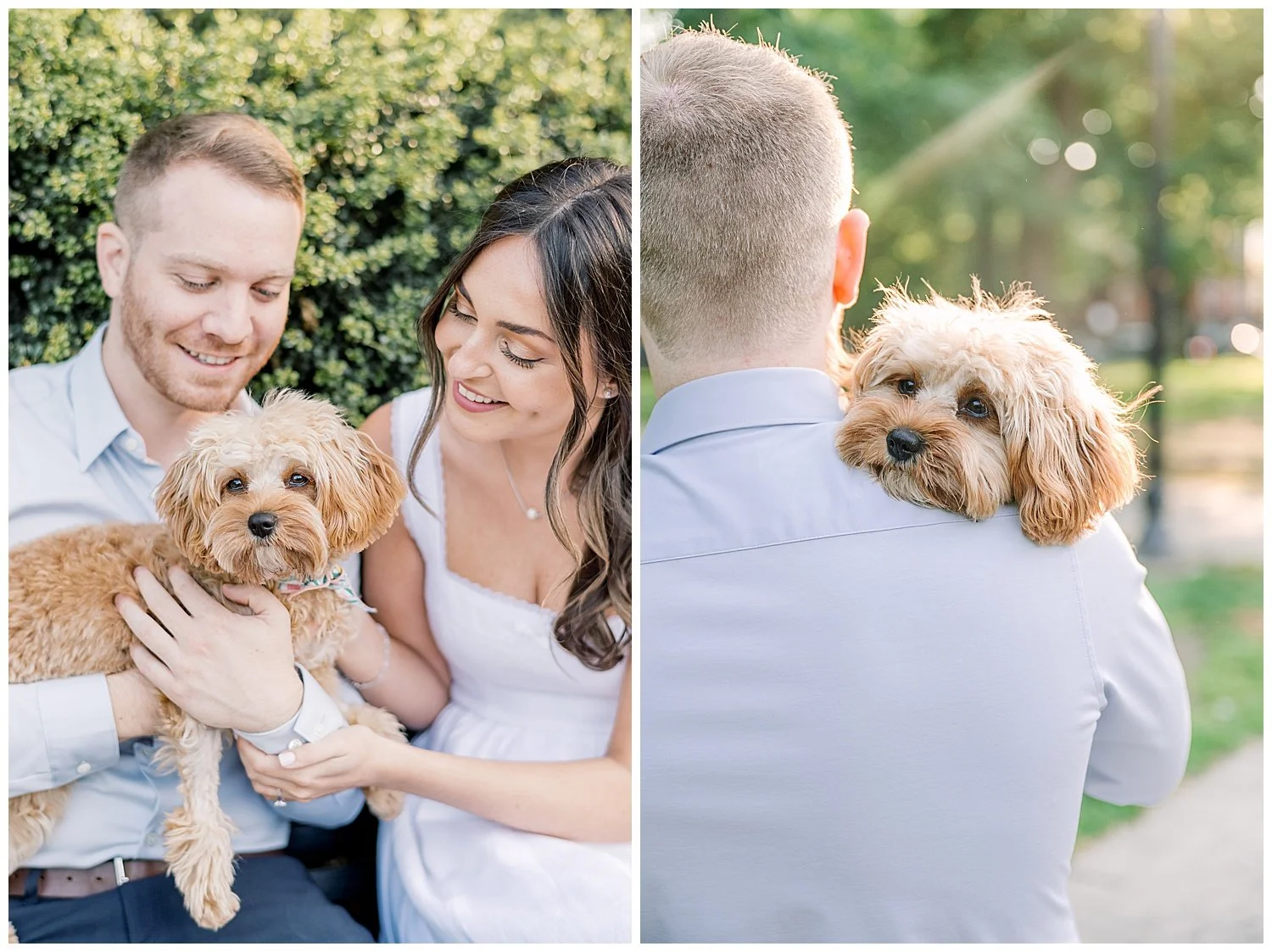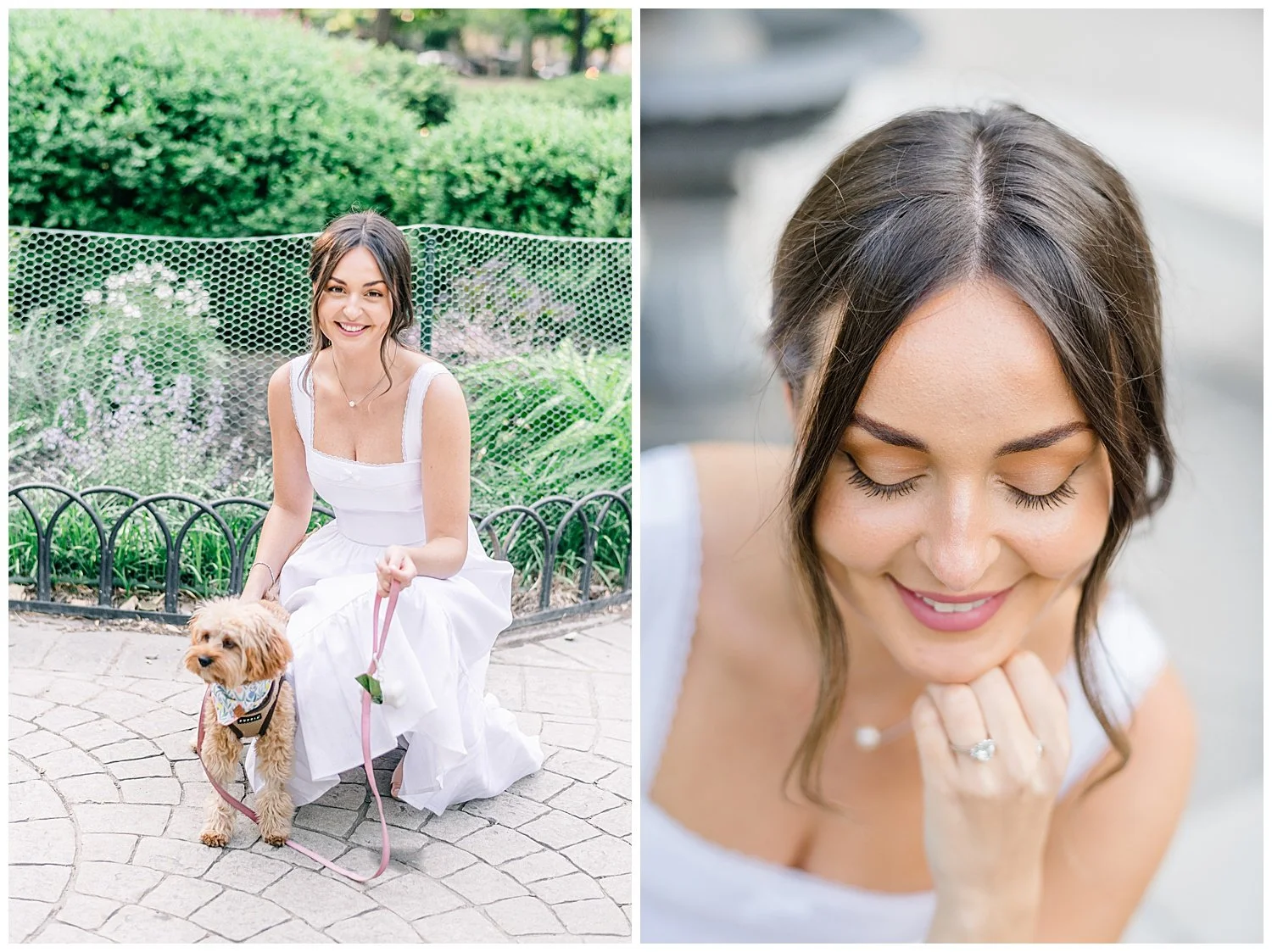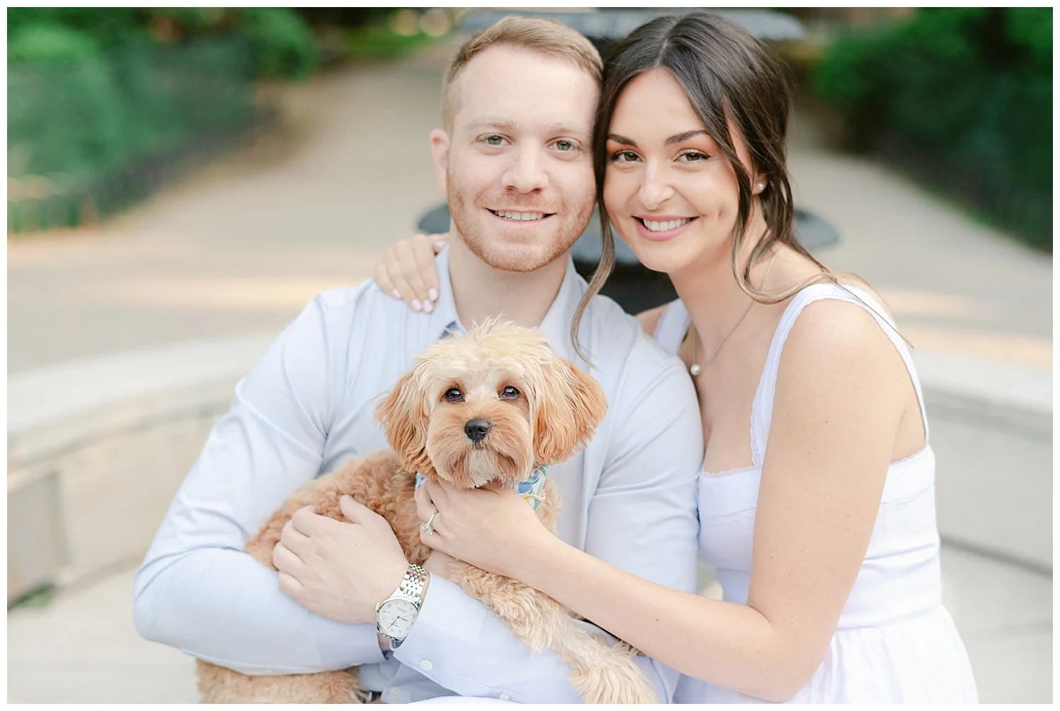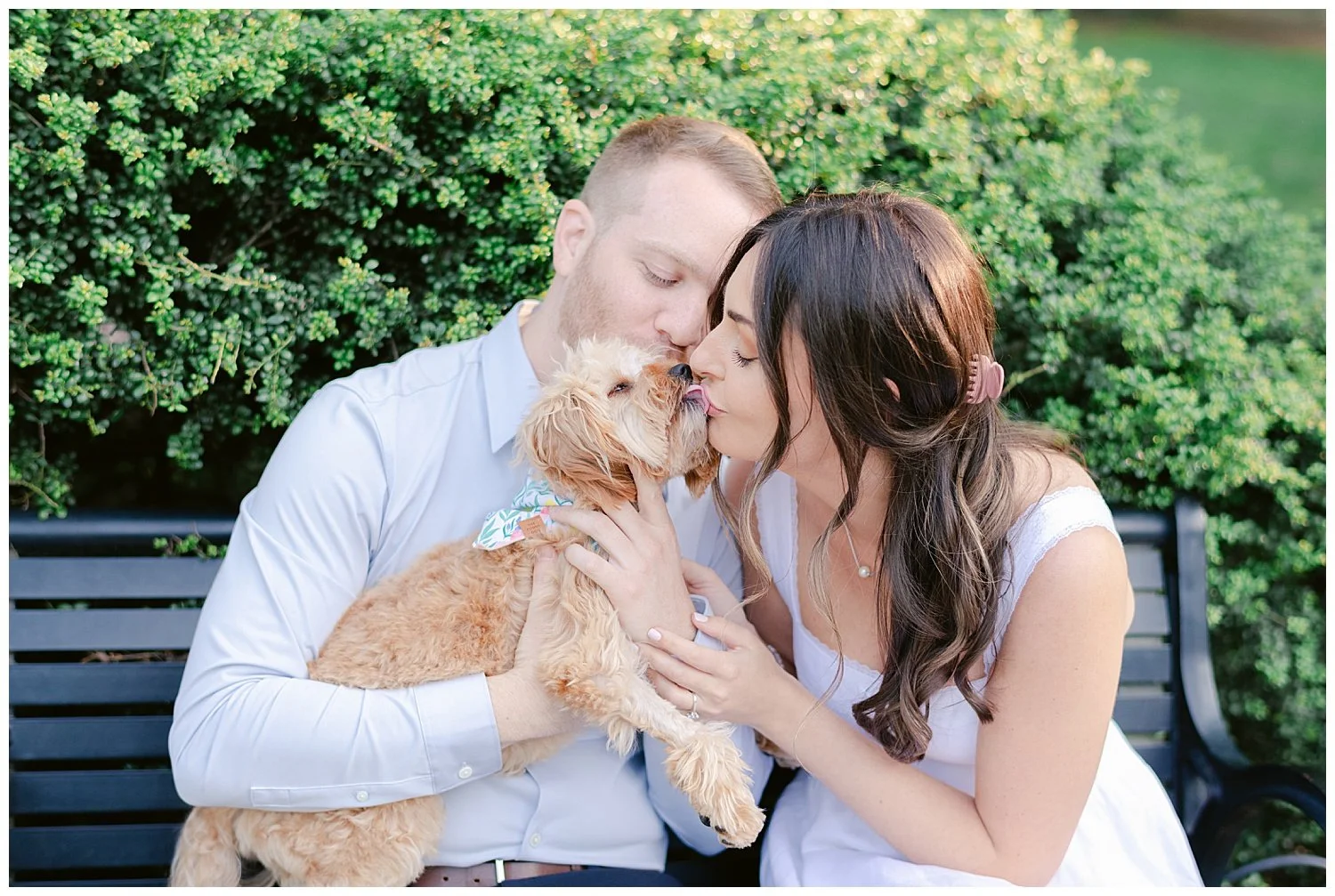 Their favorite little fur baby named Daisy takes up much of their love and time. They love taking Daisy over to Hamilton Park for long walks and just enjoying sitting on the park bench cuddling. On this particular day, Ross decided to take Carina to their favorite bench and that is where he asked Carina to spend the rest of her life with him and Daisy of course! Talk about a total surprise proposal!