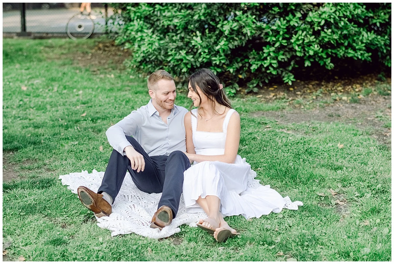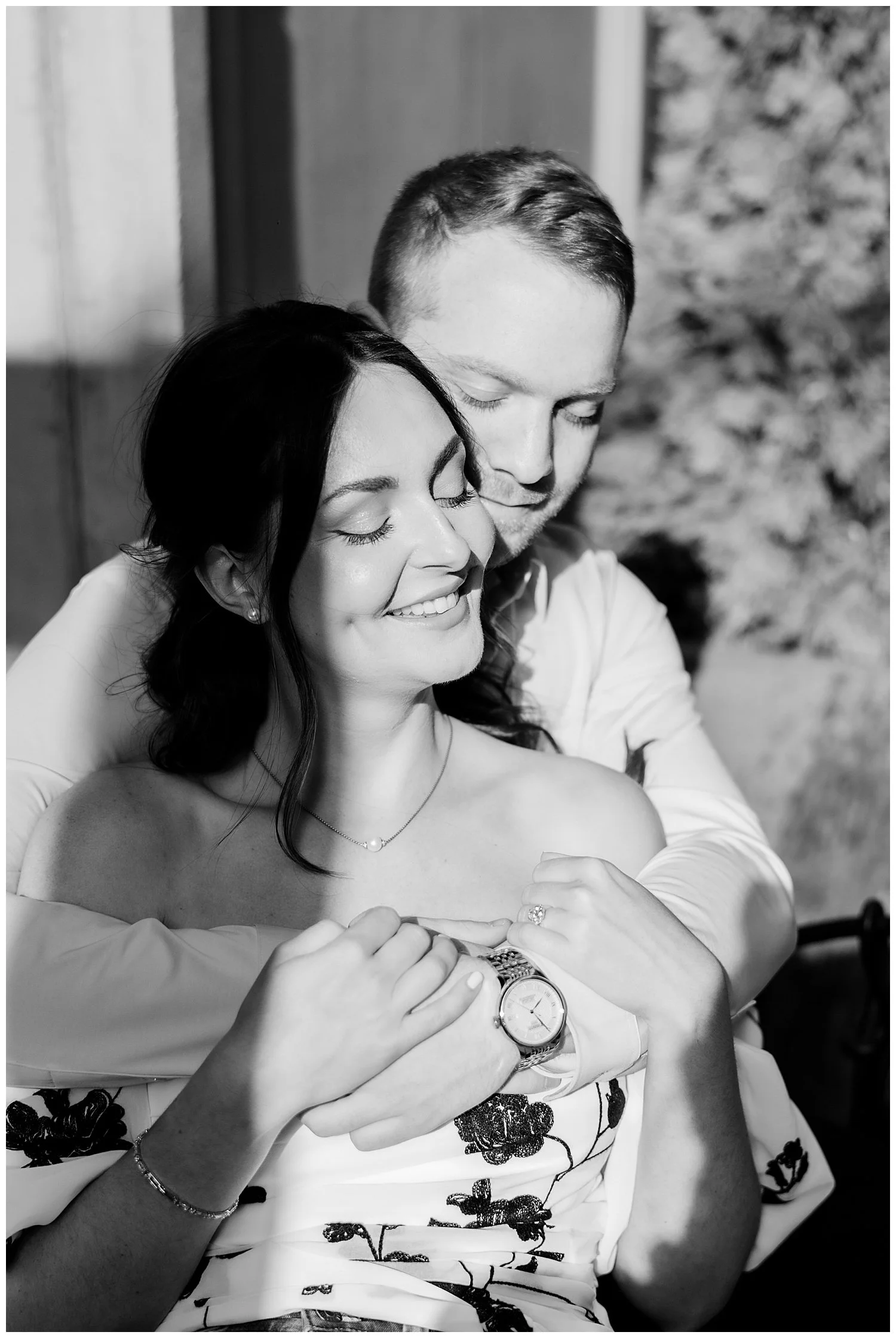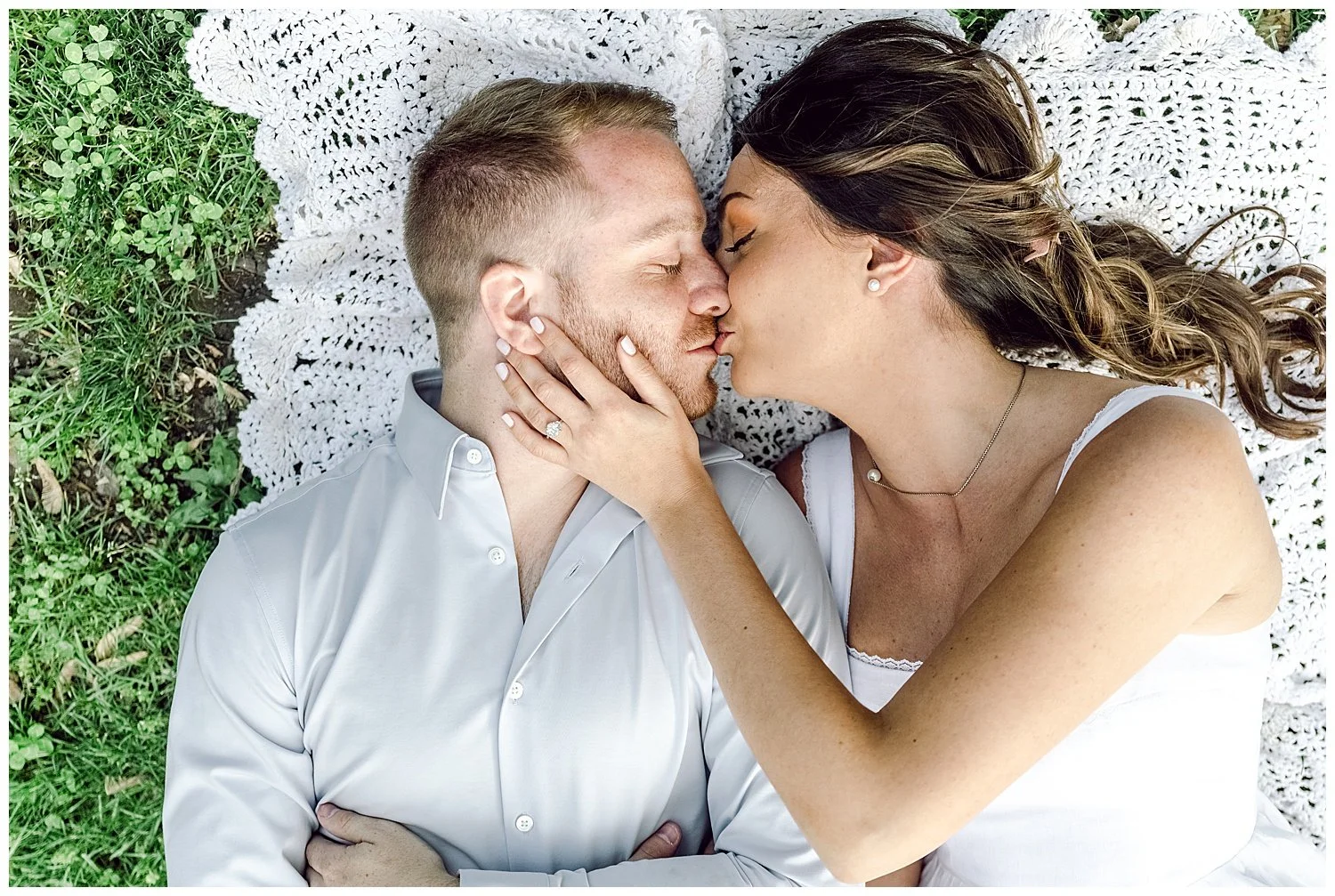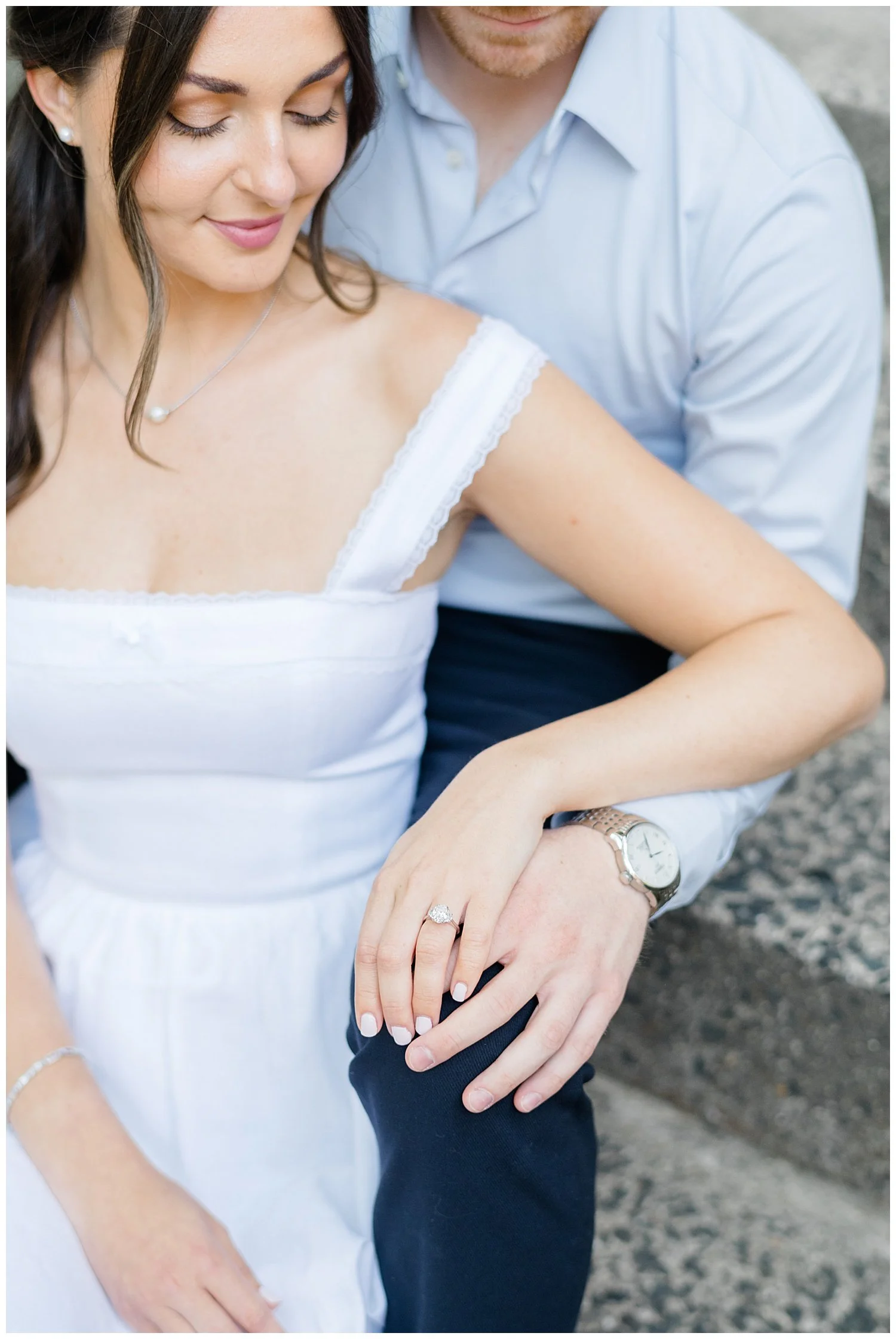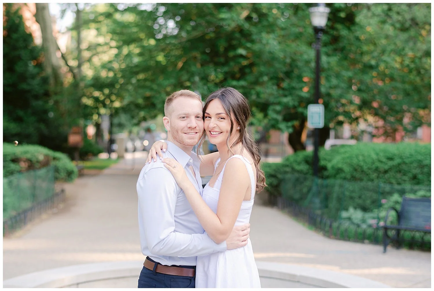 Their favorite little fur baby named Daisy takes up much of their love and time. They love taking Daisy over to Hamilton Park for long walks and just enjoying sitting on the park bench cuddling. On this particular day, Ross decided to take Carina to their favorite bench and that is where he asked Carina to spend the rest of her life with him and Daisy of course! Talk about a total surprise proposal!