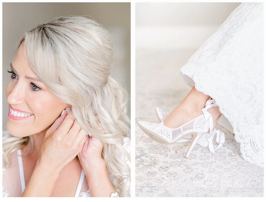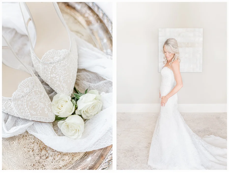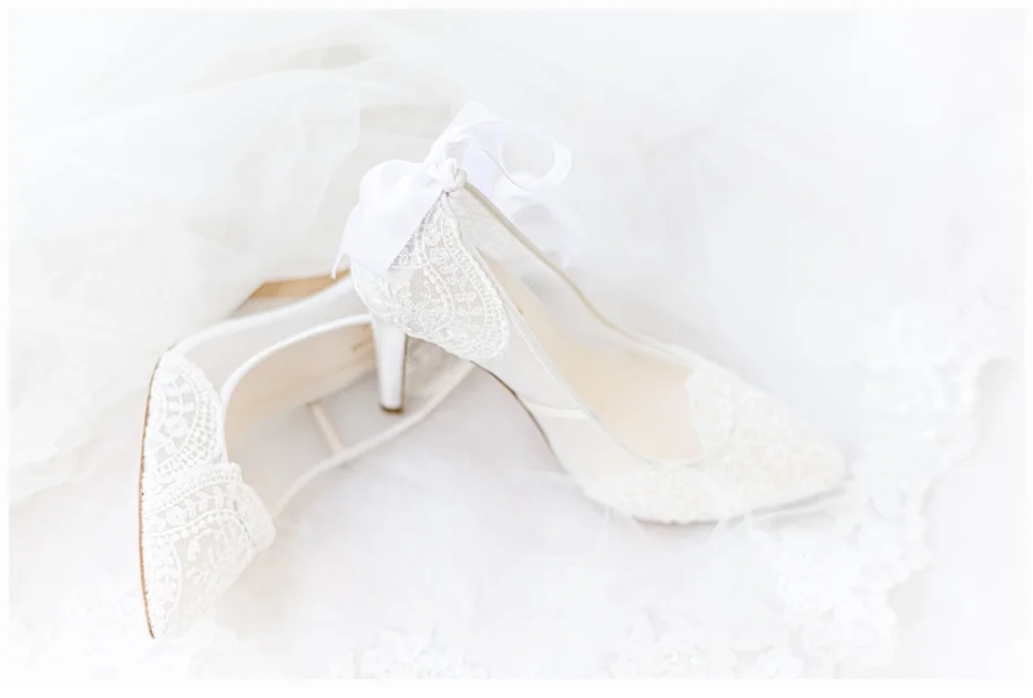 Ryan chose a gorgeous wedding gown made by Venus Bridal and then she actually had it custom made to fit her, it was so beautiful! She chose my favorite shoes, Bella Belle Shoes and they had the sweetest bows on the back of the shoes, made of beautiful lace.