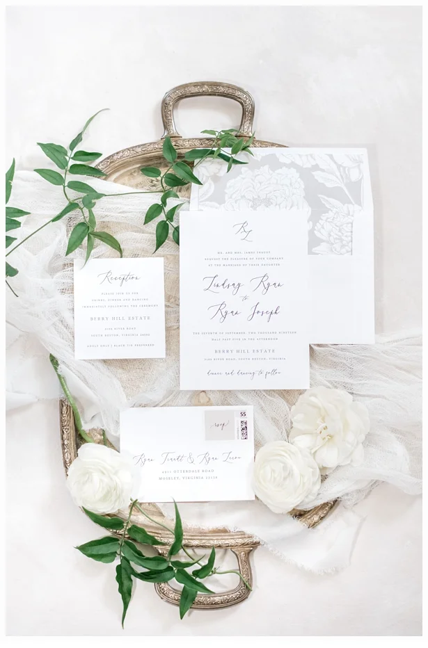 Photographer: deborahannphotography Venue: Berry Hill Resort Floral Designer: AmandadayRose Bridal Makeup: Silver Ceiling Beauty Bridal Hair: Adrienne Adams (Haven Hair) Videographer: White Tree Wedding Bridesmaids Dresses: Amsale Bridal Gown: Venus Wedding Cake: Jaes Cakess Wedding Shoes: Bella Belle Shoes Wedding Coordinator: CCS Events VA Invitation Suite: Shine Wedding Invitations Jewelry: Fanajewelry Men’s Suits: Men’s Warehouse