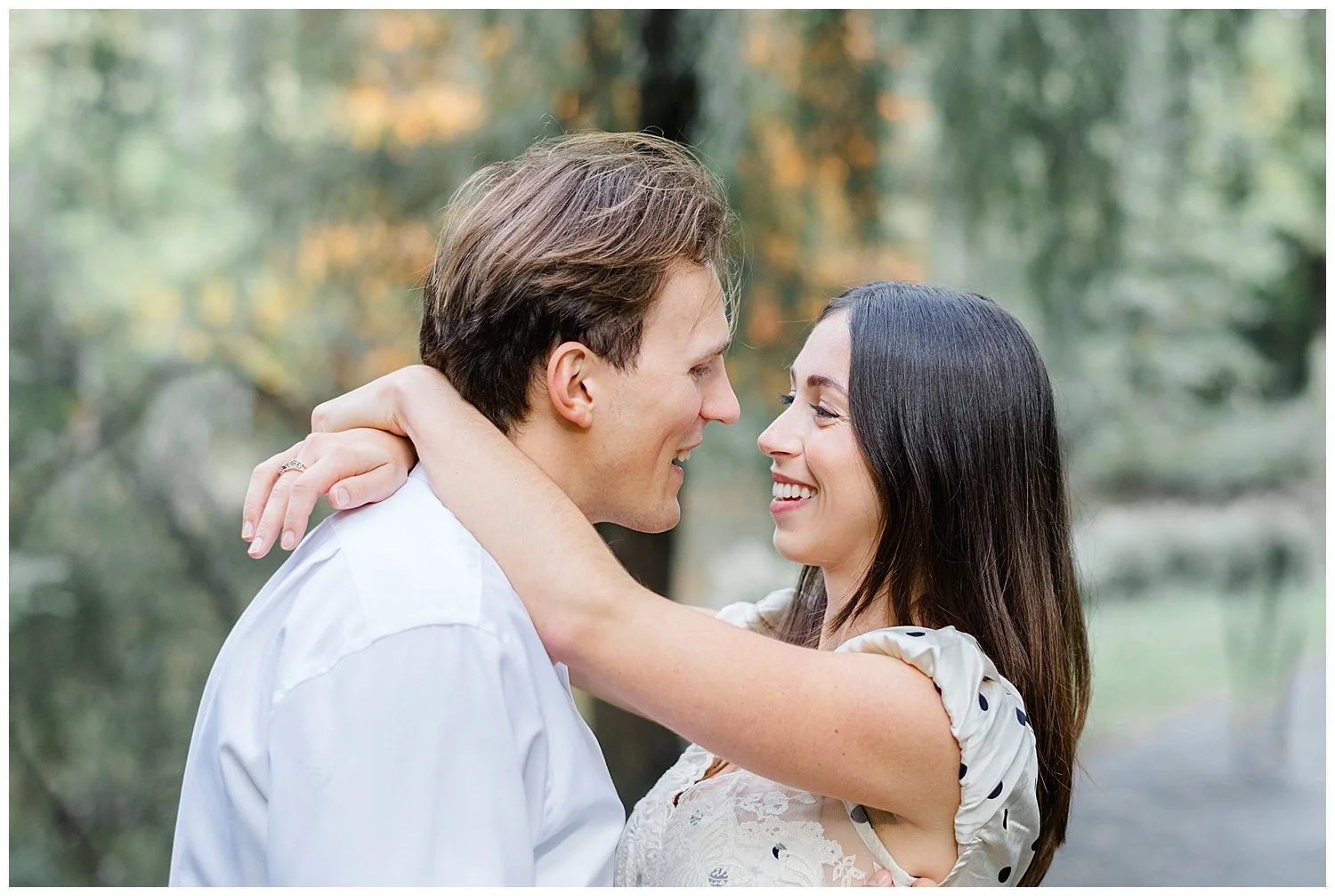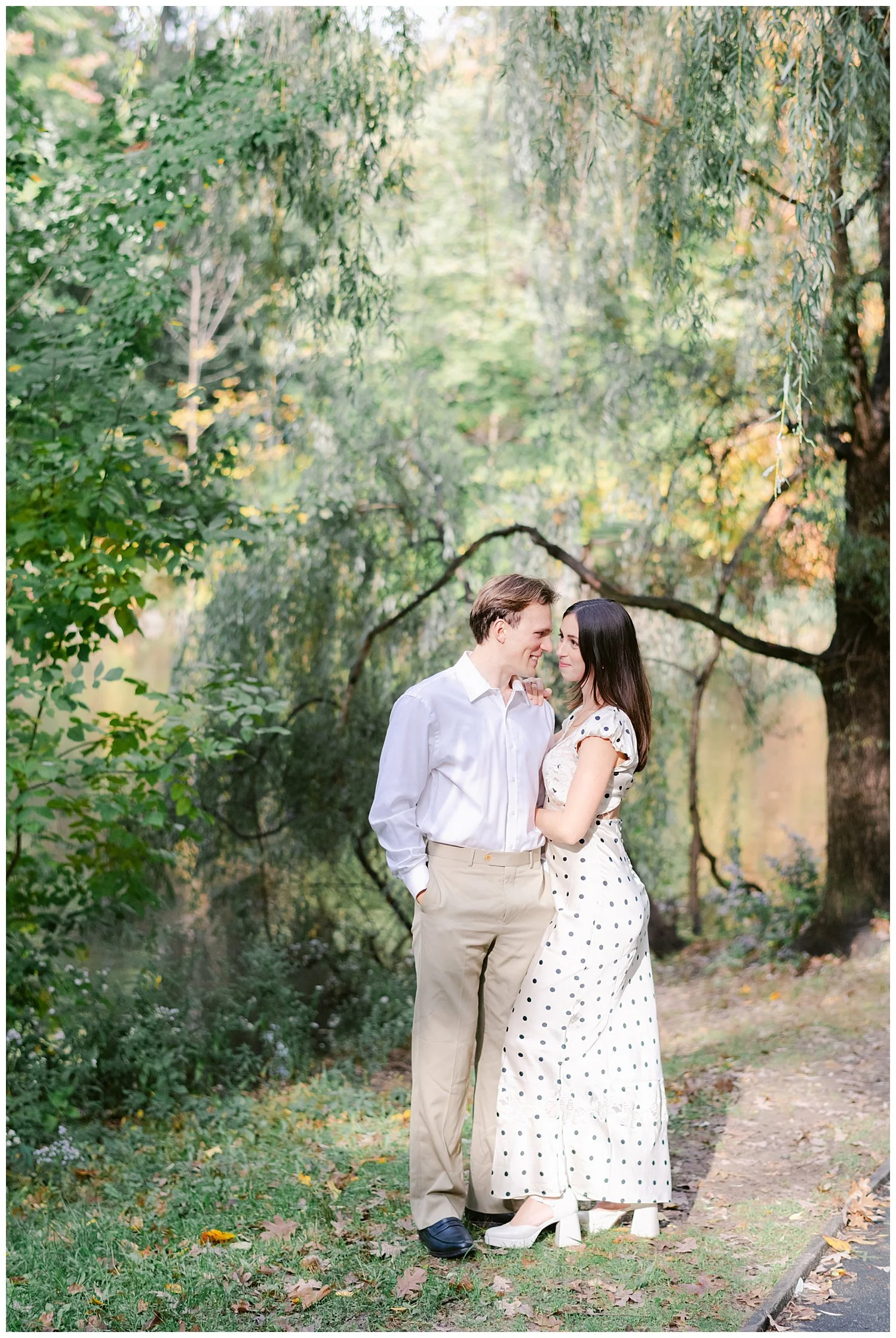 During their engagement session, Lizzie and Mike explored the park hand in hand, soaking up the enchanting atmosphere and creating new memories together. They wandered along the tree-lined paths, laughing and embracing as the autumn leaves fell around them. The park became their own private oasis, providing the perfect backdrop for their love story.