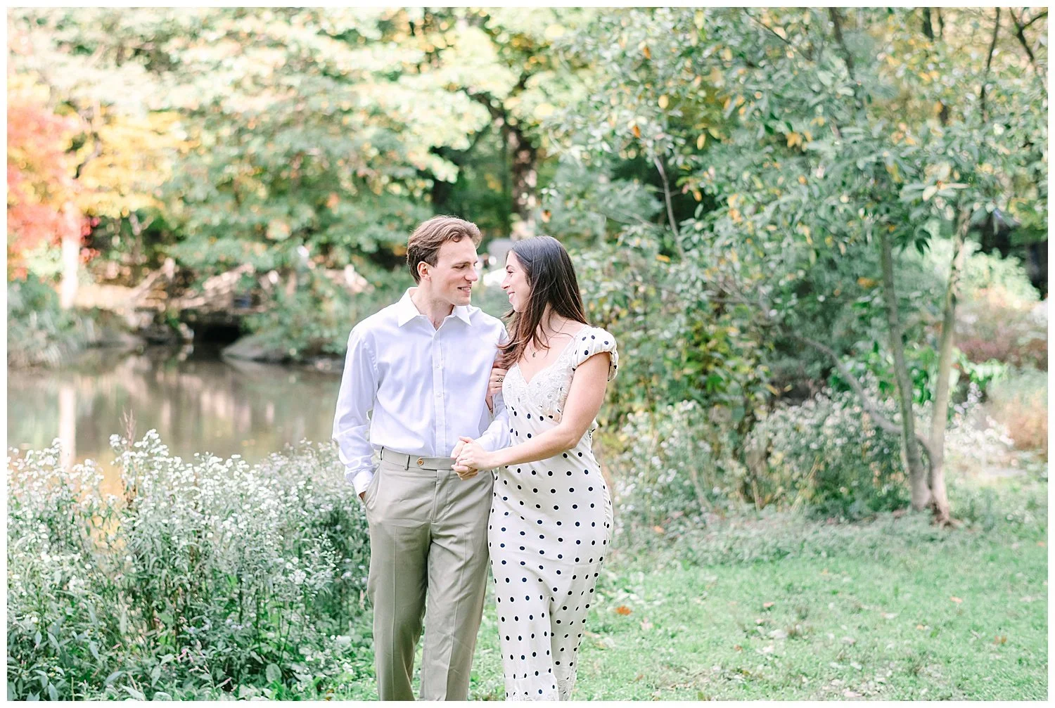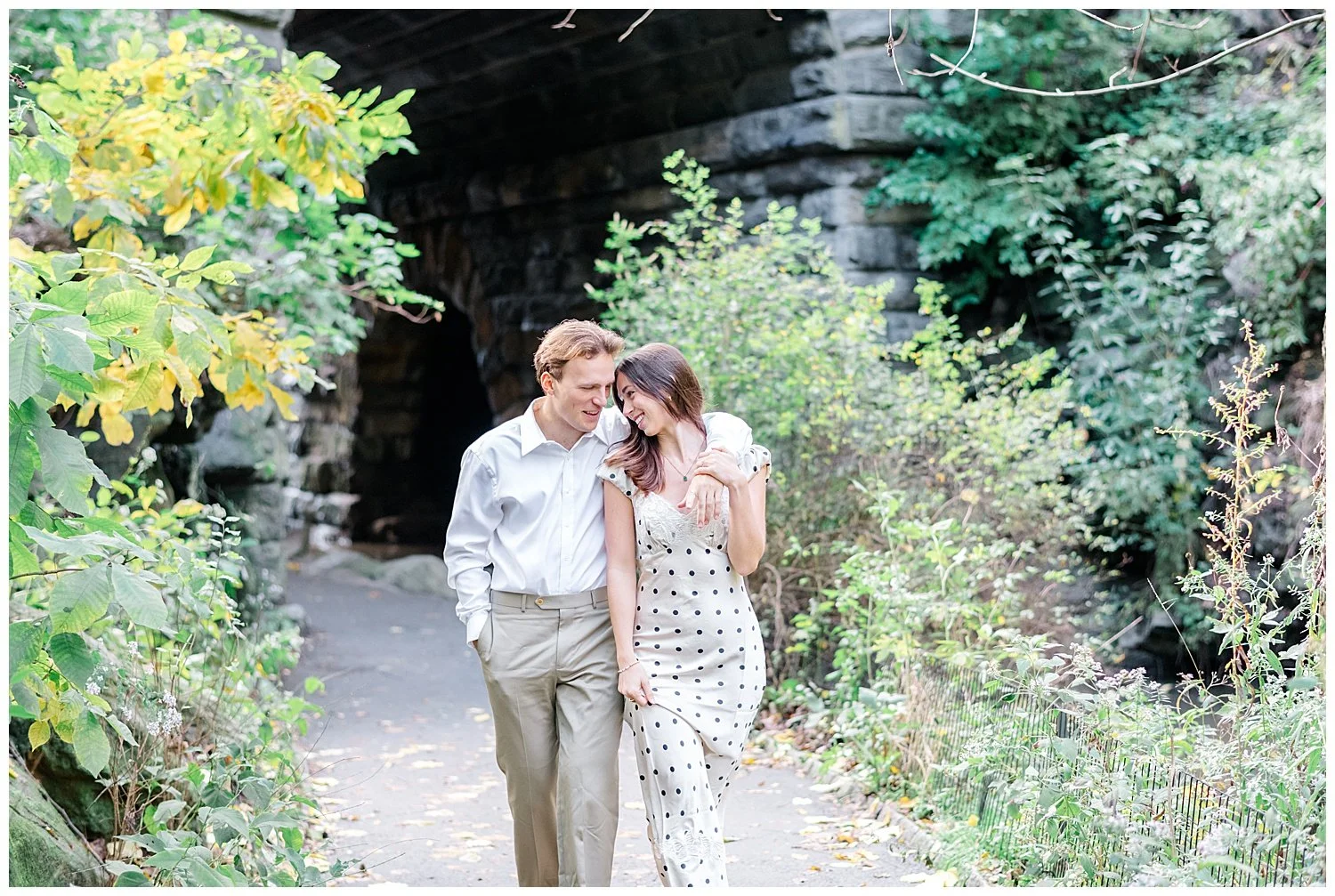 During their session in Central Park, Lizzie and Mike had a blast exploring the park and creating unforgettable memories. They started off by strolling hand in hand along the iconic bridges, with the colorful leaves falling all around them. I loved capturing their joy and love for each other as they laughed and embraced in front of the stunning autumn backdrop.
