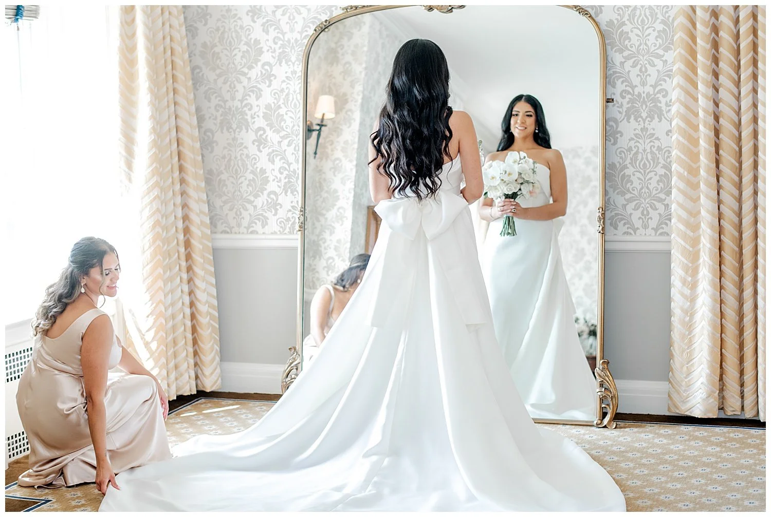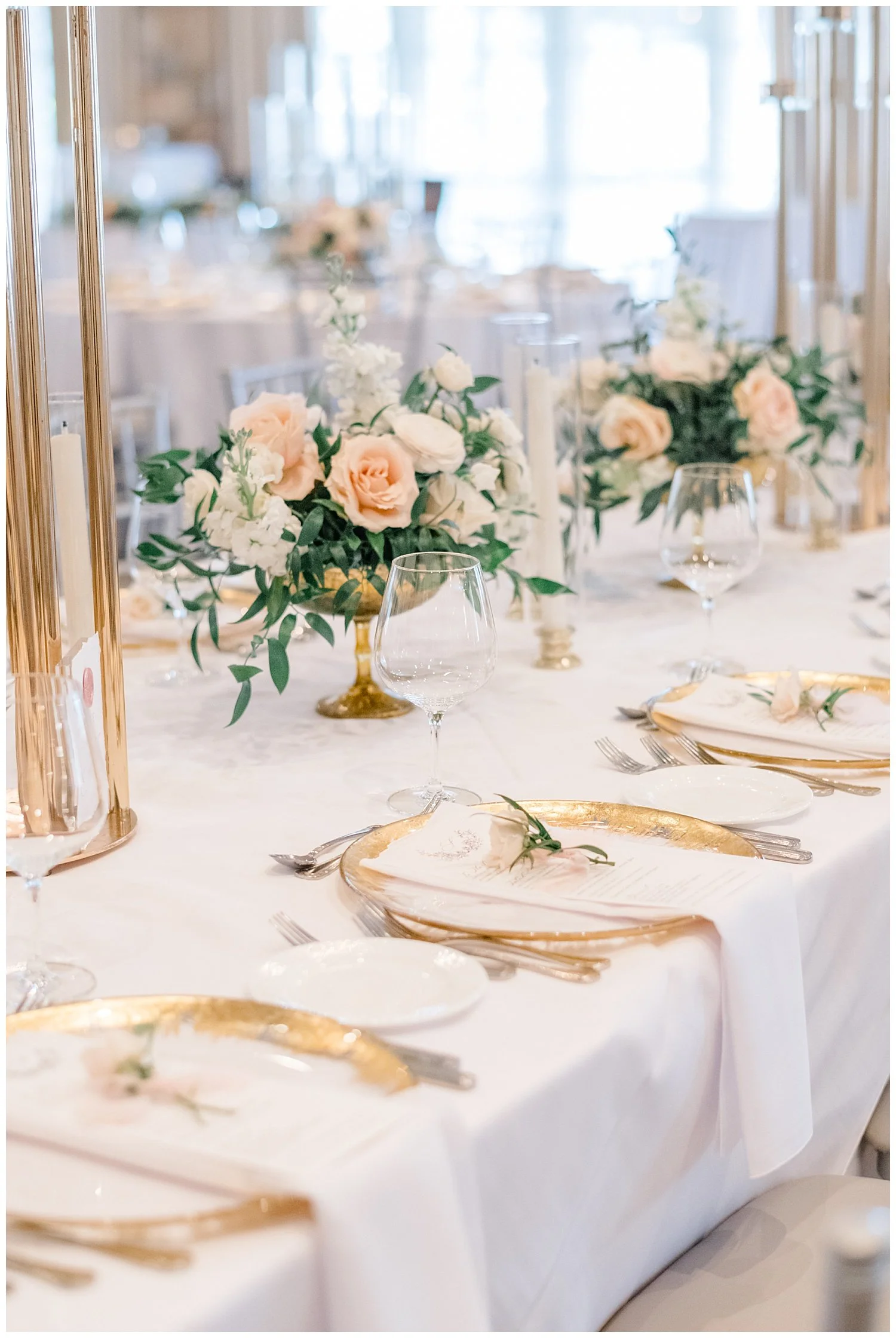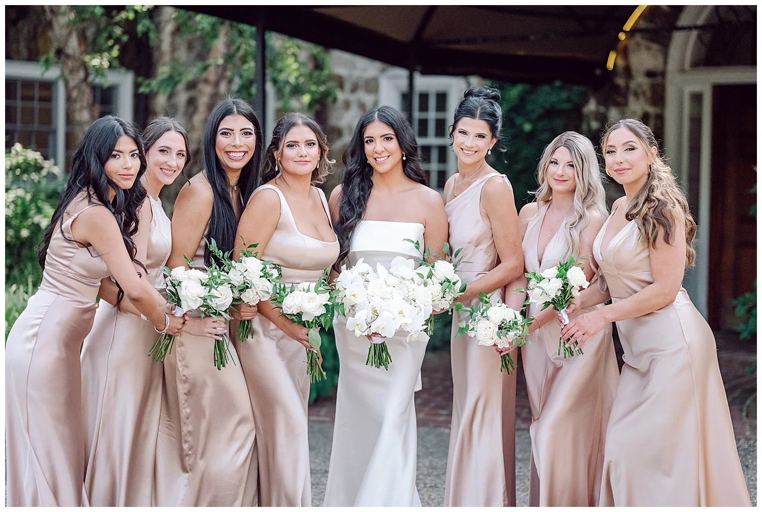 Luciana and Nick started their day in the bridal suite and groom suite together with their entire bridal party! The party started early on and the entire day was filled with celebration! Luciana and Nick wanted a wedding that was romantic and elegant. Peonies to Paint Chips totally brought Luciana’s vision to life mixing in many different types of white florals for her bouquet and then bringing in some pretty blush tones and greenery to create the most beautiful arch for their ceremony.