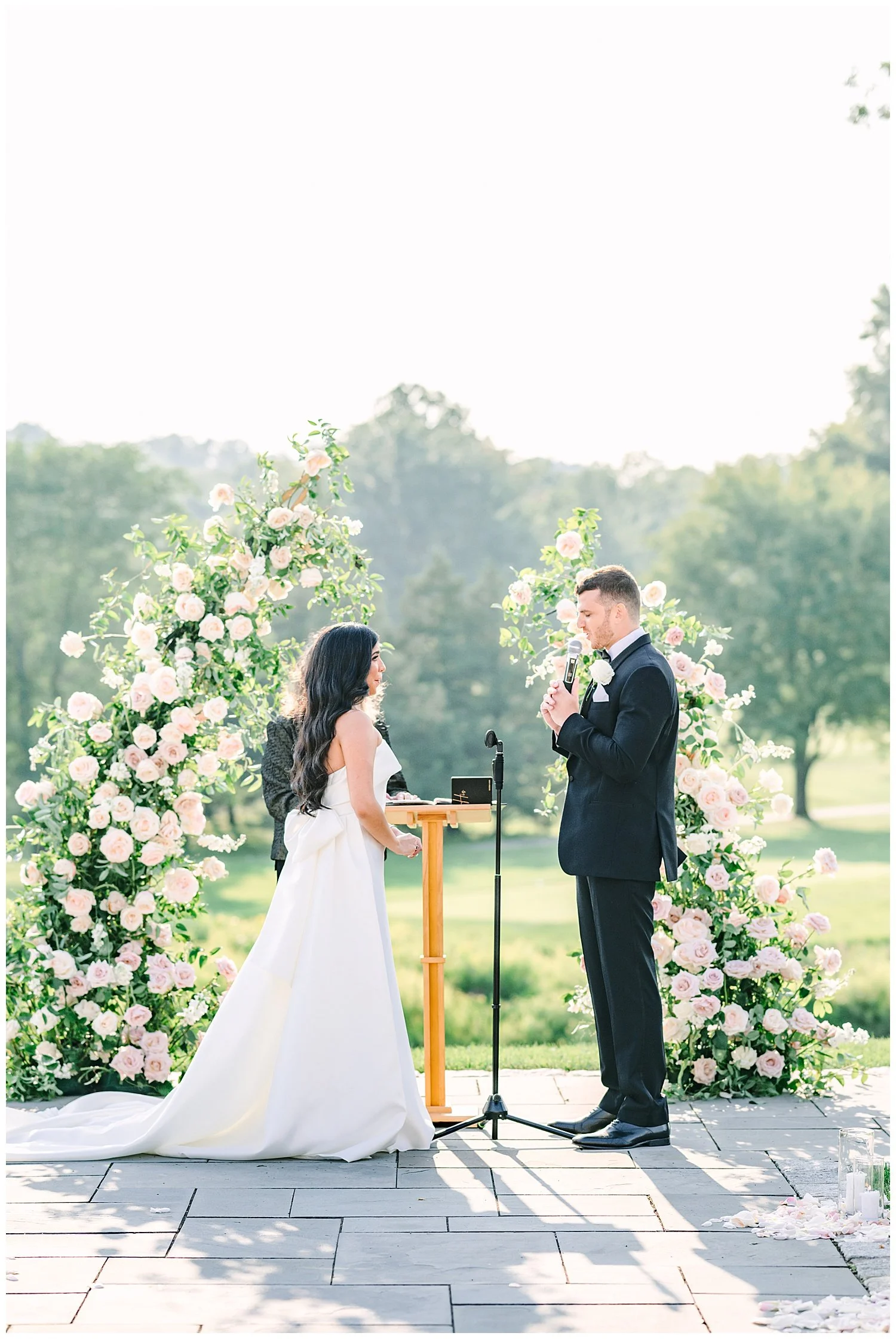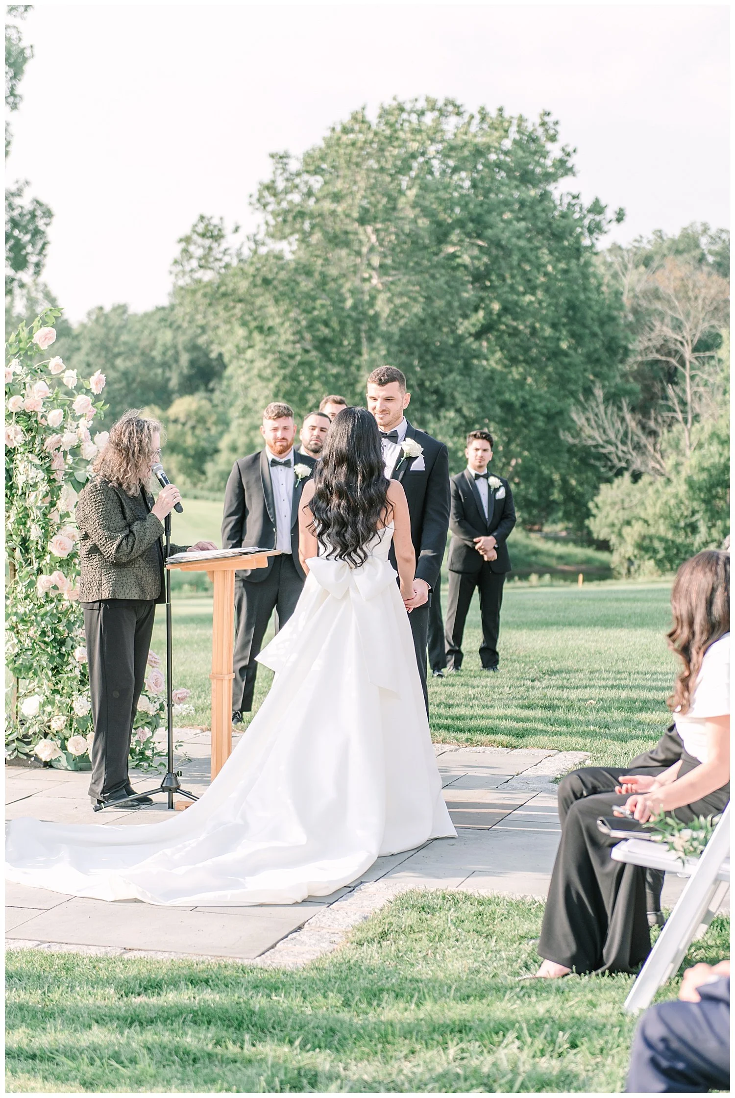They exchanged their wedding vows amist the beautiful rolling green hills just situated behind their ceremony space. After their ceremony, they enjoyed a beautiful cocktail hour and then onto to the festivities filling the evening with dancing and wonderful speeches. It was the perfect wedding!