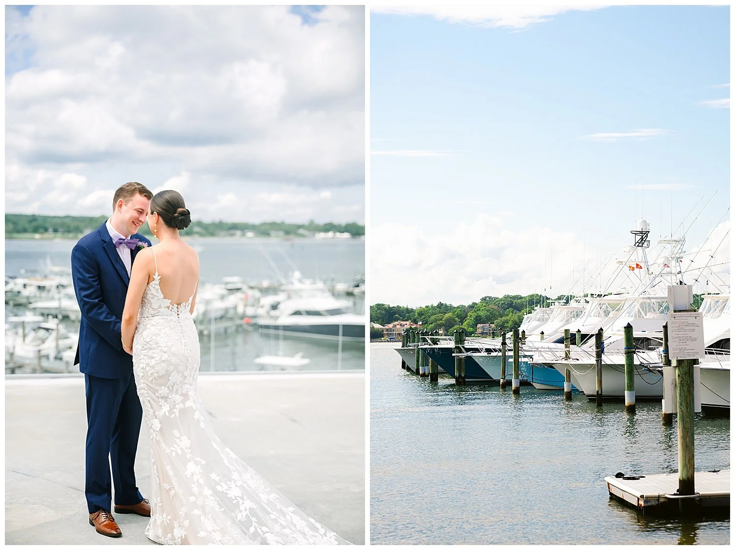 The first look at Clark’s Landing Yacht Club was nothing short of breathtaking! The sun was shining, and the view overlooking the dock was simply spectacular. Capturing moments of the bridal party on the rooftop was an absolute delight. And let’s not forget the heartfelt ceremony where Sean and Grace exchanged their own vows, followed by a lively reception that showcased their choreographed dance moves—Sean didn’t miss a beat!