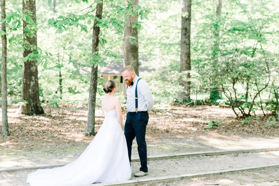 We started the day in a hotel where April and the girls got ready and where she spent some time having fun with the little ones! I enjoyed watching April’s pure joy as she prepared herself for her groom. Soon it was time to leave to head to Pochahantas State Park for the ceremony, but before they started April and Chris snuck in a first look. It was such a sweet moment!