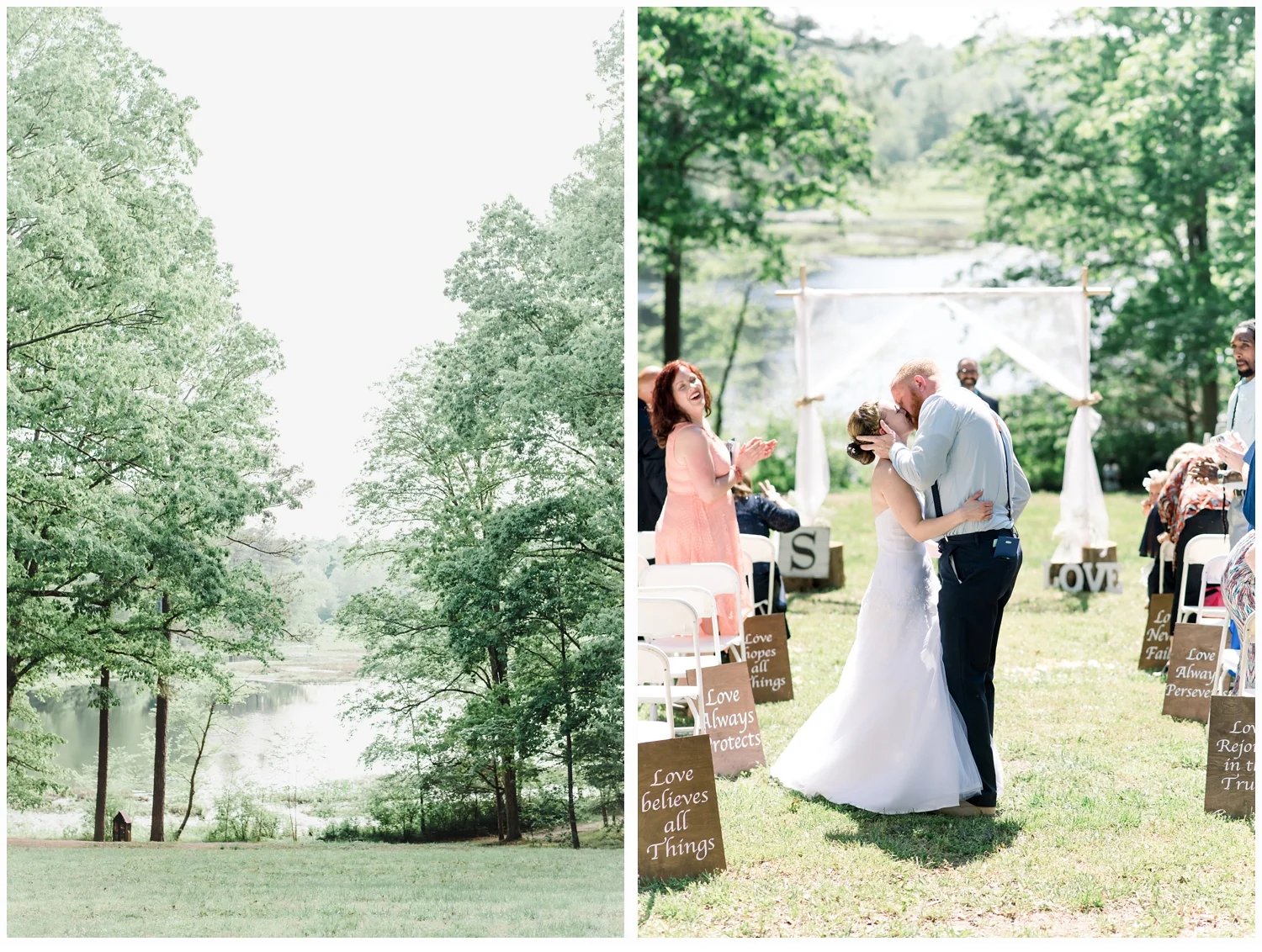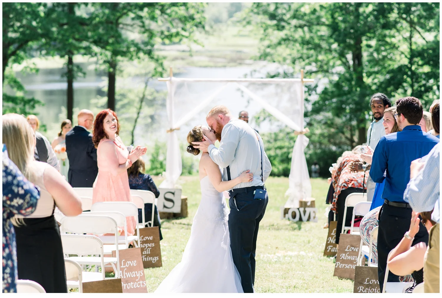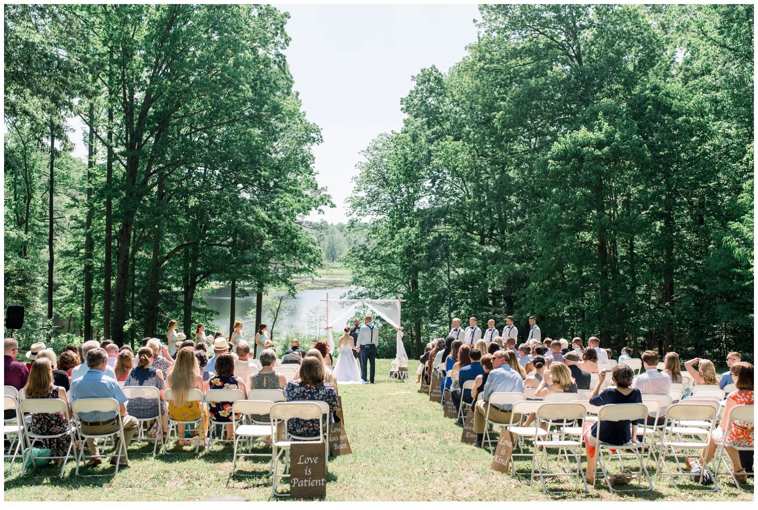 There were so many people surrounding these two and the joy and happiness was so evident. In front of a sweet simple lake April and Chris stood side by side as their dear friend Jimmy D. officiated the ceremony. Special music was provided by their close friend Tim and he sang their favorite song. There they stood together as all of their family and close friends witnessed their marriage.