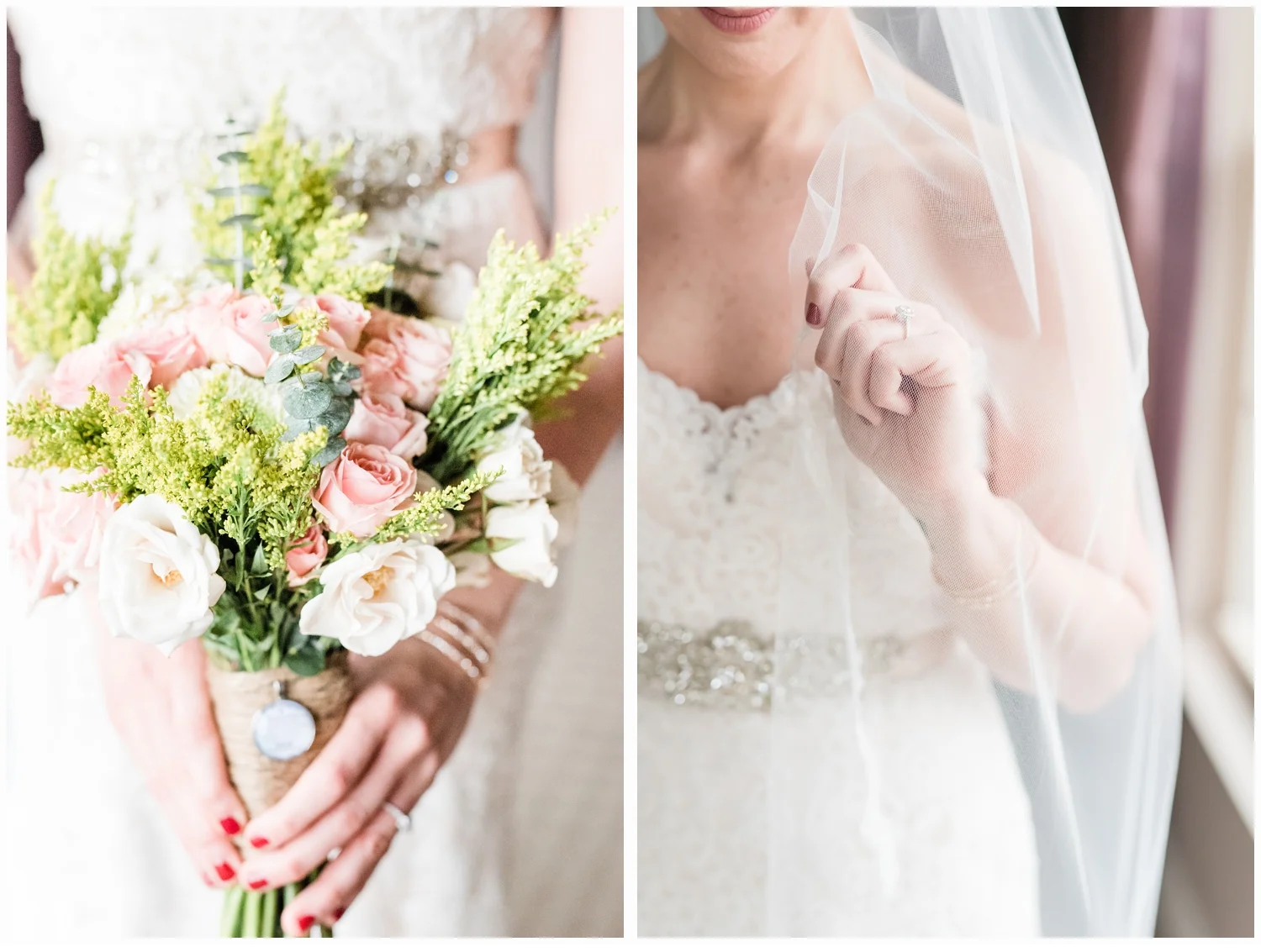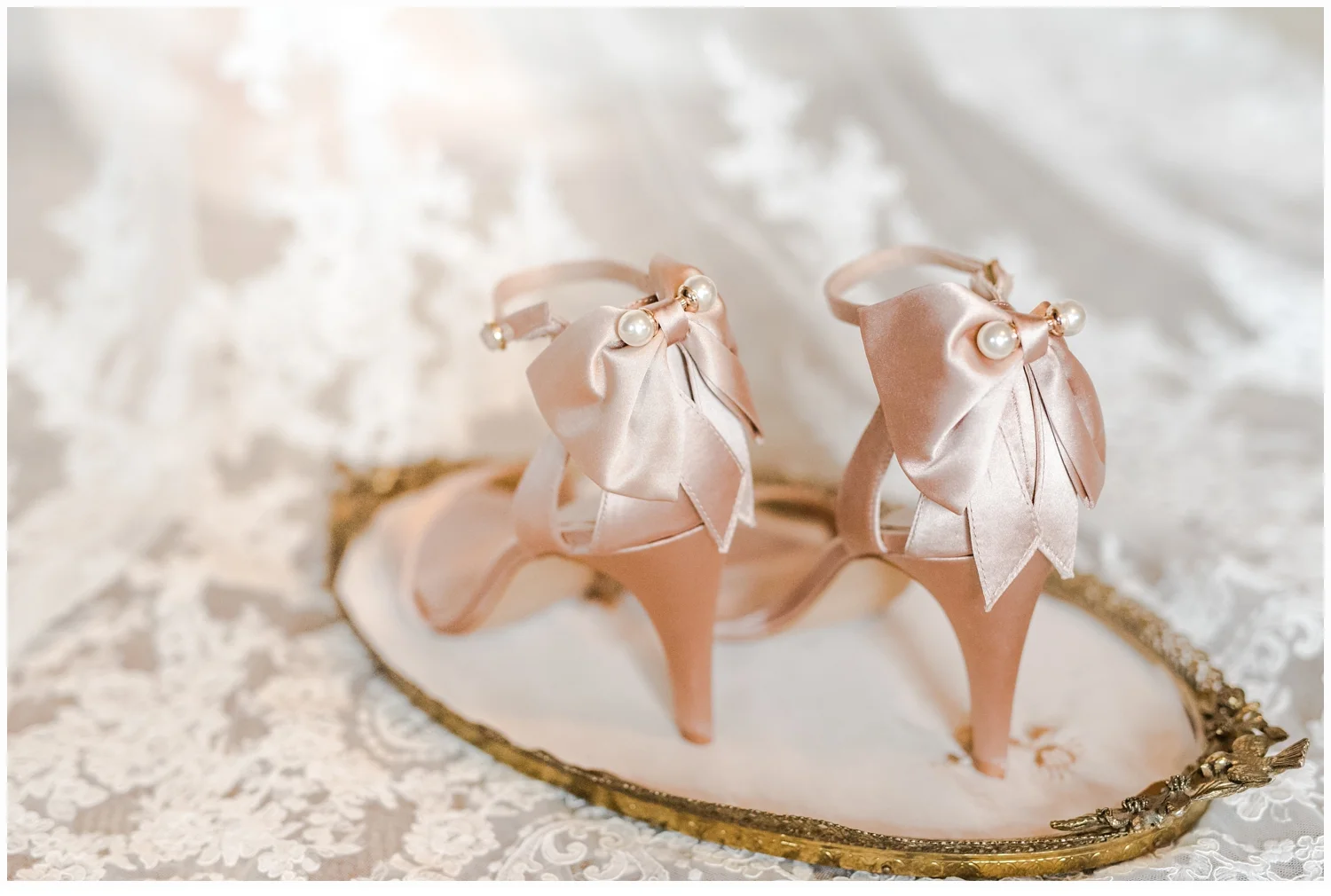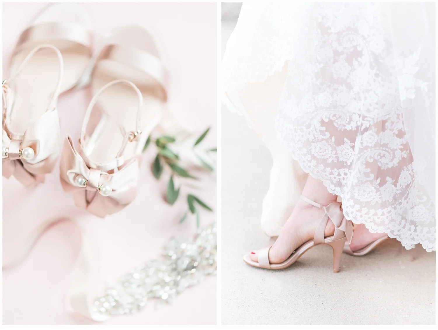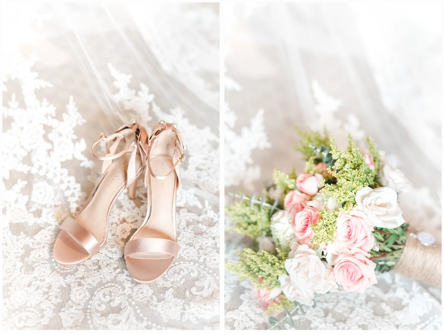 Lynn works for Anthropologie and well, that always means to me beautiful style and beautiful details!!! She could not have picked more beautiful details! Be still my heart, I could not get enough! Her gorgeous wedding dress was the Leigh Gown, an exclusive BHLDN wedding gown. In case you didn’t know, BHLDN is the wedding store of Anthropologie. Oh my goodness, the lace was exquisite. Her beautiful shoes were gold and had pretty little bows on the back complimented by a few dainty pearls! They were made by Kelly & Kate. I loved that Lynn incorporated a beautiful fur lined black leather jacket with her dress! It was such a unique look for sure! Every detail was perfectly planned for her special wedding day!