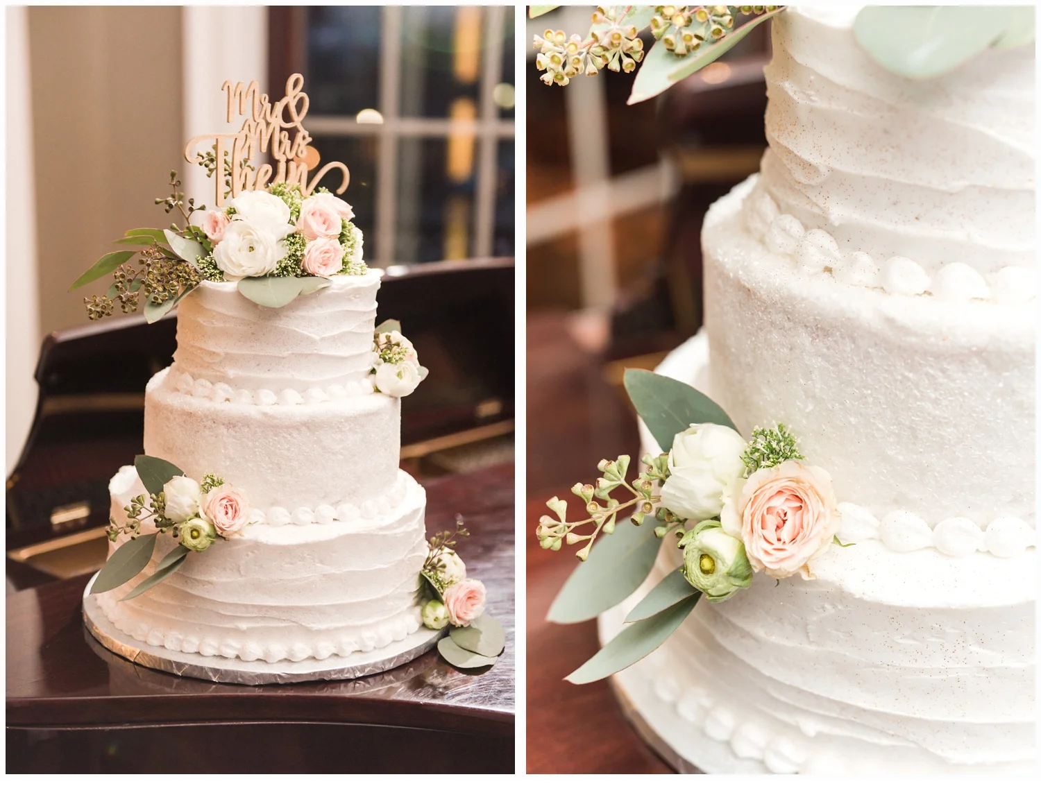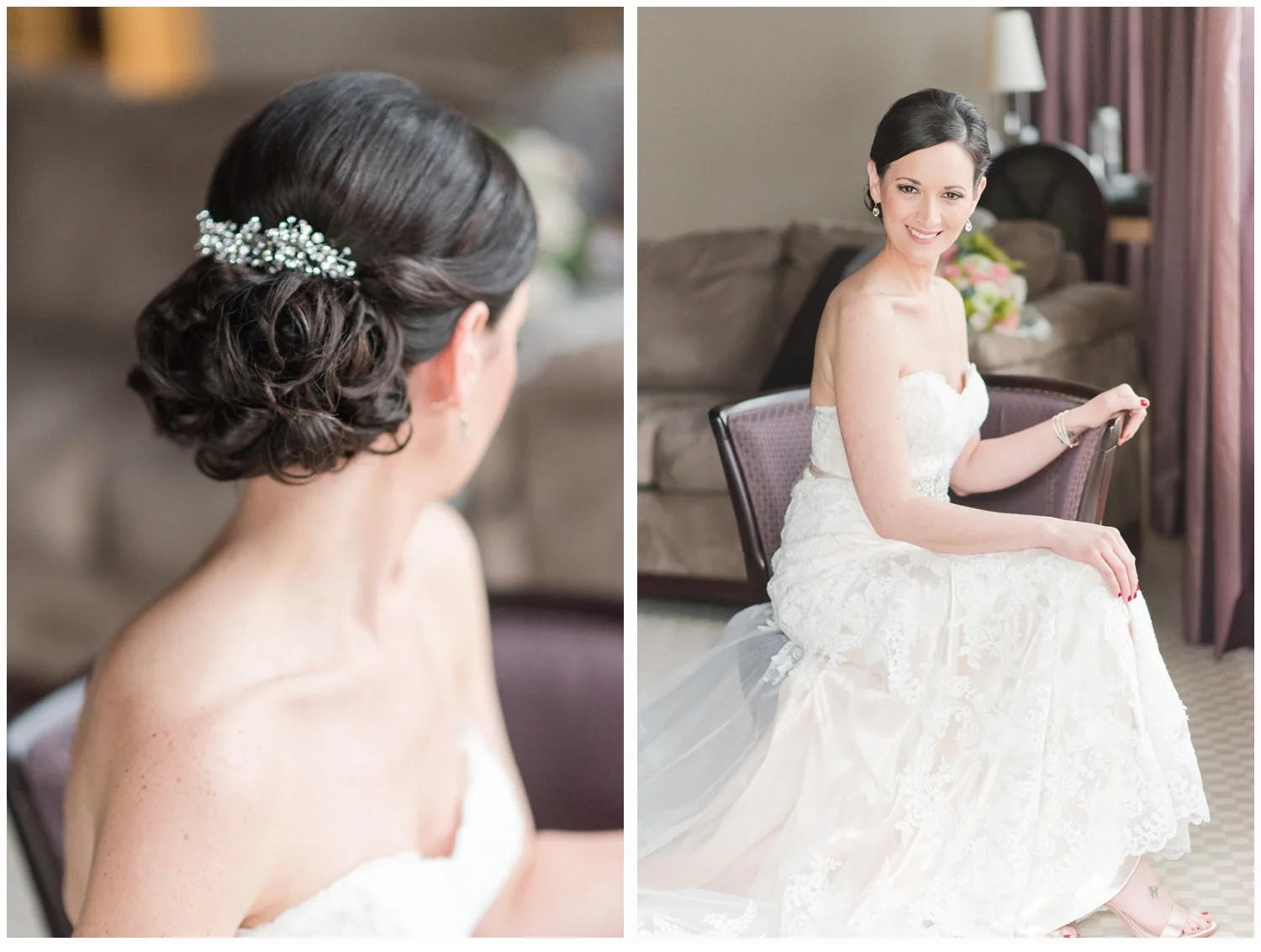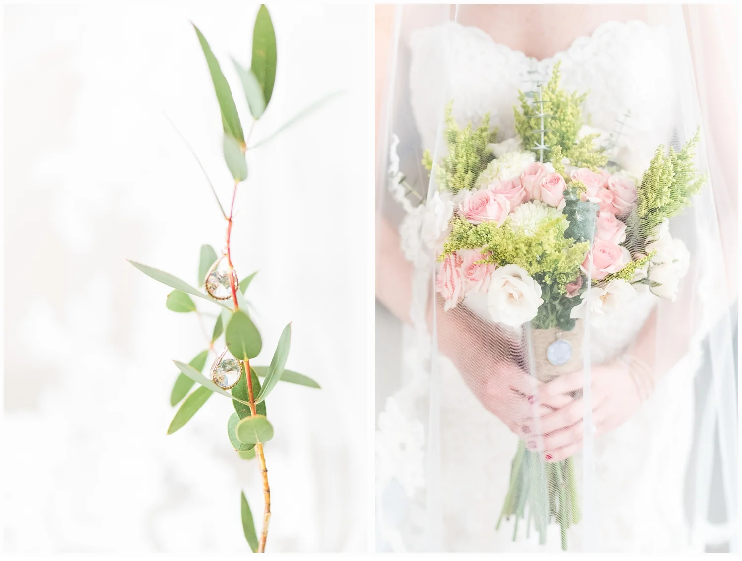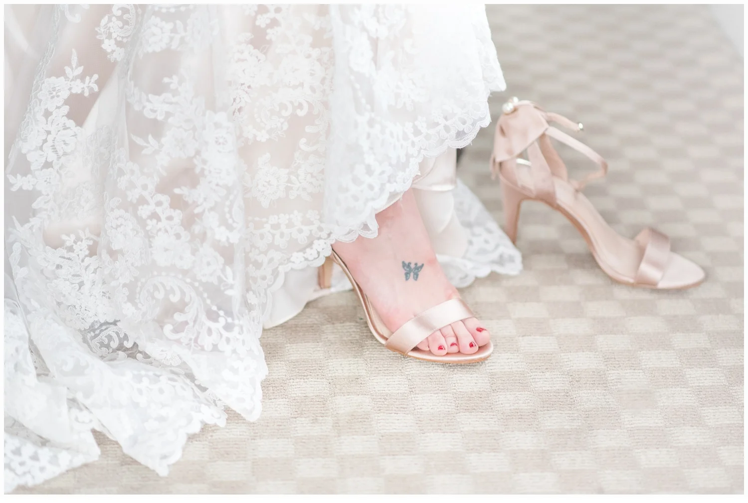 Lynn works for Anthropologie and well, that always means to me beautiful style and beautiful details!!! She could not have picked more beautiful details! Be still my heart, I could not get enough! Her gorgeous wedding dress was the Leigh Gown, an exclusive BHLDN wedding gown. In case you didn’t know, BHLDN is the wedding store of Anthropologie. Oh my goodness, the lace was exquisite. Her beautiful shoes were gold and had pretty little bows on the back complimented by a few dainty pearls! They were made by Kelly & Kate. I loved that Lynn incorporated a beautiful fur lined black leather jacket with her dress! It was such a unique look for sure! Every detail was perfectly planned for her special wedding day!