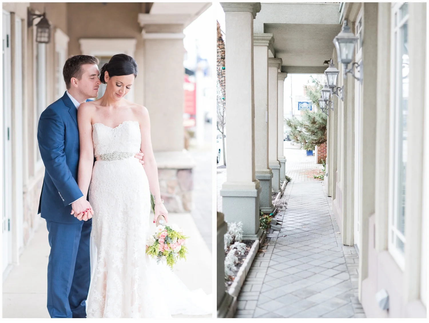 Lynn and Joe did not have a traditional bridal party so it was so much fun just focusing on them! They did their first look in front of their other favorite restaurant. It was actually raining during that time, but I have to say that the umbrellas added such a beautiful look to all of the photographs and it did not spoil a thing! During our time outside for portraits we found the most beautiful archways to sneak into and create some magic!