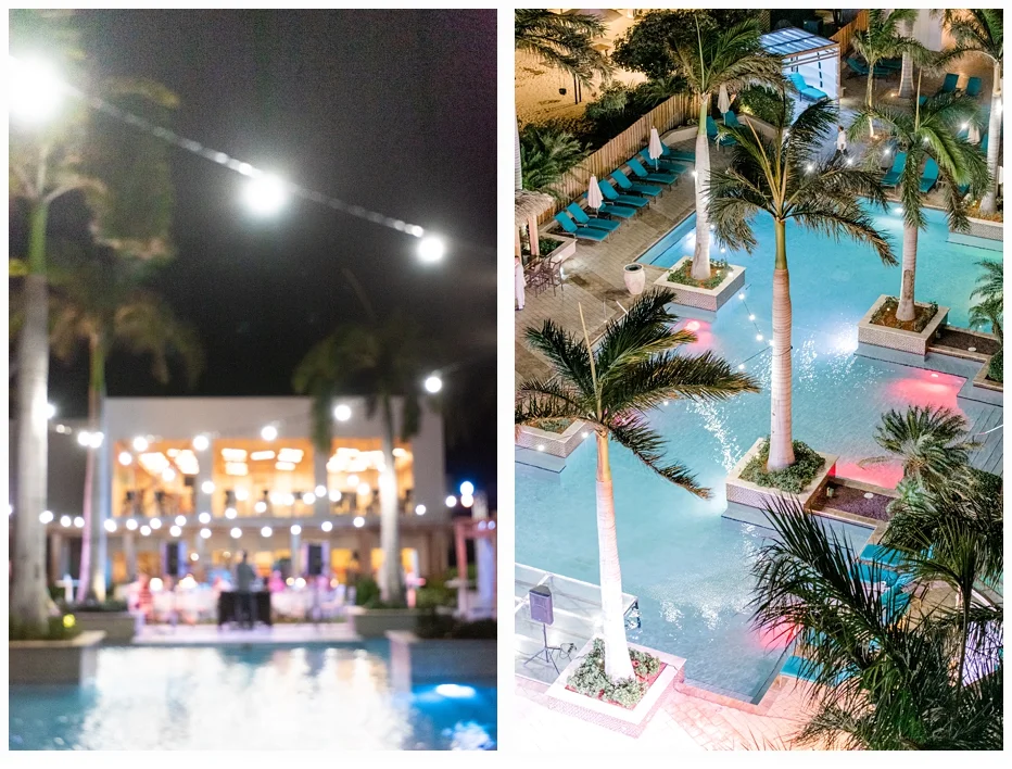 As if the week was amazing enough, I just love that the wedding day ended with a gorgeous party at the beautiful pool located at the Aruba Marriott Hotel. It was covered with palm trees and the most beautiful decor ever!