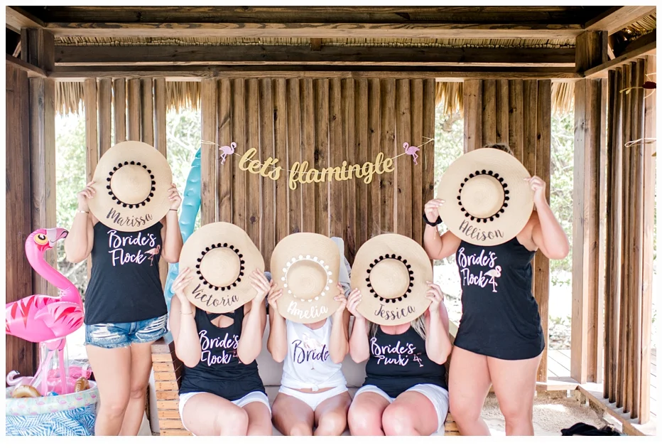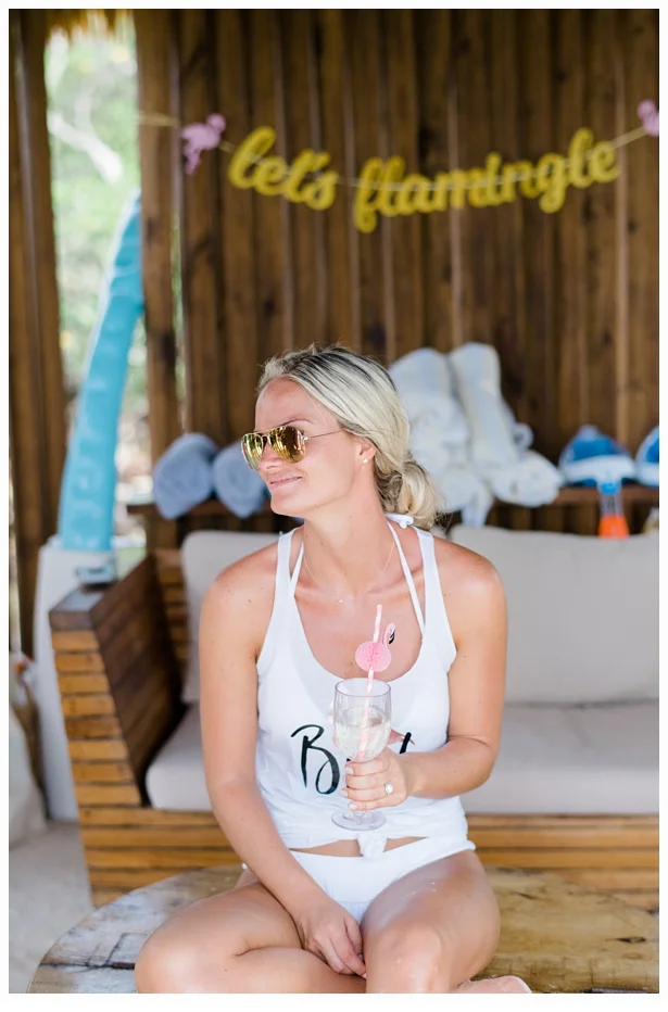 We arrived two days early to enjoy the festivities for some pre-wedding day fun! Amelia arranged a beautiful day on Flamingo Island where there are pretty pink flamingos roaming the beaches! We had a private cabana at the edge of the cove where all the bridesmaids decorated it with a Flamingo Theme. So so fun!!!!