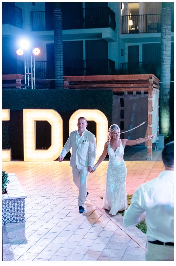 Amelia and Brian thought of everything for the wedding! Their adorable little welcome beach bags for their guest were filled with sun screen and lots of snacks. They totally thought of it all!