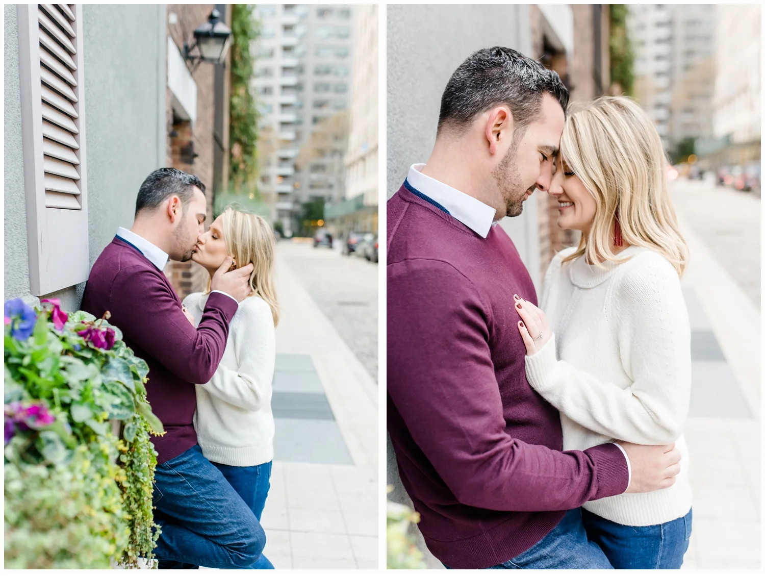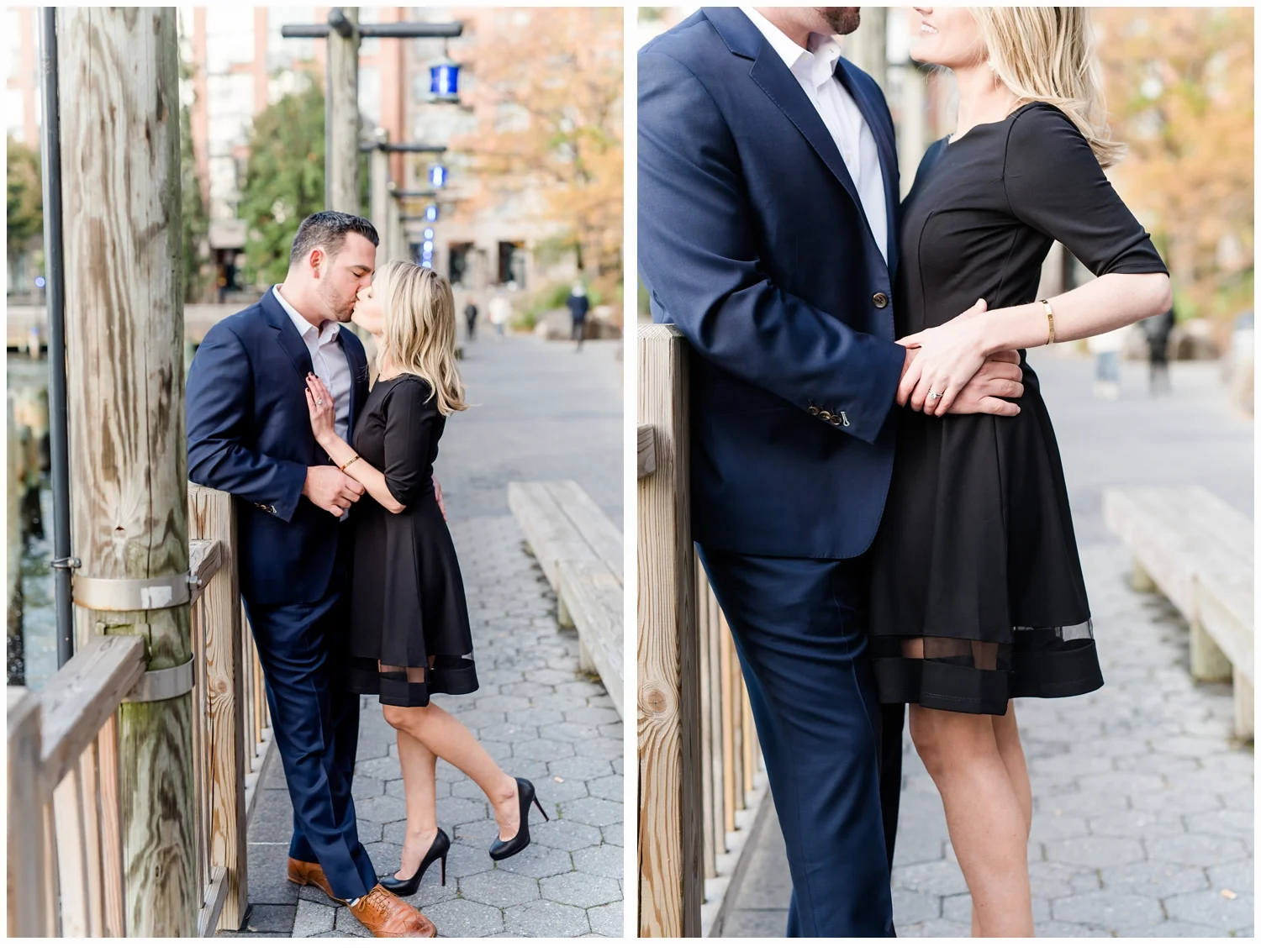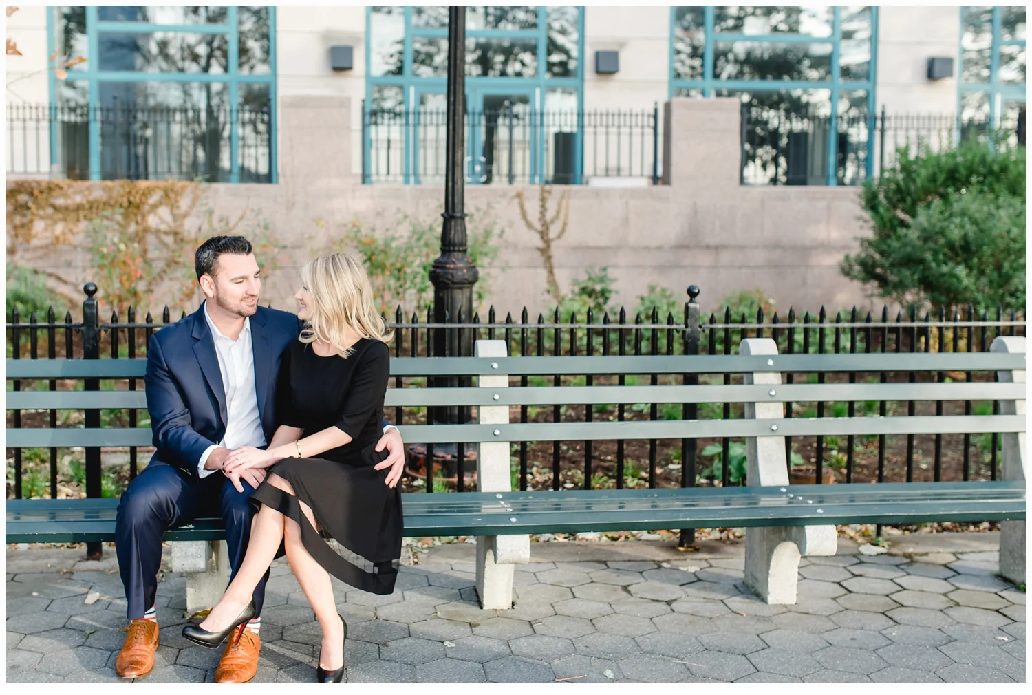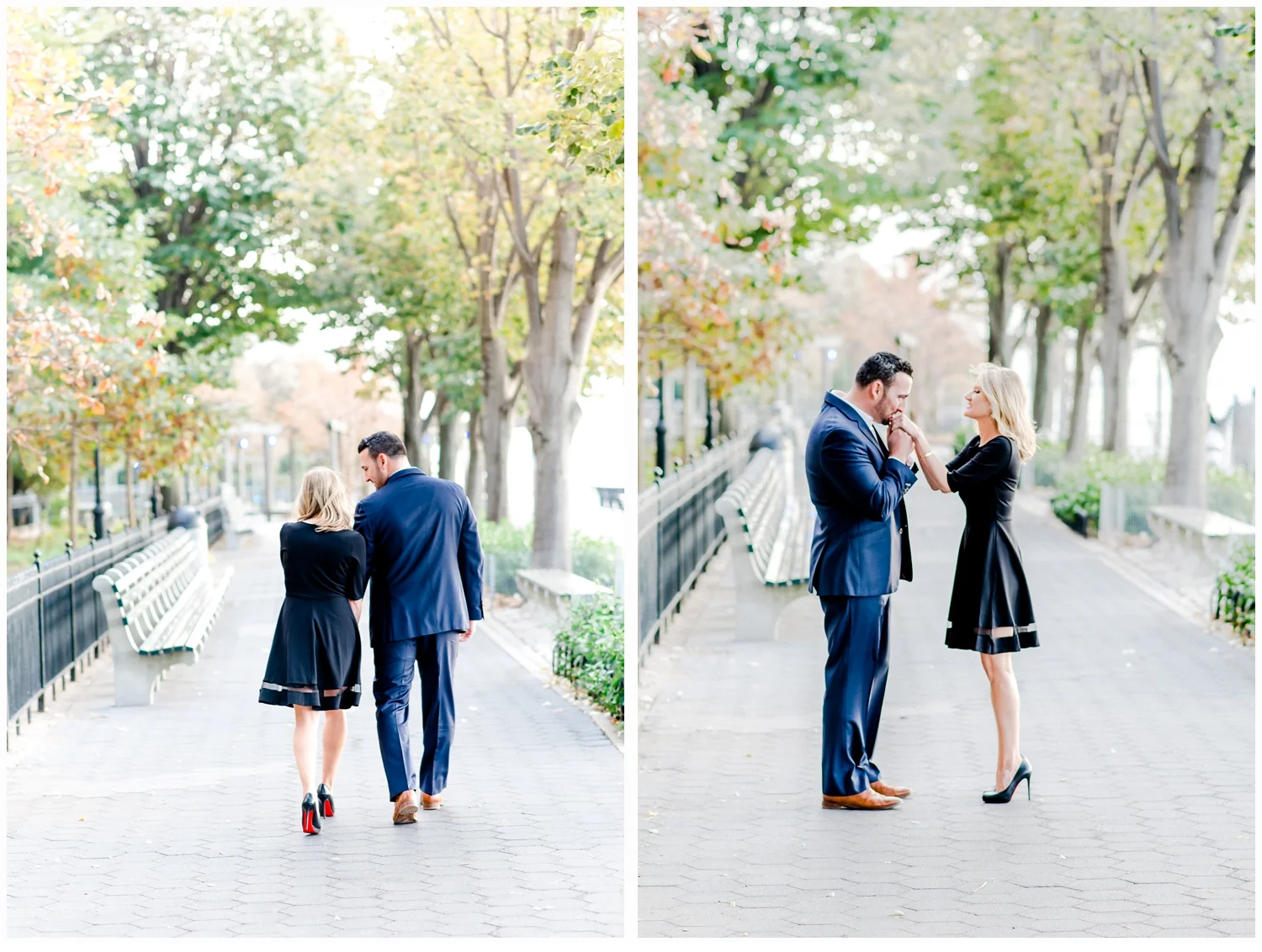 After a few months, the couple met up again at a bar during happy hour where Peter was basically forced to ask her out! The rest is history! They both live in lower Manhattan and enjoy spending weekends having fun in their neighborhoods. They eventually moved to Flat Iron. Their choice for their engagement session could not be better!!!!