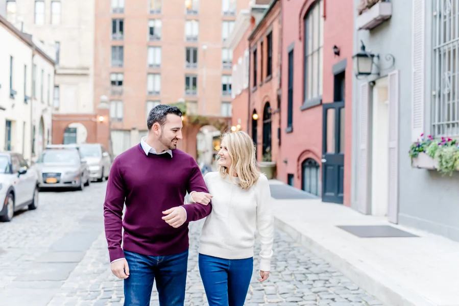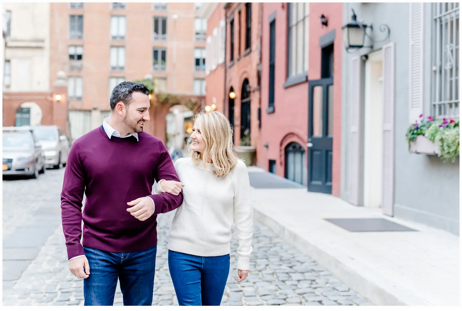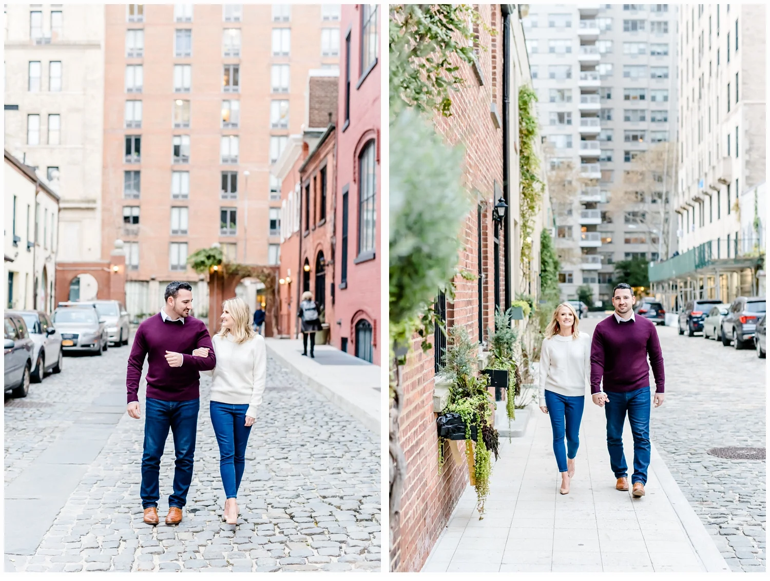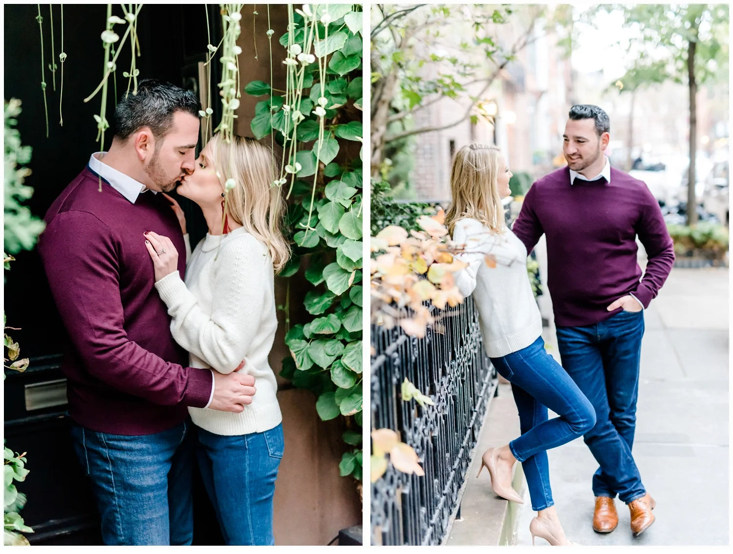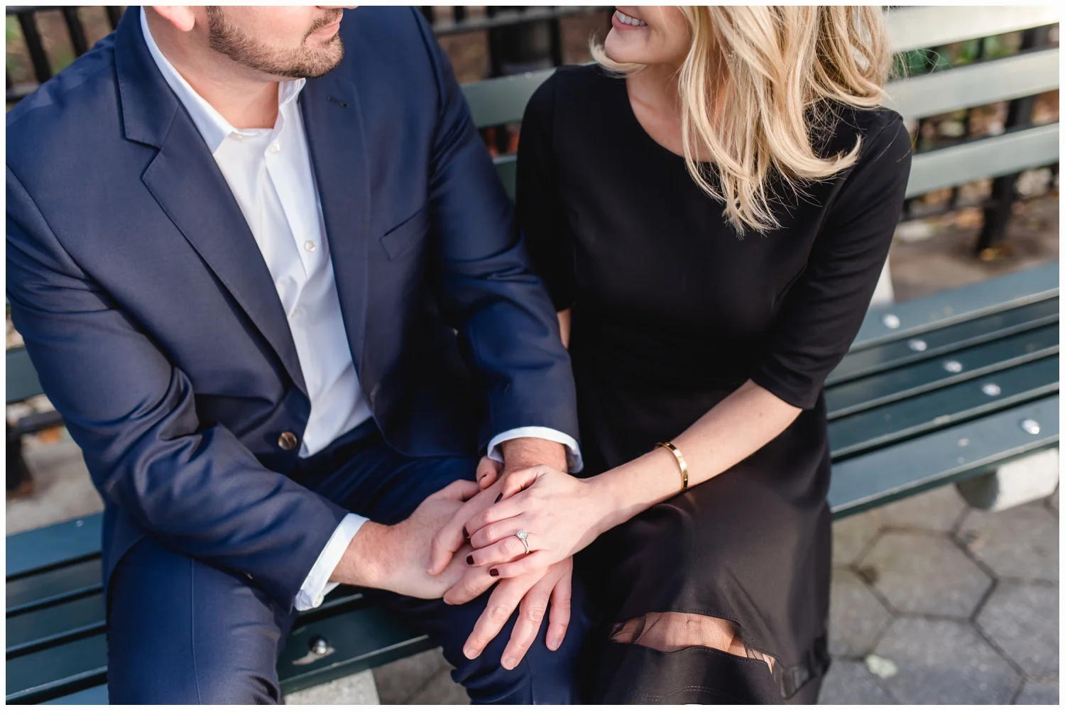 After a few months, the couple met up again at a bar during happy hour where Peter was basically forced to ask her out! The rest is history! They both live in lower Manhattan and enjoy spending weekends having fun in their neighborhoods. They eventually moved to Flat Iron. Their choice for their engagement session could not be better!!!!