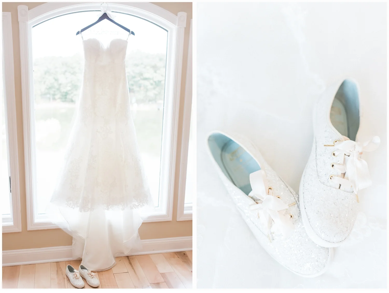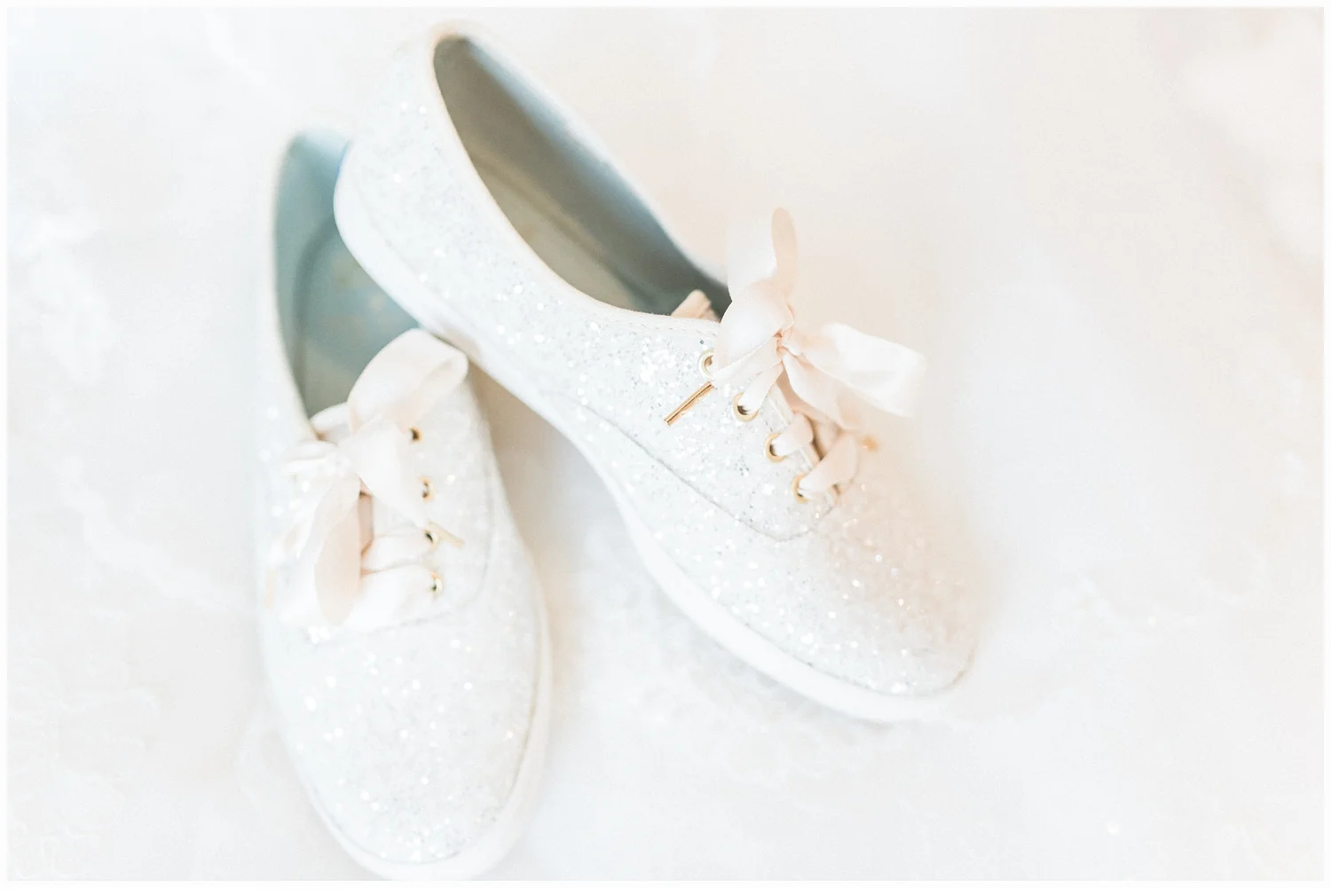 One of the things Claire really loved about Rock Island was the bridal suite. It has a beautiful view of the lake and pretty and bright open space for all of her besties to enjoy their time together preparing for the big day! Claire chose a beautiful moncheribridal wedding dress and it was stunning! Her beautiful veil was trimmed with just the right amount of lace and complimented her dress so wonderfully! Claire is a gym teacher and what is the best thing to buy for a gym teacher, sneakers! When she went shopping for wedding sneakers, she found those adorable sparkly keds!
