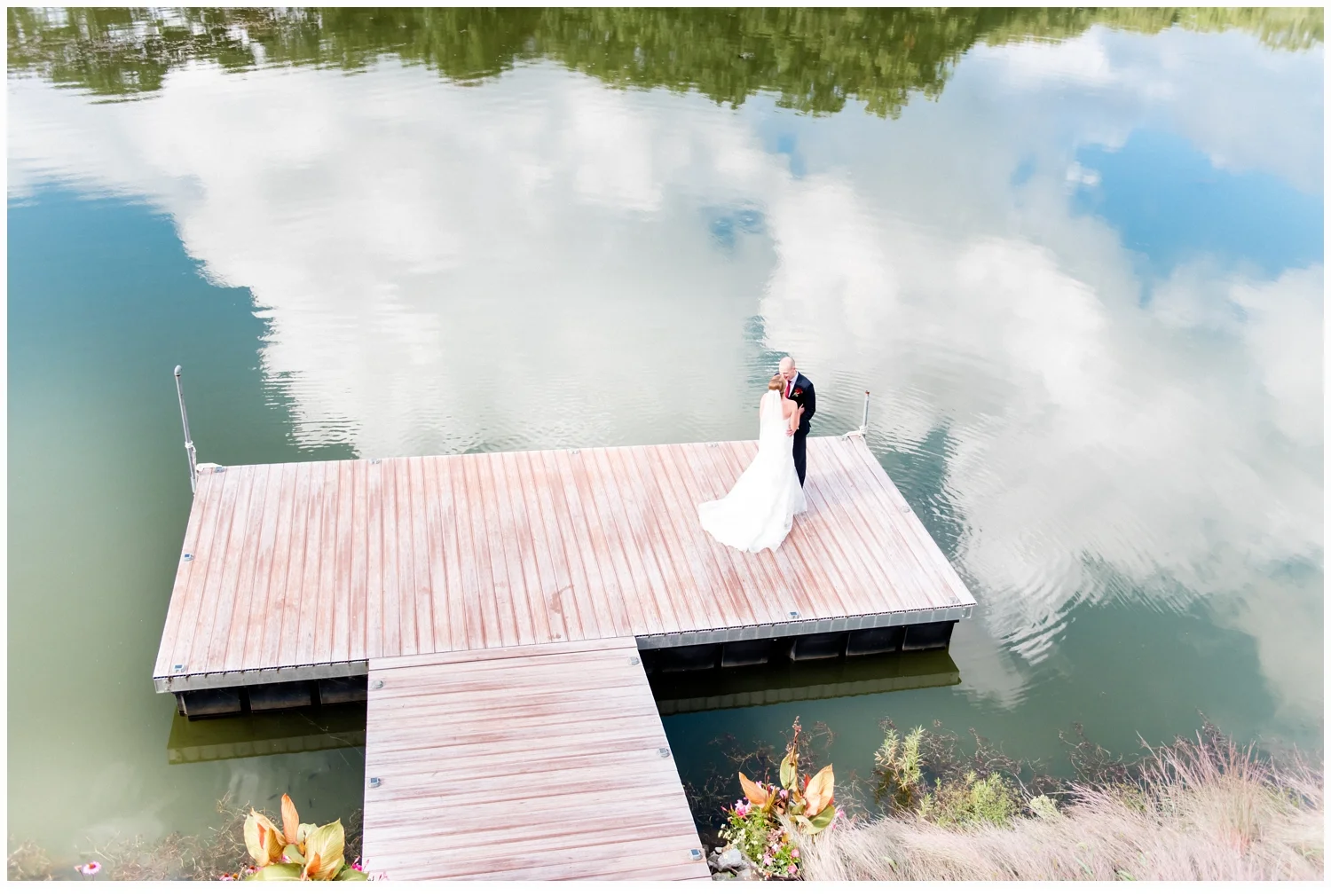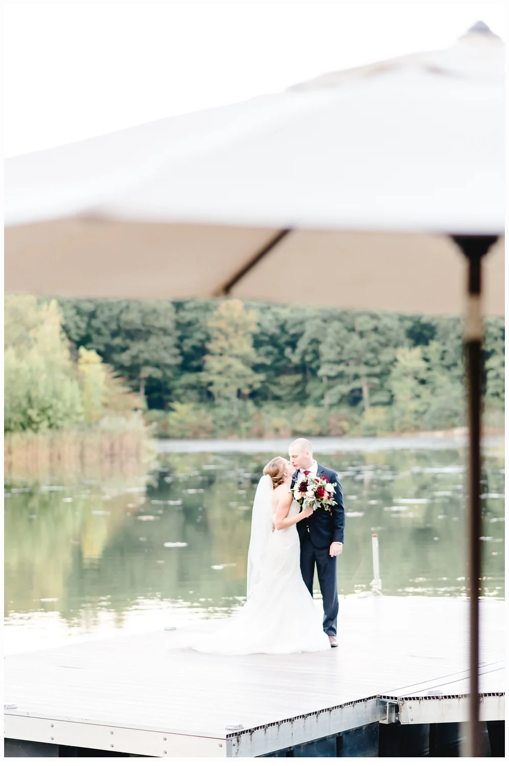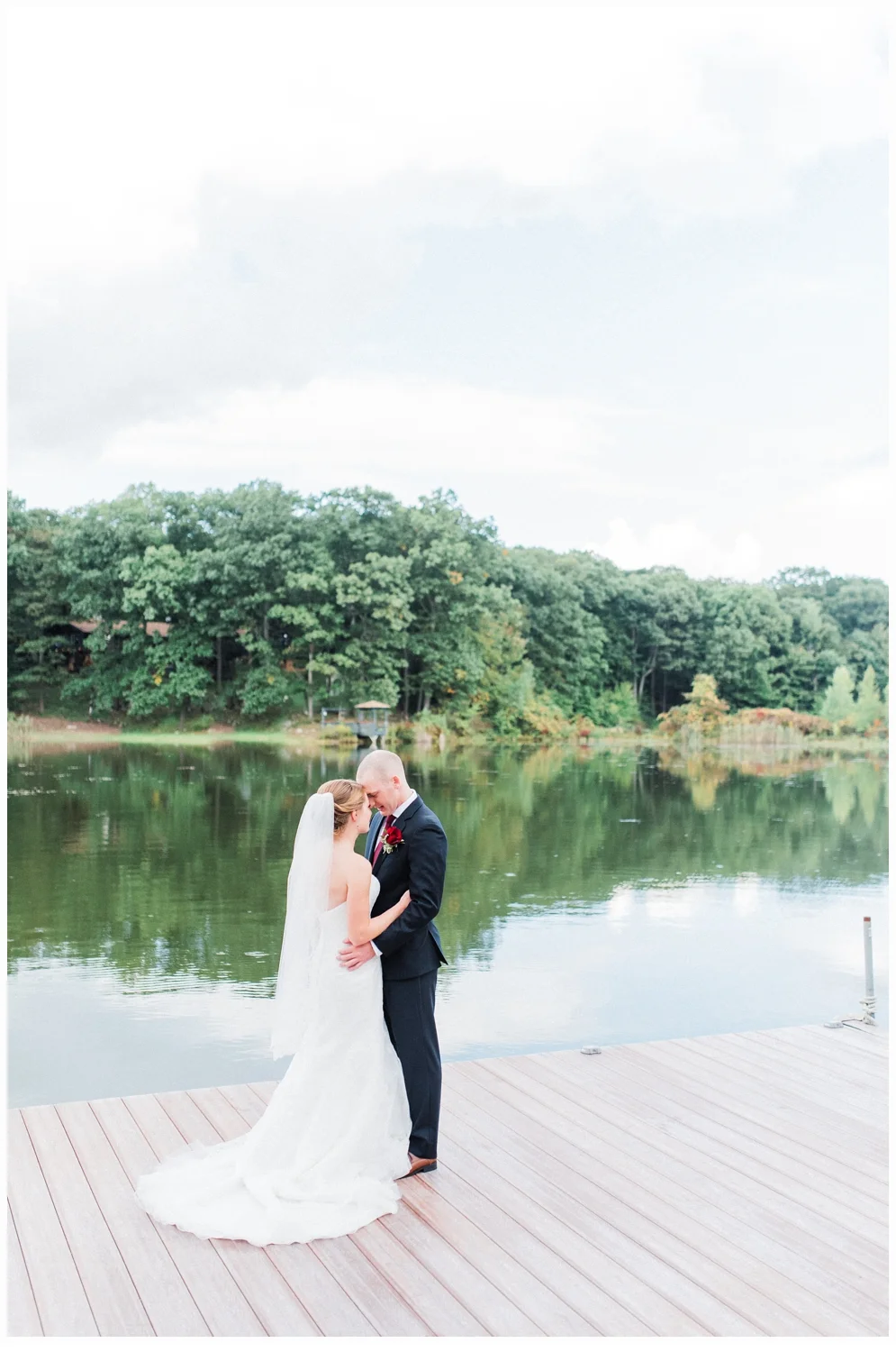 On their wedding day, everything was perfect! The beautiful intimate dining area was perfect for their friends and family to party the night away! Their beautiful ceremony was held right at the lake where they exchanged their vows under a pretty wooden arbor filled with beautiful flowers!