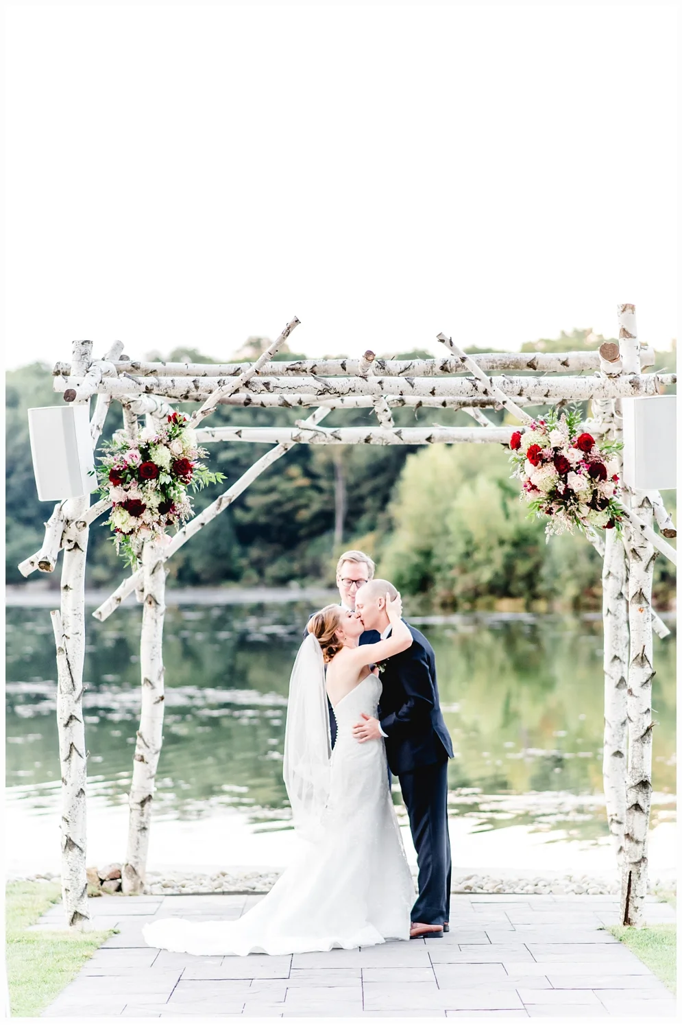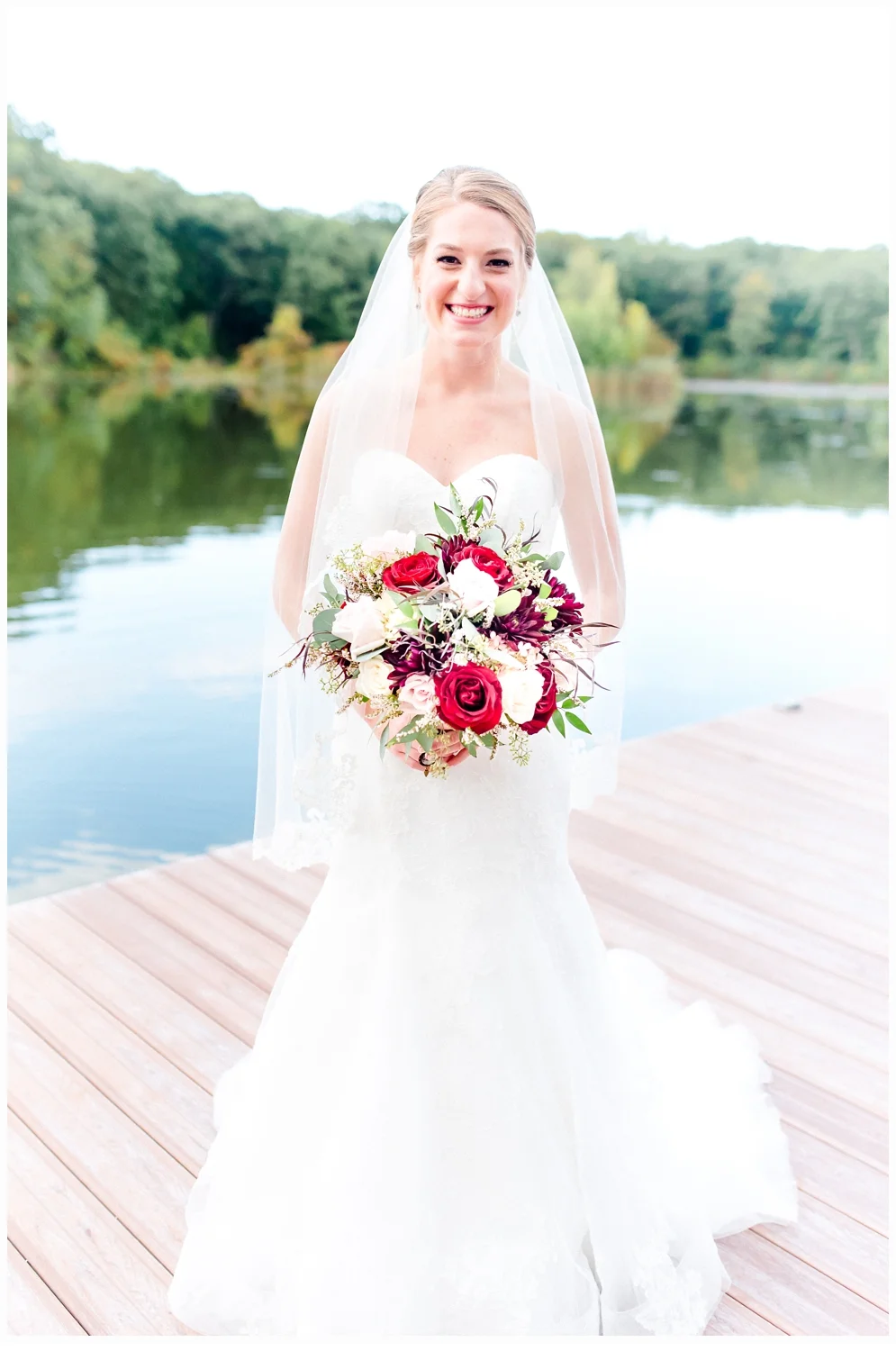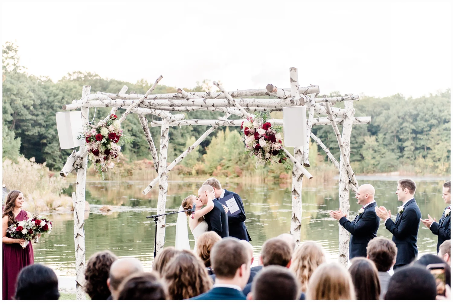 On their wedding day, everything was perfect! The beautiful intimate dining area was perfect for their friends and family to party the night away! Their beautiful ceremony was held right at the lake where they exchanged their vows under a pretty wooden arbor filled with beautiful flowers!