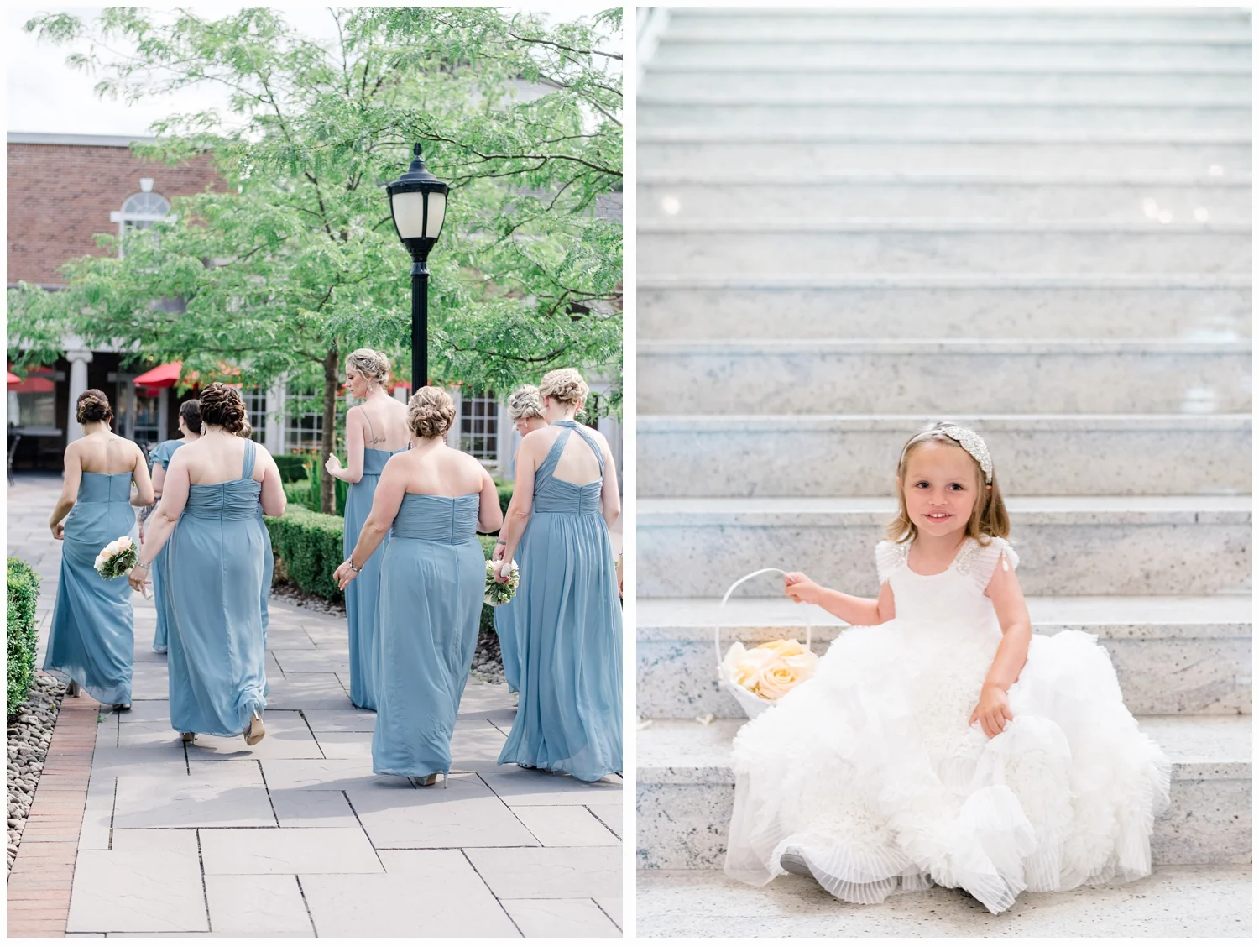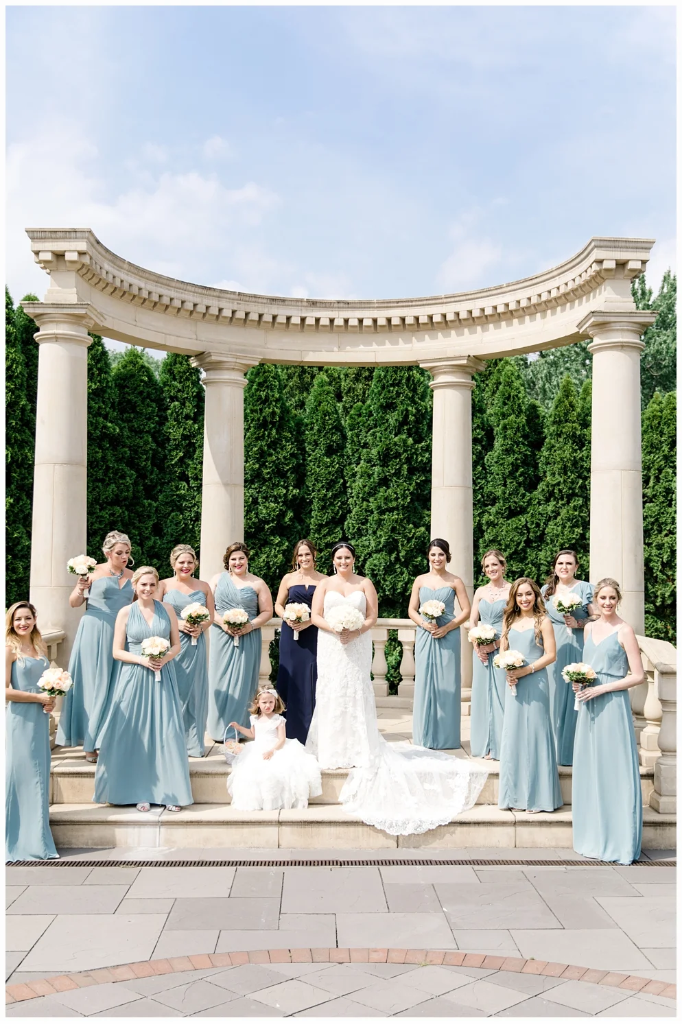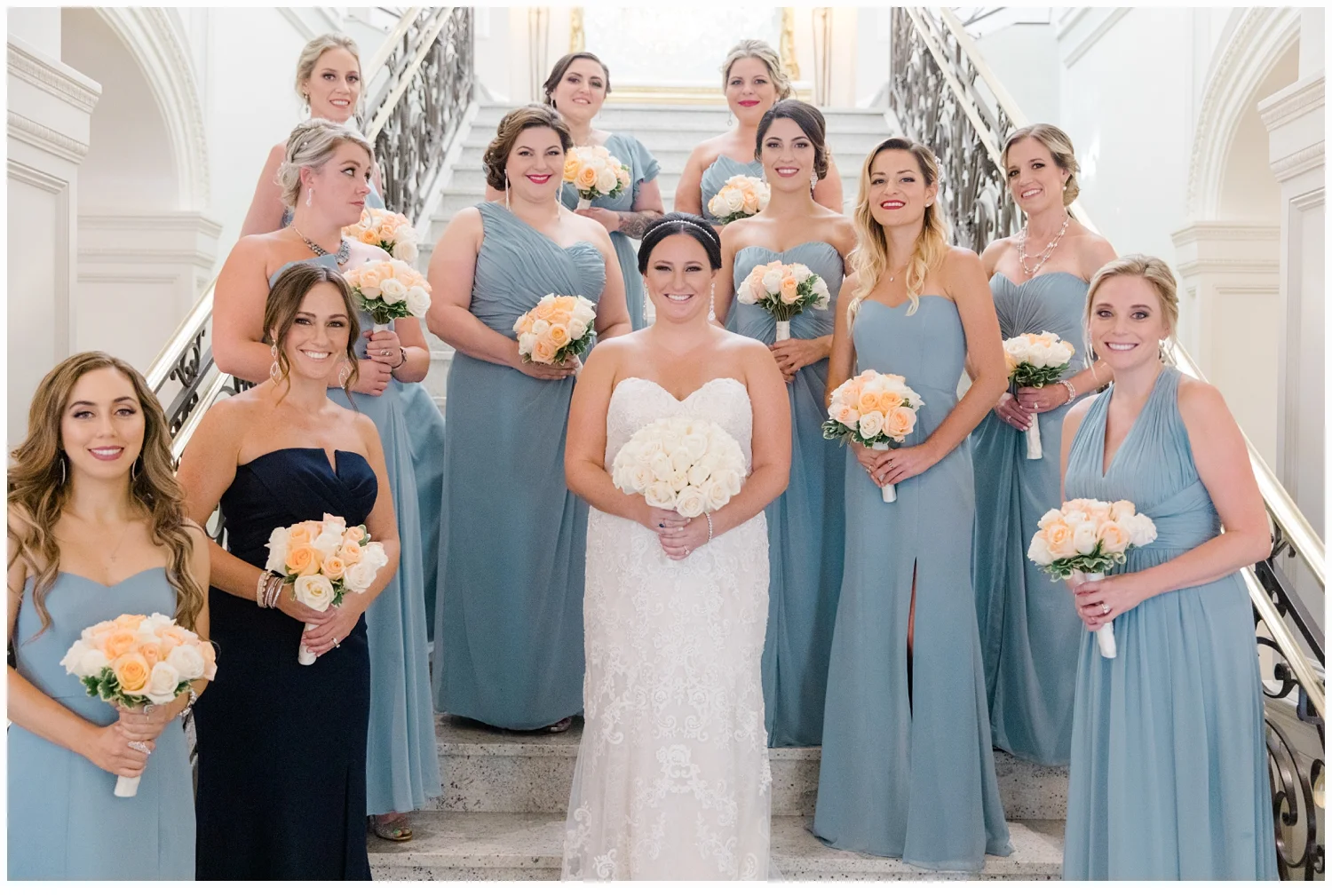 Jaclyn chose a gorgeous Essence of Australia wedding gown which was just perfect for her! She chose the prettiest Badgley Mischka shoes in a shimmering gold tone! The girls had a beautiful gown designed by the Dessy Group. Matt had a gorgeous blue suit made by My Suit and it was such a hit! The color was just beautiful! The beautiful florals were designed by Columbia Florist and they did a beautiful job with every little detail!
