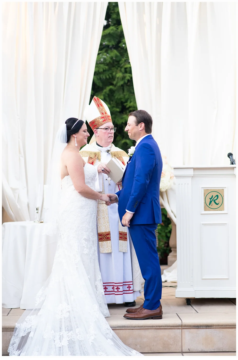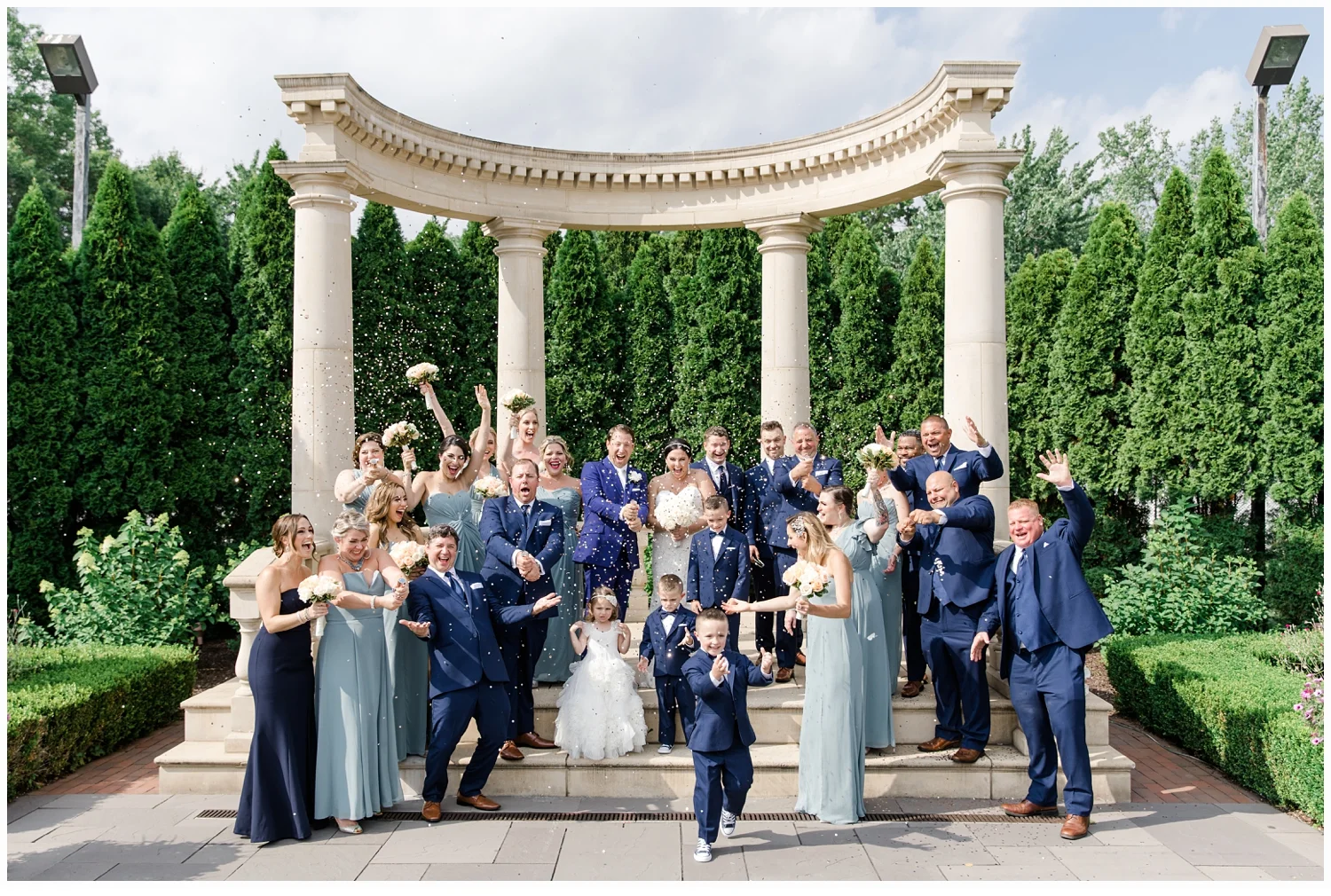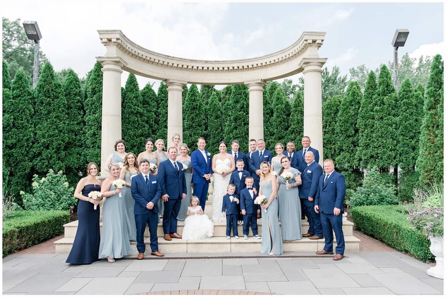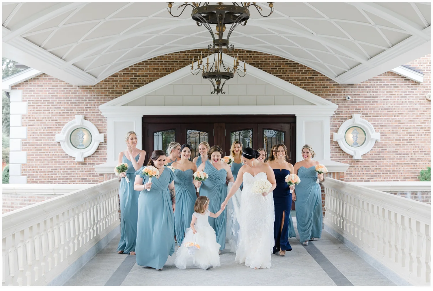 Jaclyn chose a gorgeous Essence of Australia wedding gown which was just perfect for her! She chose the prettiest Badgley Mischka shoes in a shimmering gold tone! The girls had a beautiful gown designed by the Dessy Group. Matt had a gorgeous blue suit made by My Suit and it was such a hit! The color was just beautiful! The beautiful florals were designed by Columbia Florist and they did a beautiful job with every little detail!
