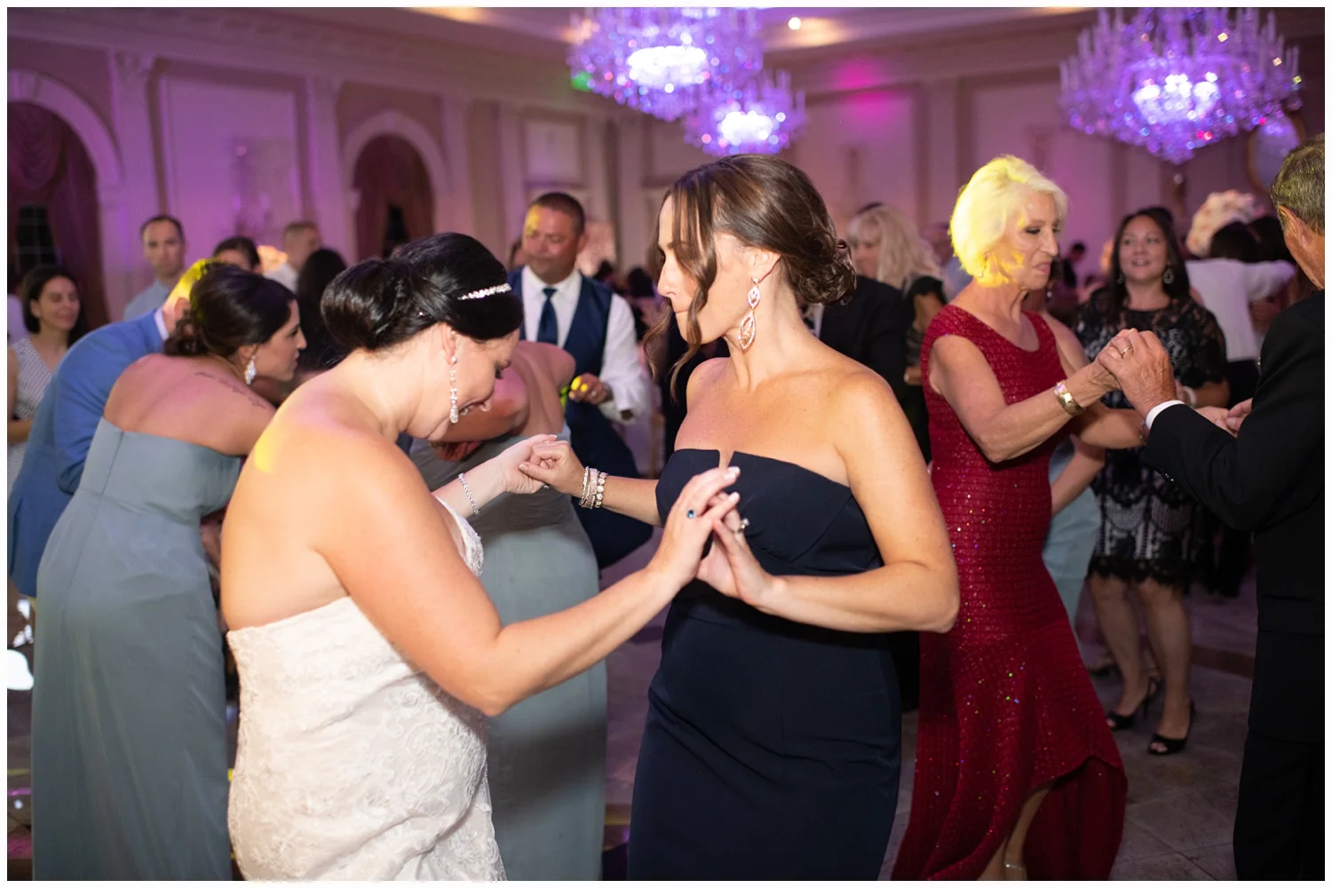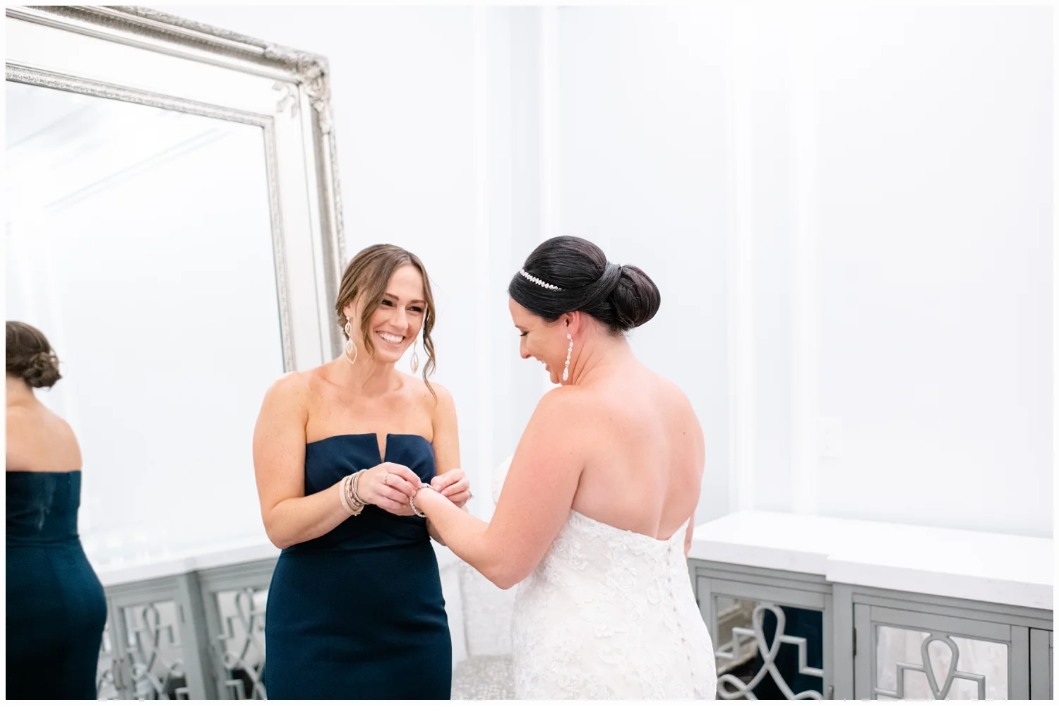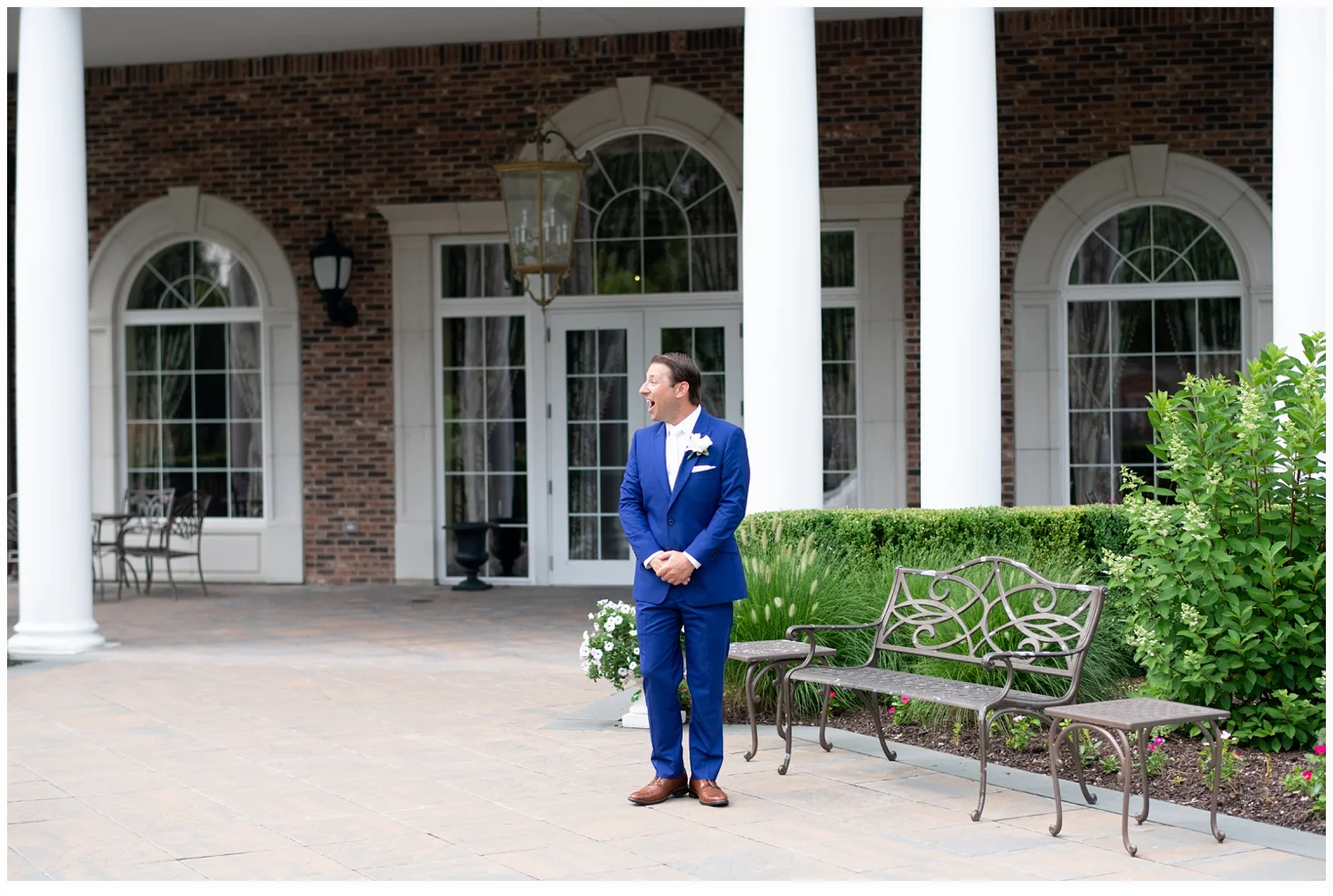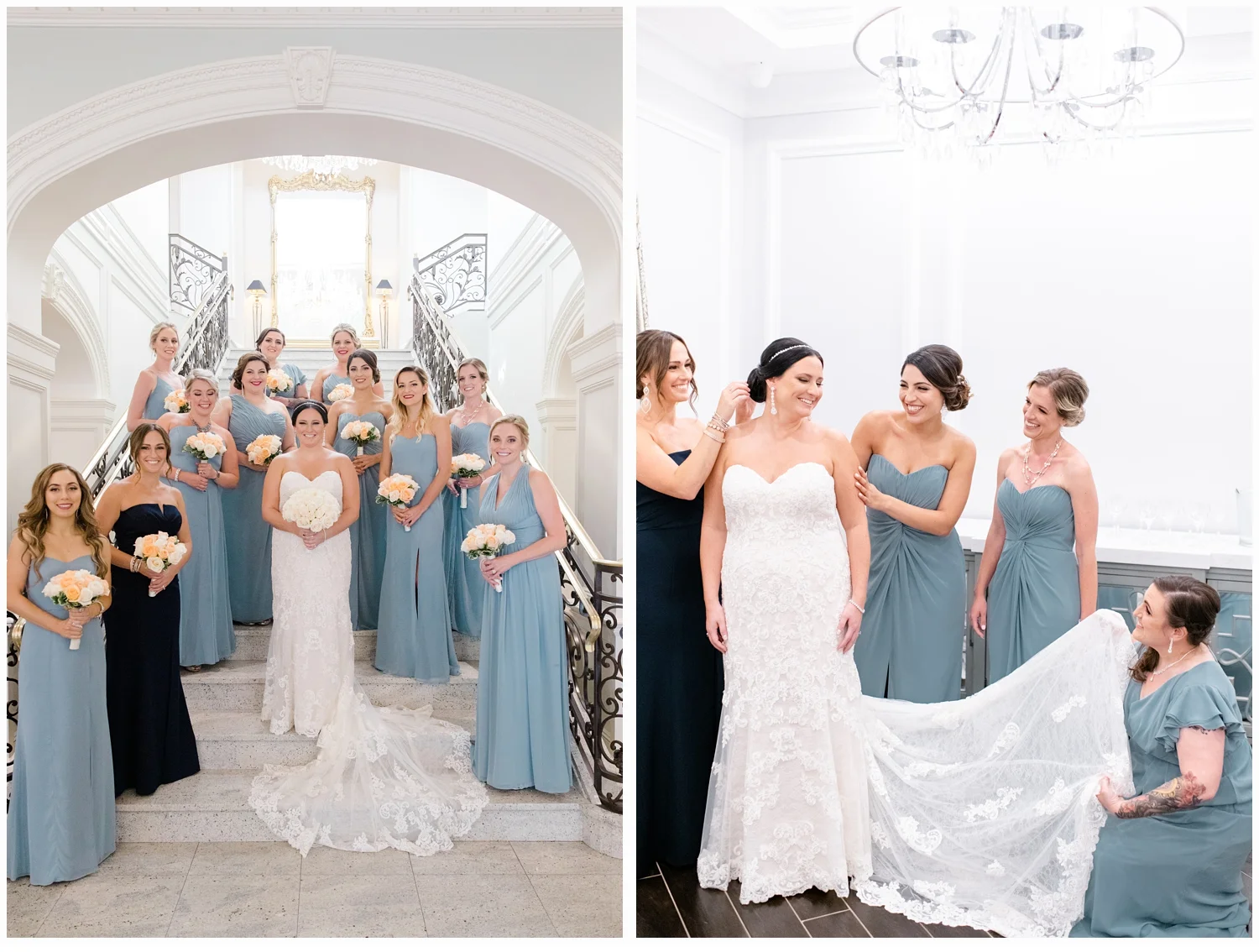 The day began at the home that Jaclyn grew up in and it was a total party going on with her bride tribe! After popping some champagne and getting ready it was time to head to the Rockleigh. Jaclyn and the girls headed to the pretty bridal suite for more champagne and more last minute getting ready and some bridal party pictures before she was to meet Matthew for their first look. One of the things I loved the most during their first look was Matthew’s reaction when he saw Jaclyn!