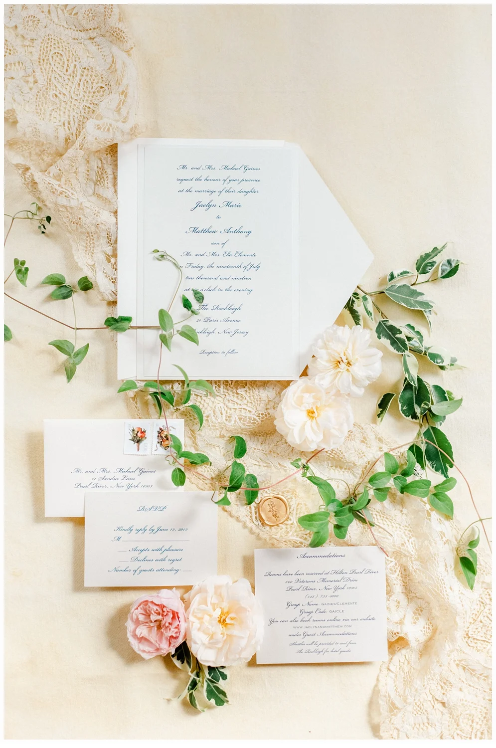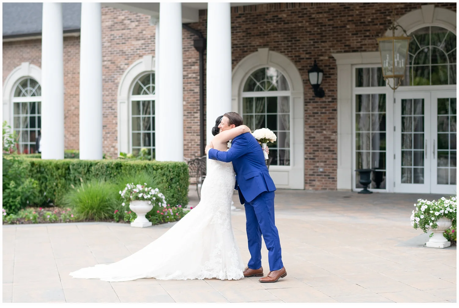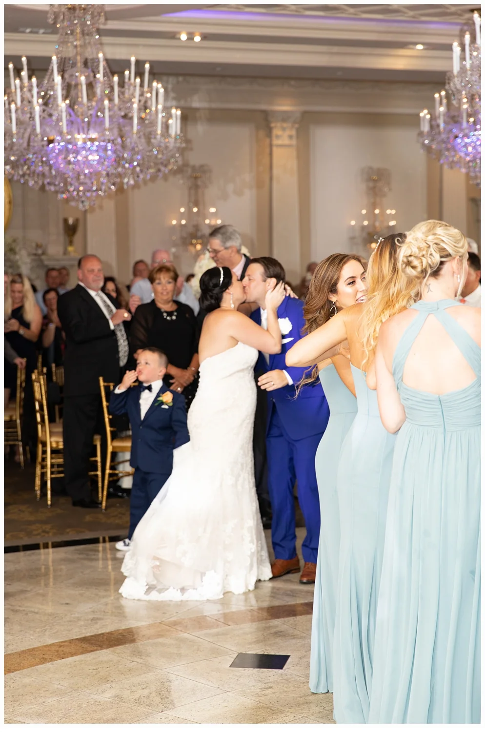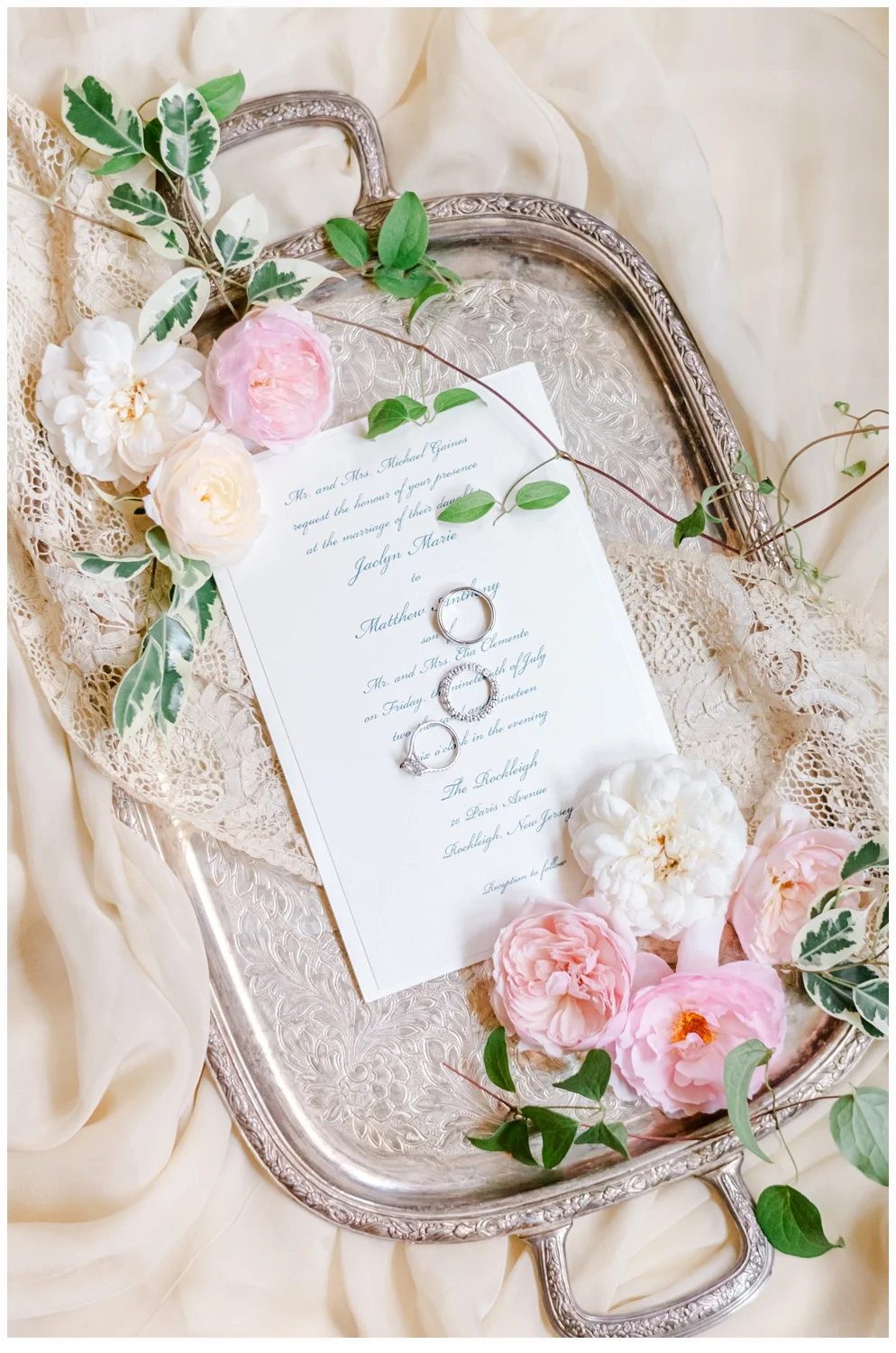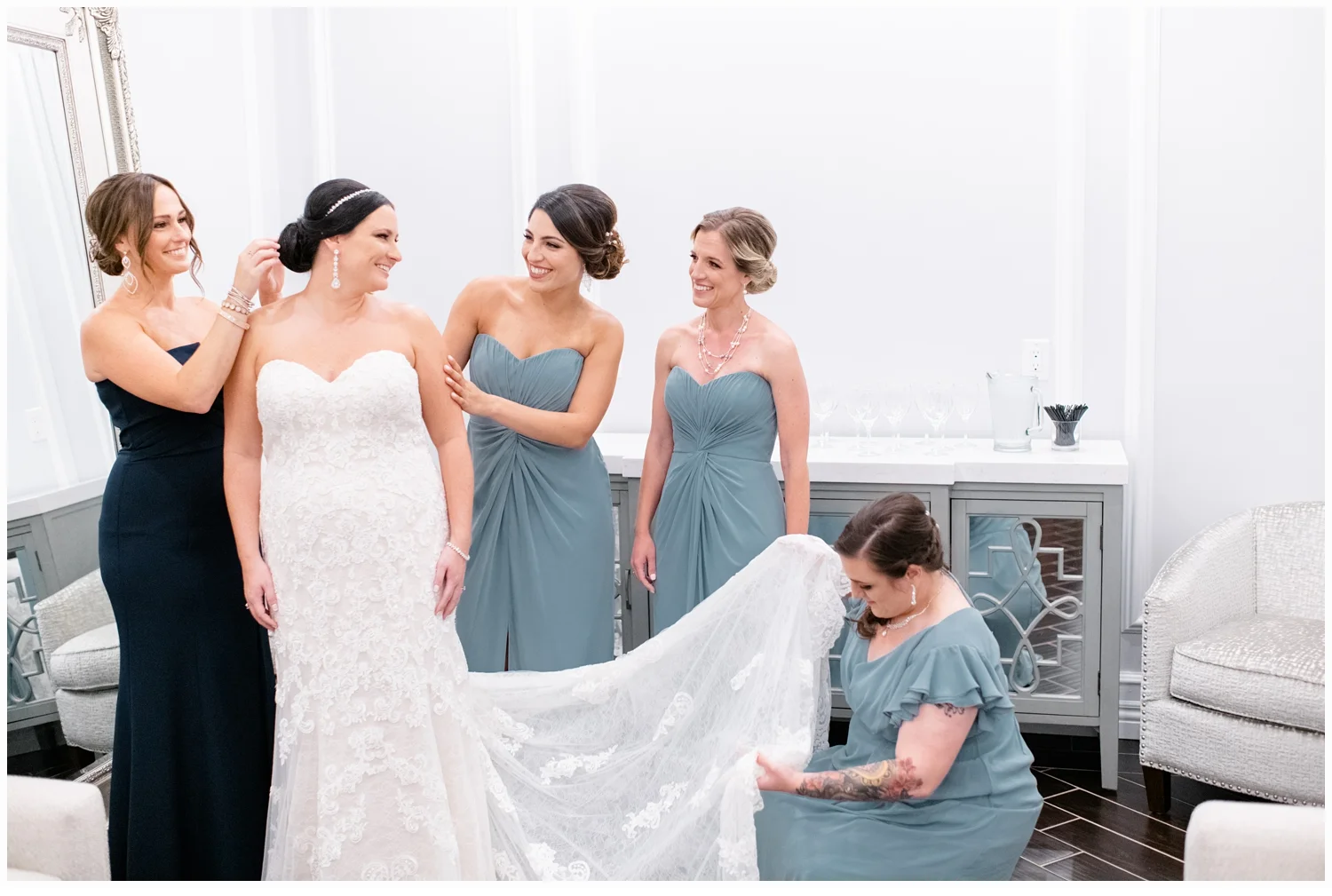 The day began at the home that Jaclyn grew up in and it was a total party going on with her bride tribe! After popping some champagne and getting ready it was time to head to the Rockleigh. Jaclyn and the girls headed to the pretty bridal suite for more champagne and more last minute getting ready and some bridal party pictures before she was to meet Matthew for their first look. One of the things I loved the most during their first look was Matthew’s reaction when he saw Jaclyn!