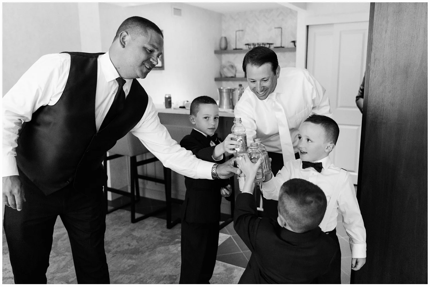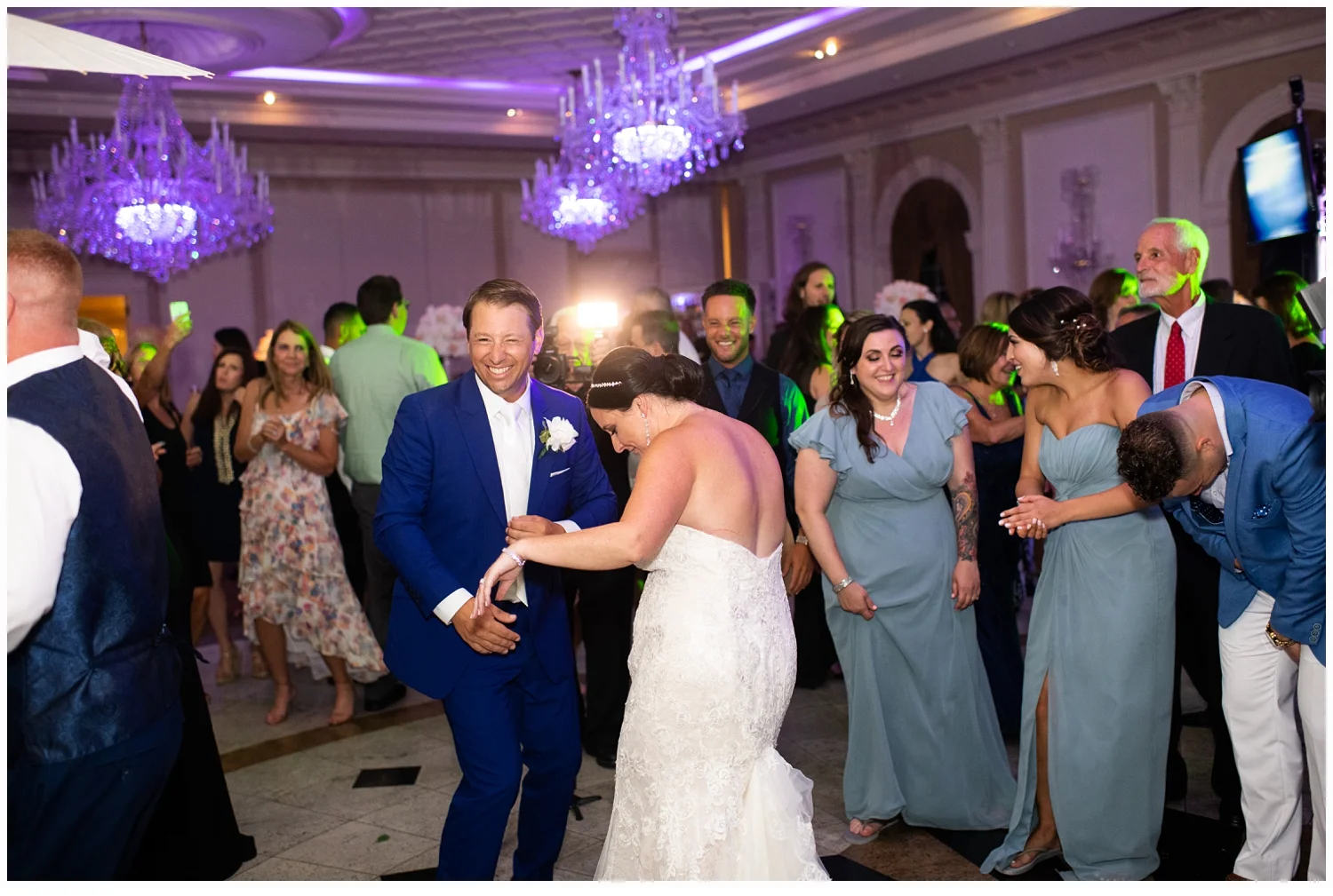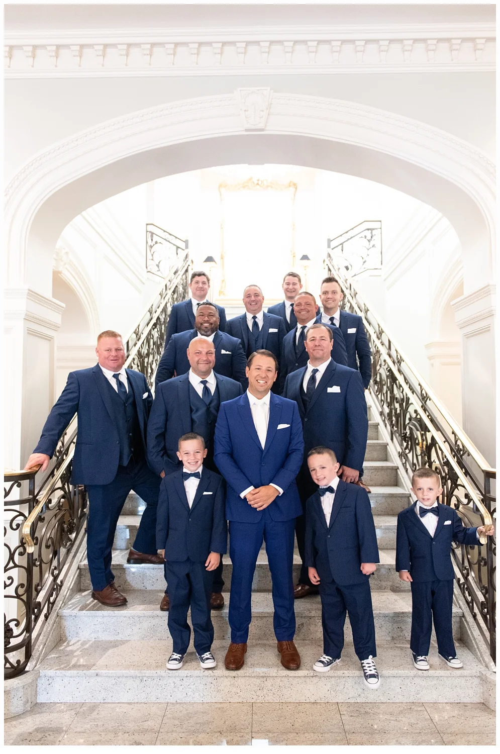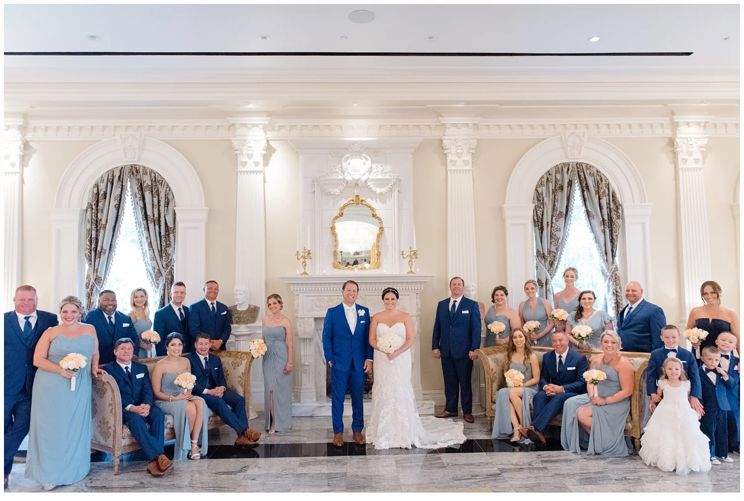 The day began at the home that Jaclyn grew up in and it was a total party going on with her bride tribe! After popping some champagne and getting ready it was time to head to the Rockleigh. Jaclyn and the girls headed to the pretty bridal suite for more champagne and more last minute getting ready and some bridal party pictures before she was to meet Matthew for their first look. One of the things I loved the most during their first look was Matthew’s reaction when he saw Jaclyn!