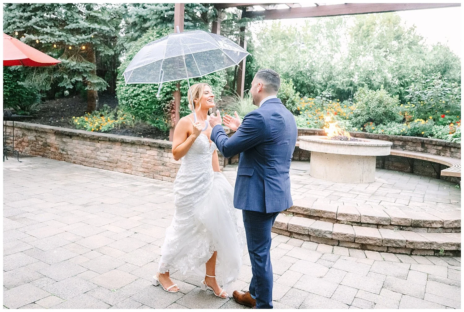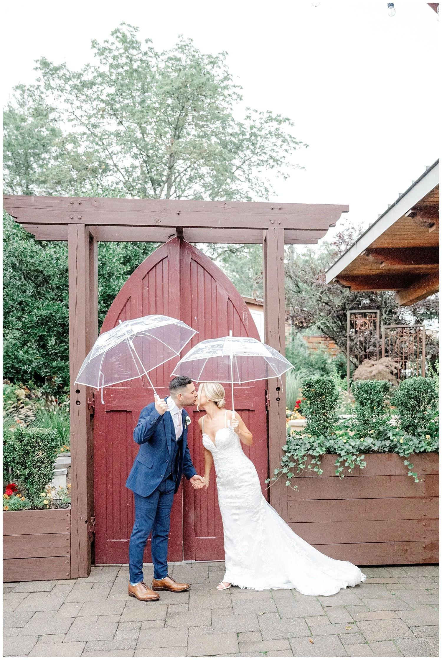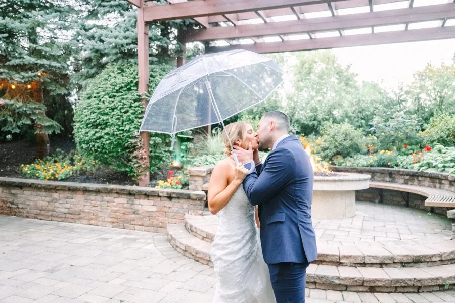 Jess and Anthony chose to do a first look. Upon arriving at the Stone House the sky did happen to open up, but thankfully it did stop so we could enjoy a beautiful first look, the first one with Jess and her two brothers, and then on to her groom! We did capture some fun photos with some cute umbrellas. They always make the rain seem way more fun!