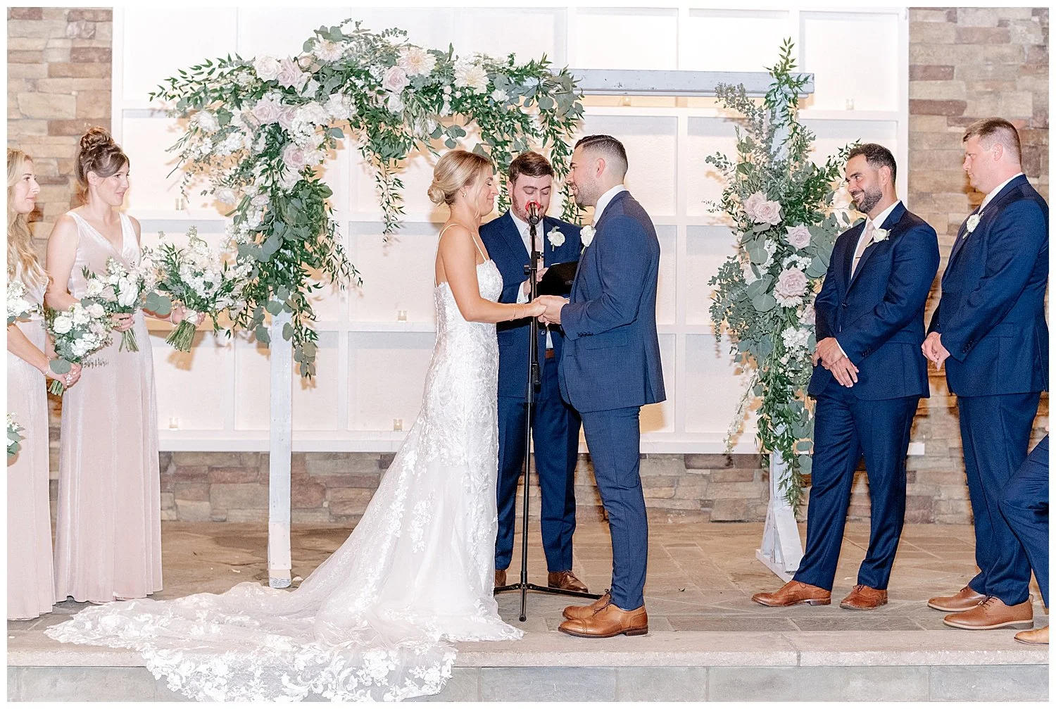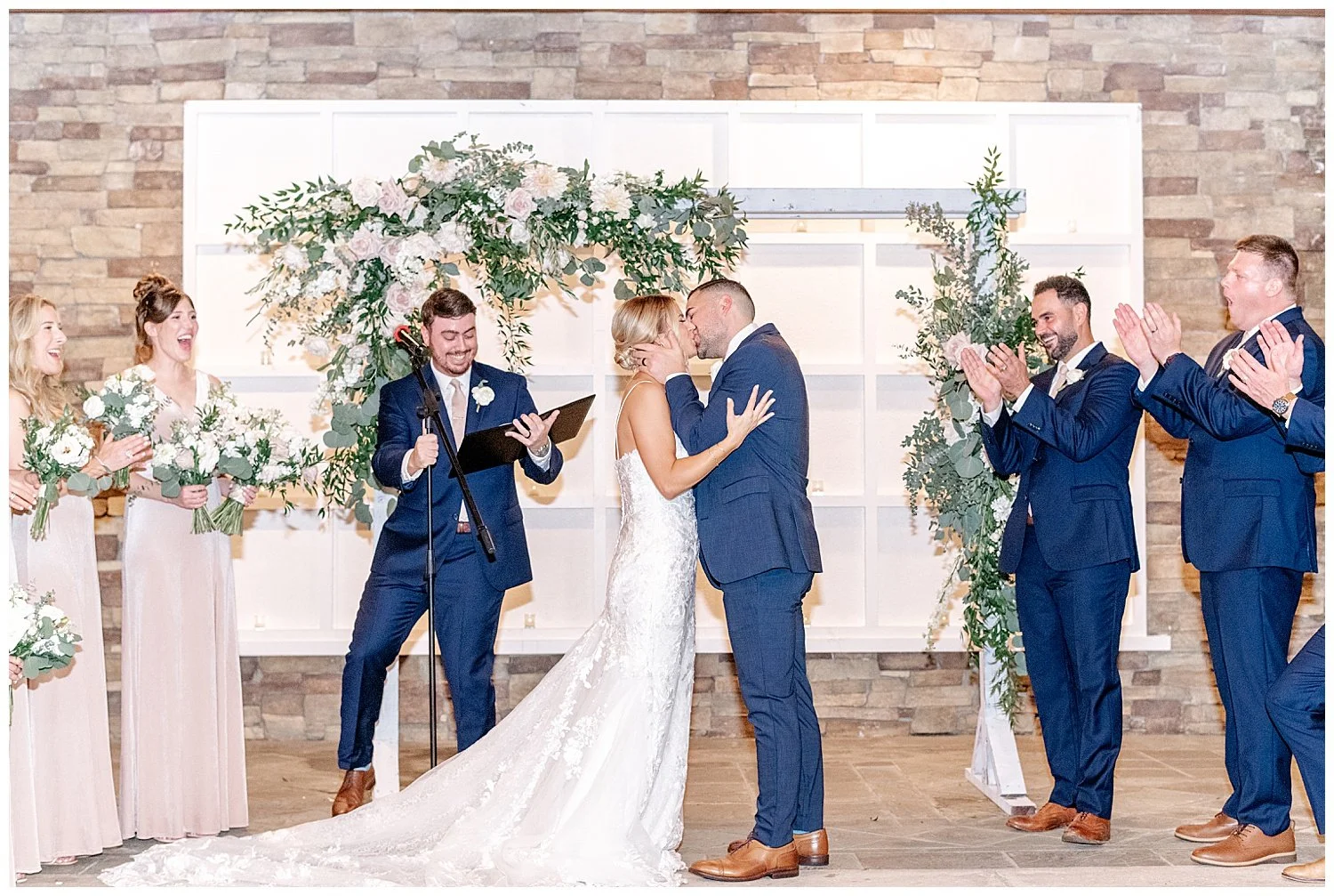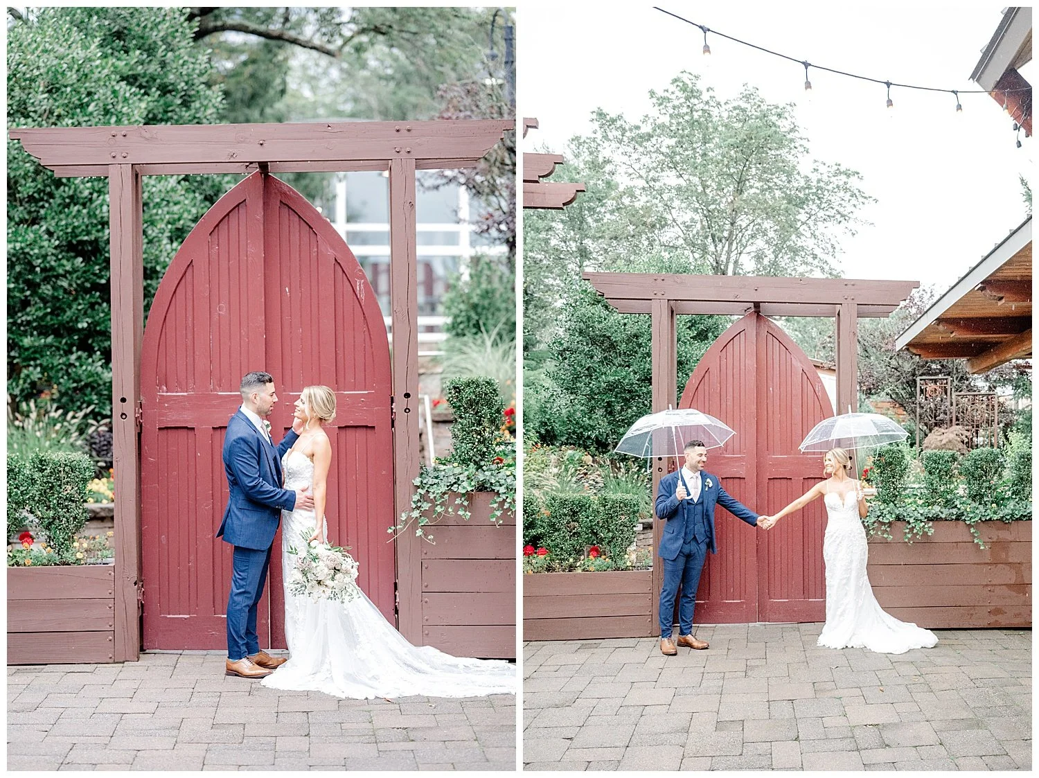 Jess and Anthony chose to do a first look. Upon arriving at the Stone House the sky did happen to open up, but thankfully it did stop so we could enjoy a beautiful first look, the first one with Jess and her two brothers, and then on to her groom! We did capture some fun photos with some cute umbrellas. They always make the rain seem way more fun!