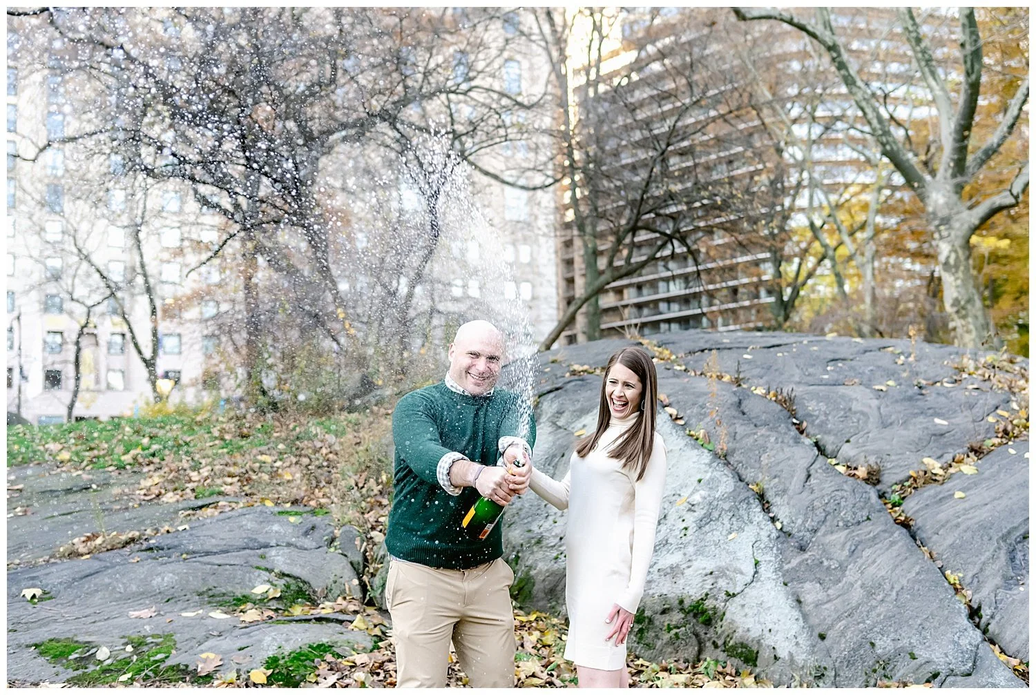 Marc surprised Kristin one Sunday morning. Kristin thought that they were going for brunch with some family friends, but Marc had secretly arranged to reserve the rooftop patio at the New York Athletic Club (which overlooks Central Park) which he had decorated with roses and champagne. After he popped the question, they ended up going for brunch, but instead of just being our first brunch as an engaged couple, he had arranged to fly both of our families in from all over the country and have everyone meet them at the restaurant which was truly a surprise brunch!