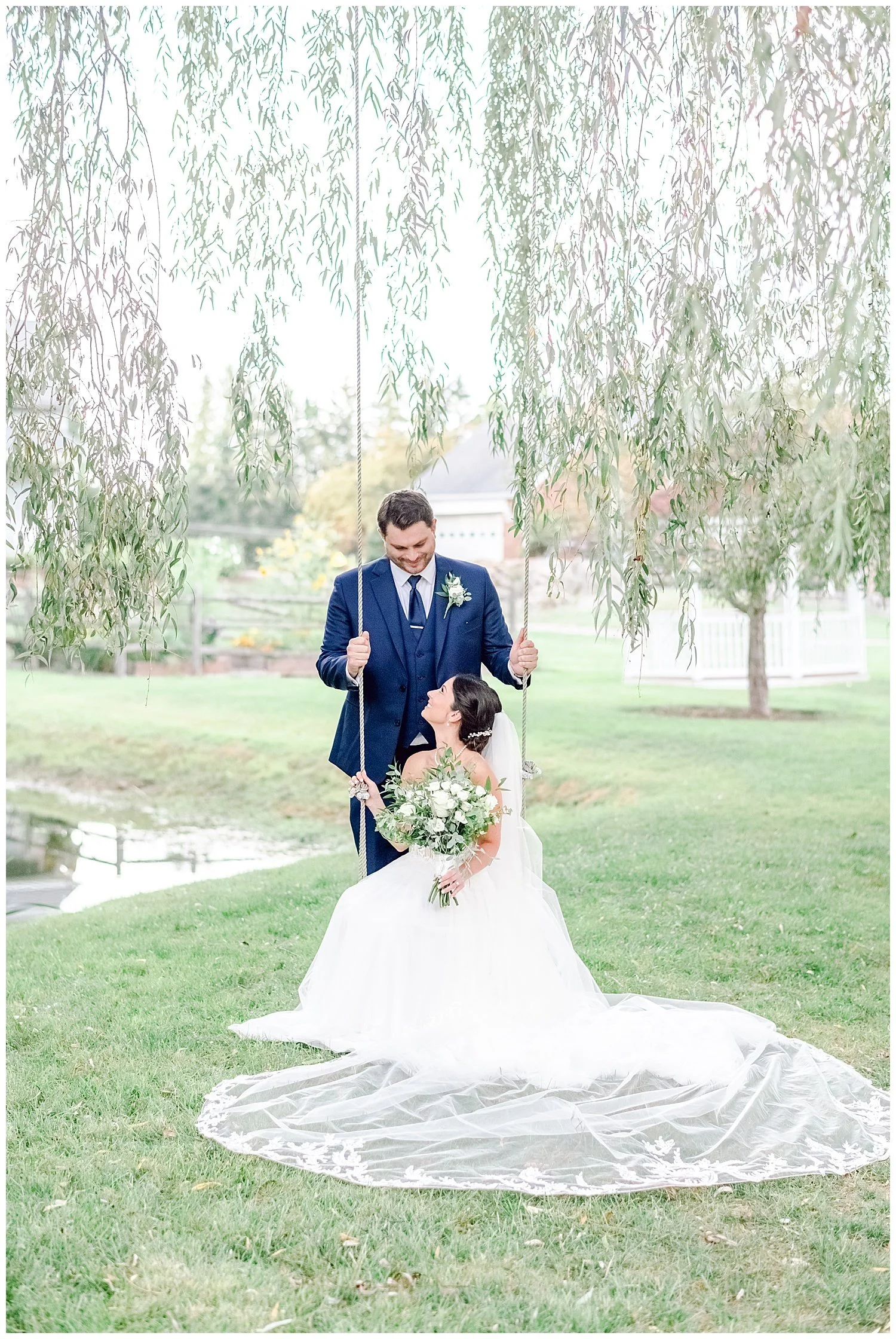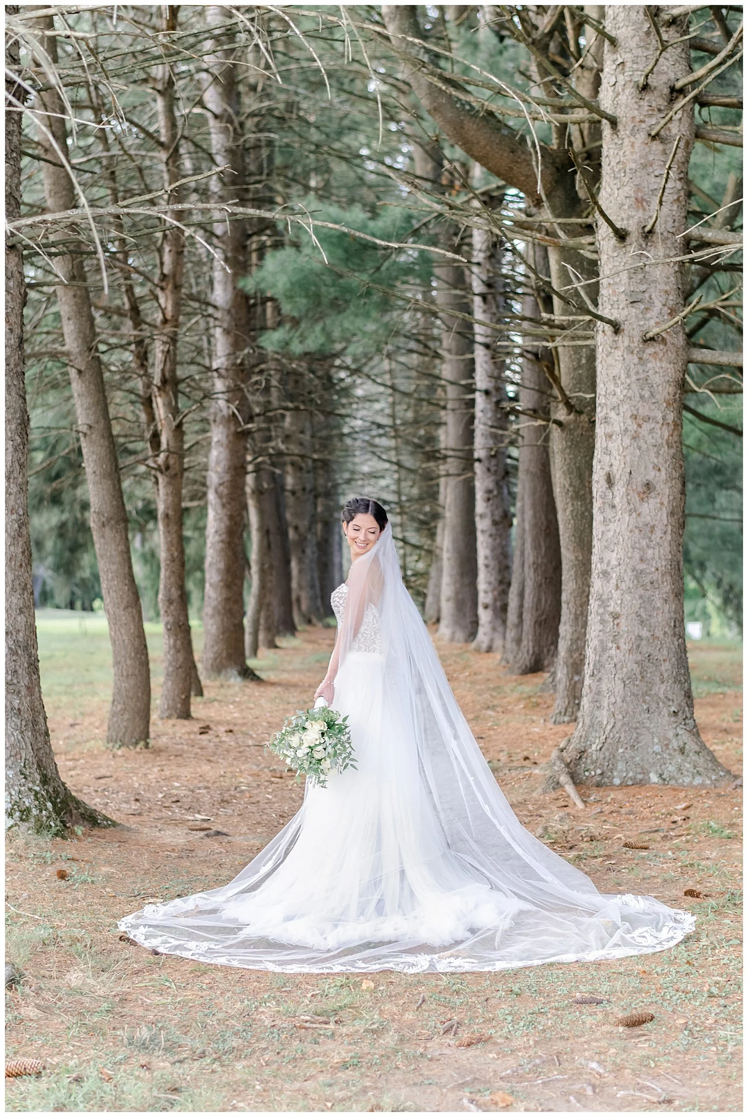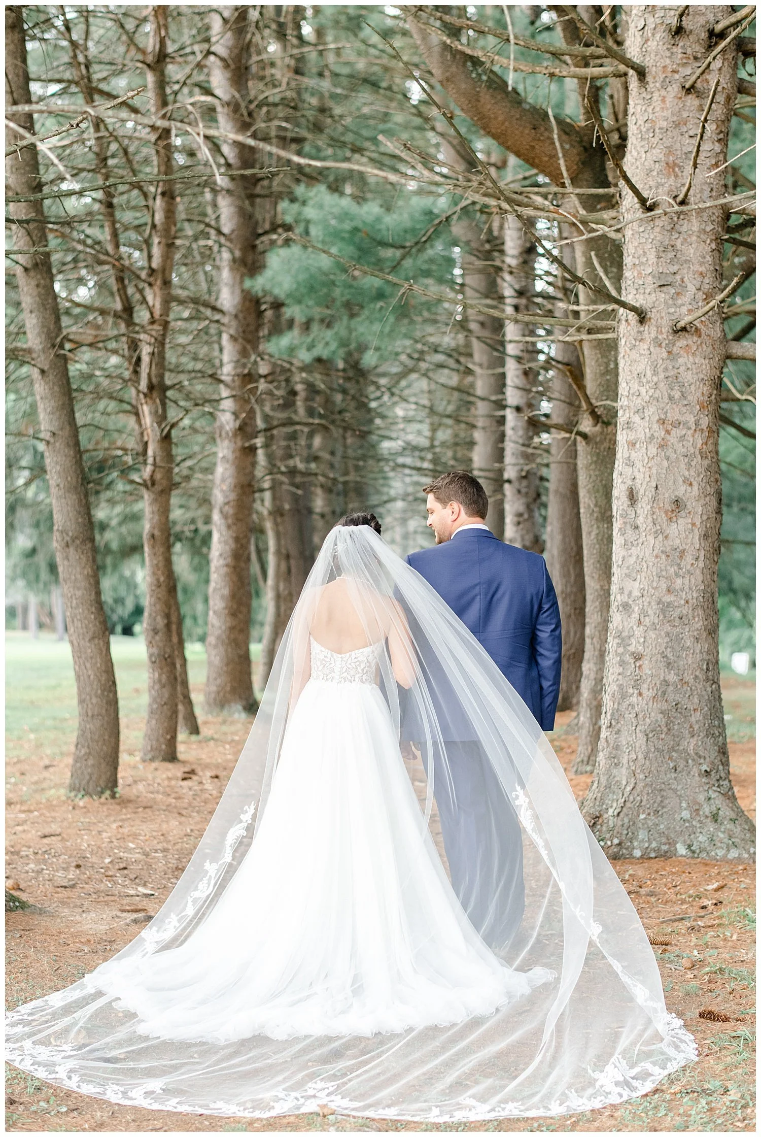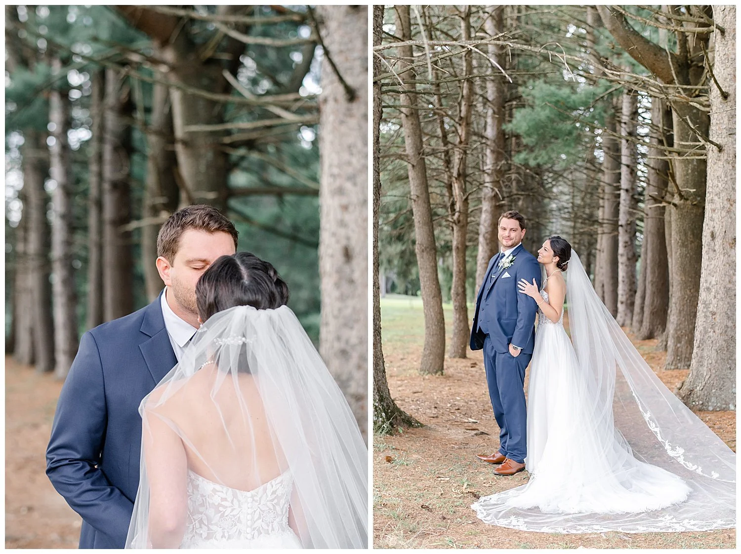 They decided to head to the venue for their first look. There nestled between the tall pine trees, Morgan and Steve shared a private first look. I was so moved by the tears that they both shared. After their first look we enjoyed one of the many beautiful locations for portraits! But this spot happens to be my favorite!